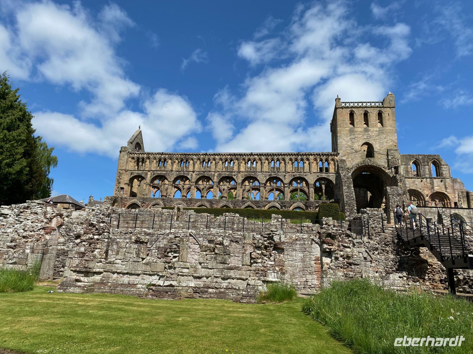 Nun besuchen wir noch Jedburgh, auch hier gibt es die Ruine einer Abtei. Auch sie wurde ein Opfer der schottischen Reformation im Jahr 1560. Noch vollständiger erhalten als Dryburgh kann man hier die einstige Bedeutung besonders gut erahnen.
