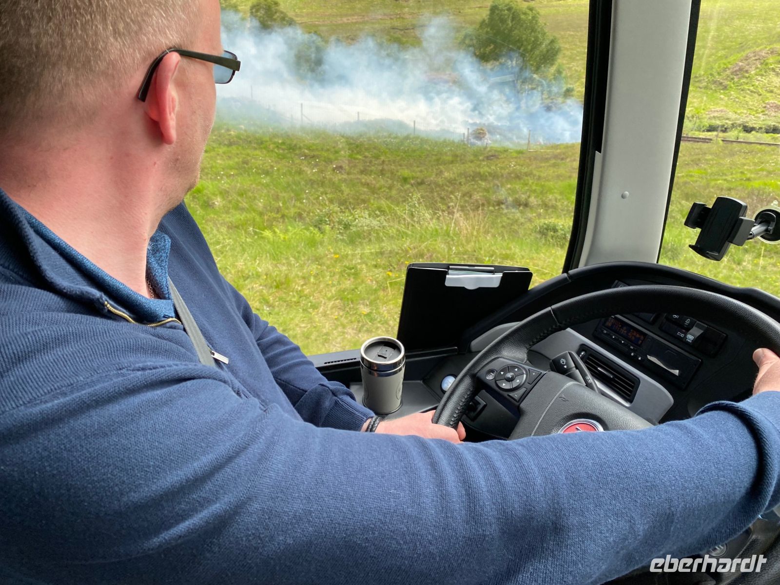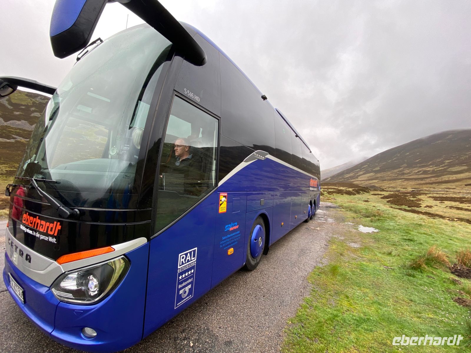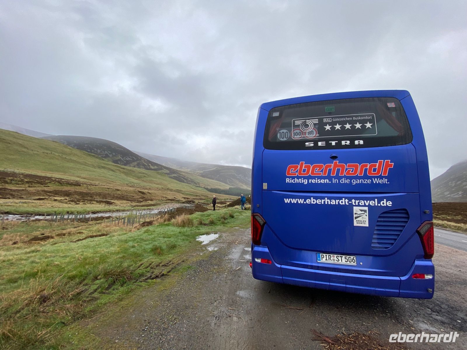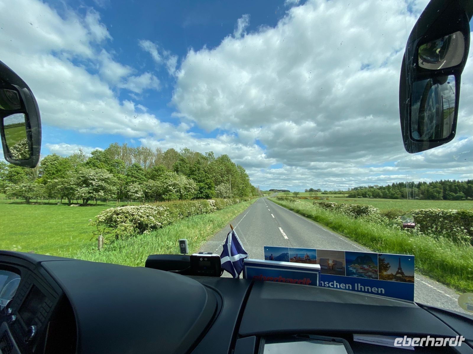 Es ist 2:30h – allerdings am Morgen! Unser Busfahrer Maik steht als Erster am Flughafen Dresden, dem Startpunkt unserer Reise. Ich bin der Reiseleiter und die ersten Teilnehmer unserer Reisegruppe sind rasch eingetroffen. Pünktlich geht es los, Richtung Westen. Unterwegs sammeln wir noch einige weitere Reisegäste ein, unsere Gruppe bleibt jedoch sehr klein und exklusiv! In Edinburgh werden noch zwei weitere dazu stoßen, dann werden wir 16 Reisende in unserer Gruppe haben.