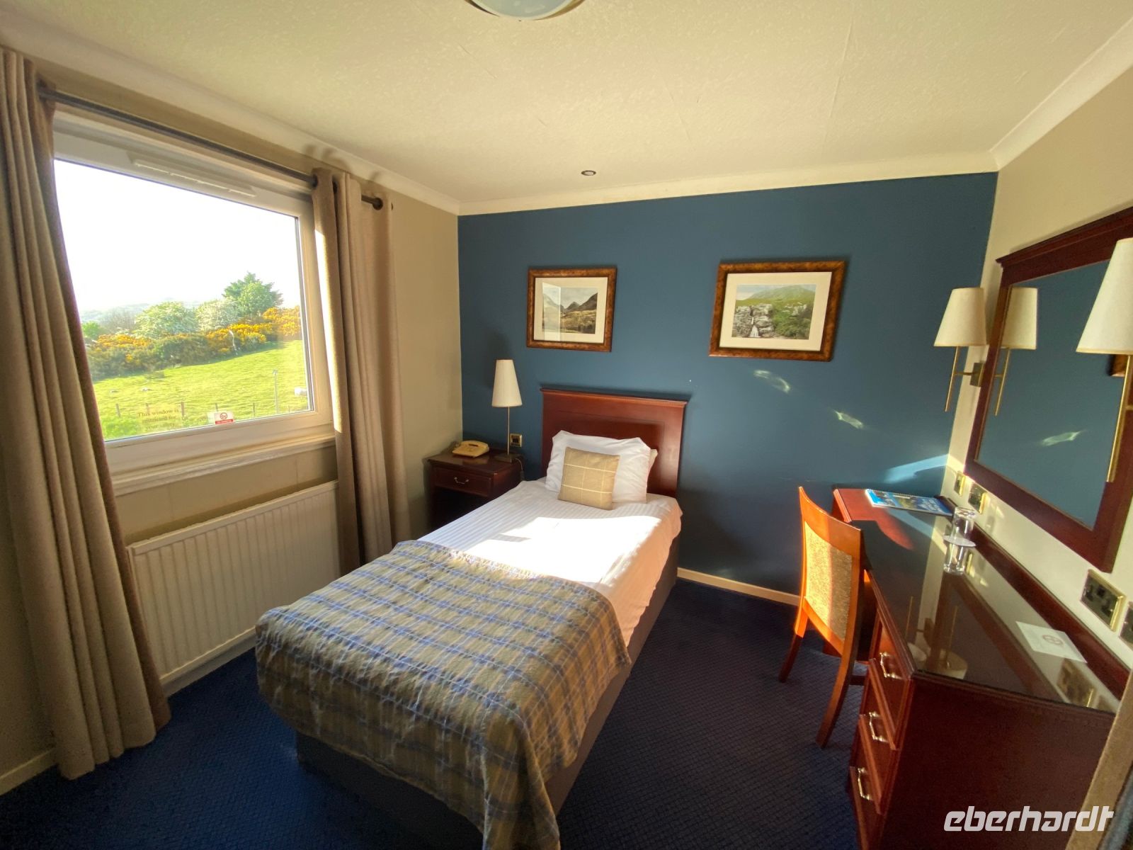 Vor allem aber: Im eleganten Speisesaal wird uns ein köstliches Abendessen serviert, in gemütlichen typisch britischen Zimmern können wir tief und fest schlafen und träumen bald schon von Schottland und anderen schönen Dingen.