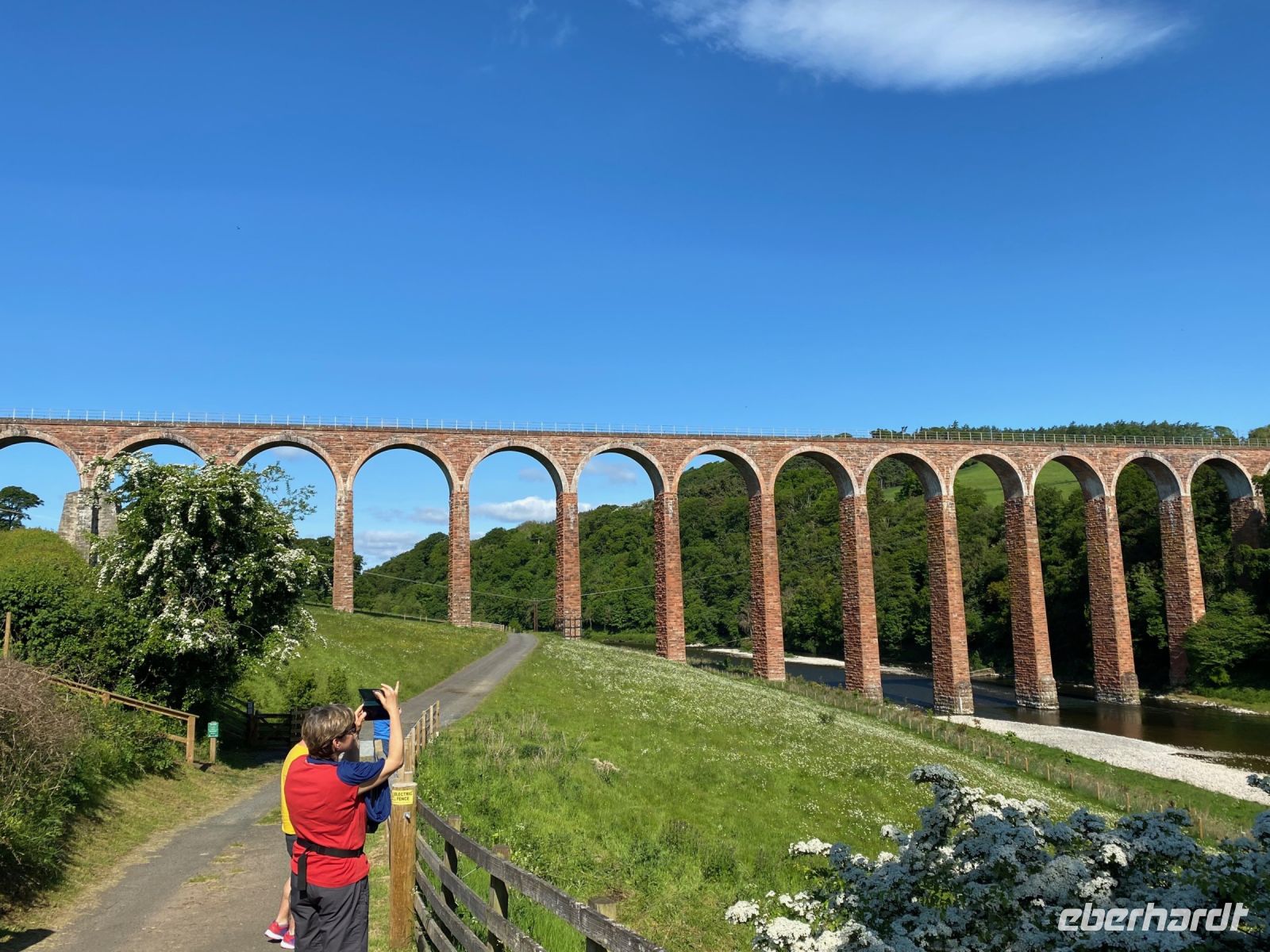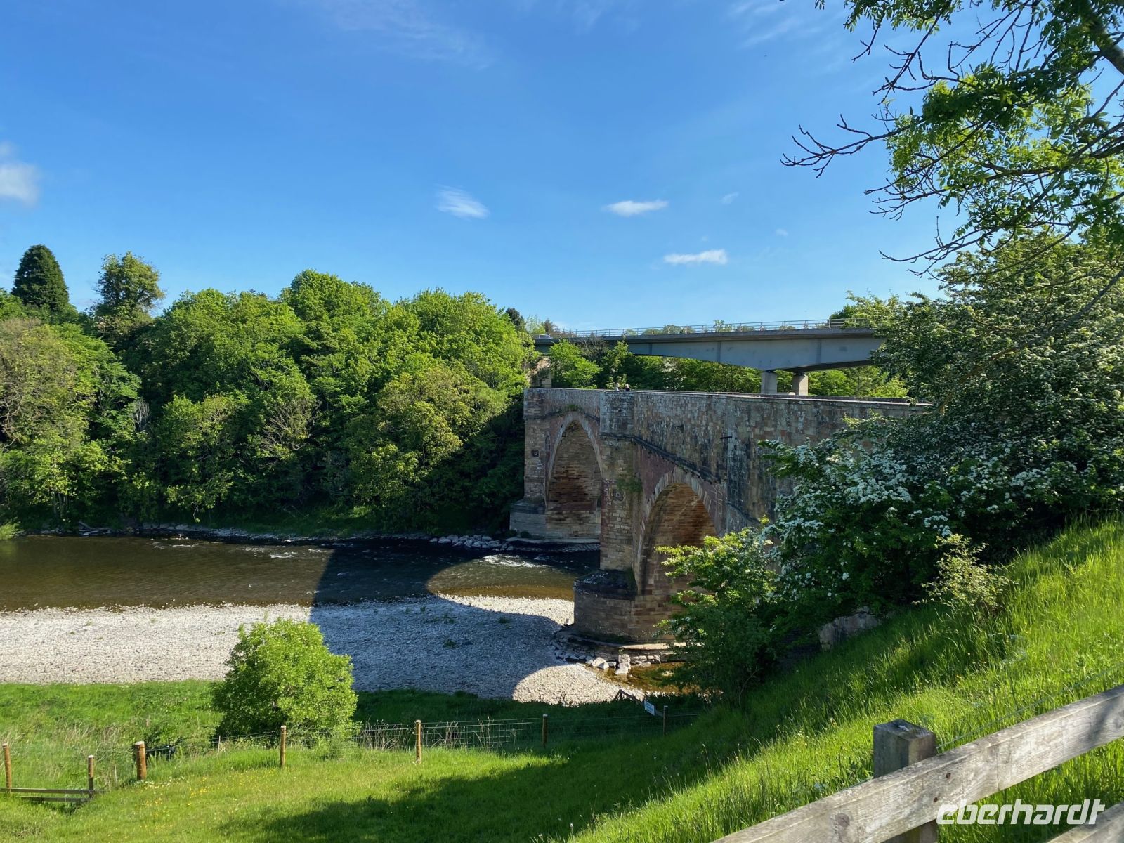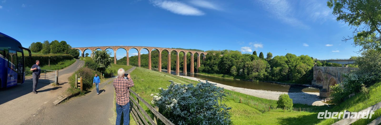 Hier ist nicht der Stoff gemeint, den man mit dem gleichnamigen Fluss assoziiert, denn der Name der Textilien kommt vom Twill, der aber tatsächlich hier in der Gegend produziert wurde. Viel früher aber wurde hier vor allem fleißig gebetet. Mehrere bedeutende Abteien lagen hier in unmittelbarer Nähe. Auf dem Weg dorthin halten wir an mehreren spektakulären Brücken. Das Leaderfoot Viadukt war einst eine Eisenbahnbrücke, heute überqueren es nur noch Fußgänger. im neuen Indiana Jones-Film Die Drygrange Old Bridge aus dem Jahr 1780 liegt daneben, eine dritte neue Straßenbrücke überqueren wir in unserem Bus.