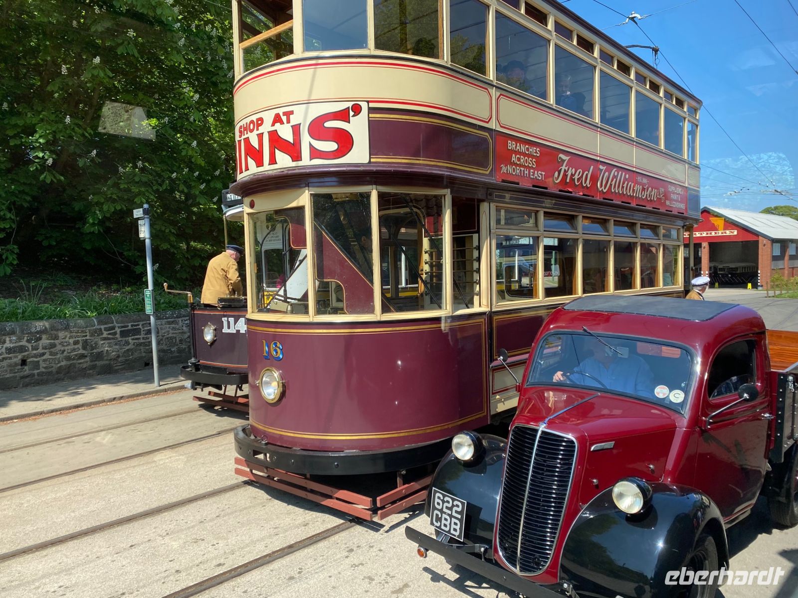 Die Bedeutung der Stadt in der Zeit der Industrialisierung durch seine Lage zwischen Kohleminen und dem Meer ist das perfekte Thema als Einstieg zum Ziel unserer ersten Besichtigung, dem Beamish Museum. Hier hatte Frank Atkinson in den 1960er-Jahren begonnen, durch umfangreiches Sammeln von Alltagsgegenständen den Grundstein für ein faszinierendes Freilichtmuseum zu legen, dass er später über Jahrzehnte leitete. Hier kann man wahre Zeitreisen erleben! In verschiedenen Gebäudegruppen z. B. in die 1940er, 1950er und besonders auch ins perfekt inszenierte Jahr 1913. Fahrten mit Bussen und Straßenbahnen (auch Doppeldecker!) verbinden alles auf einem Rundkurs. Viele Museumsmitarbeiter arbeiten ehrenamtlich und alle tragen perfekte historische Kostüme. Wir werden alle in den Bann des Nordenglands der letzten Jahrhunderte gezogen und der Abschied bei schönstem Wetter fällt schwer – doch unser Ziel heißt Schottland!