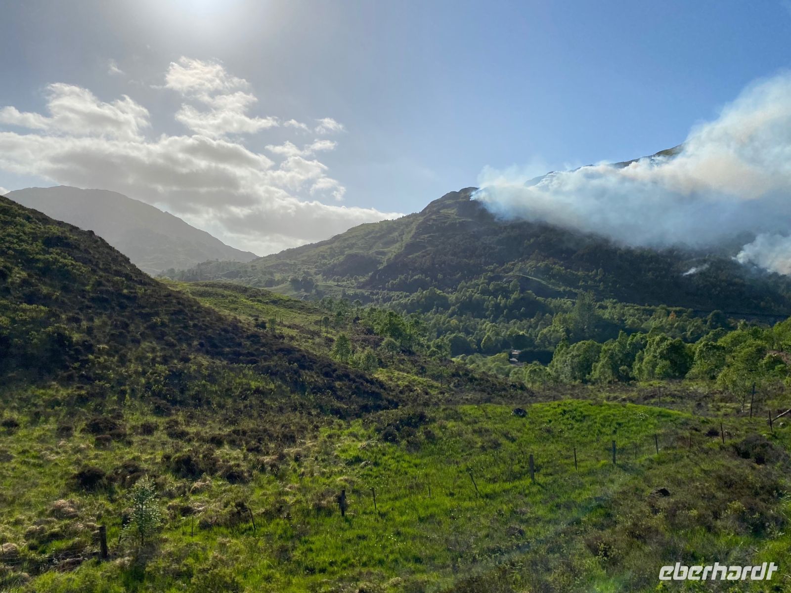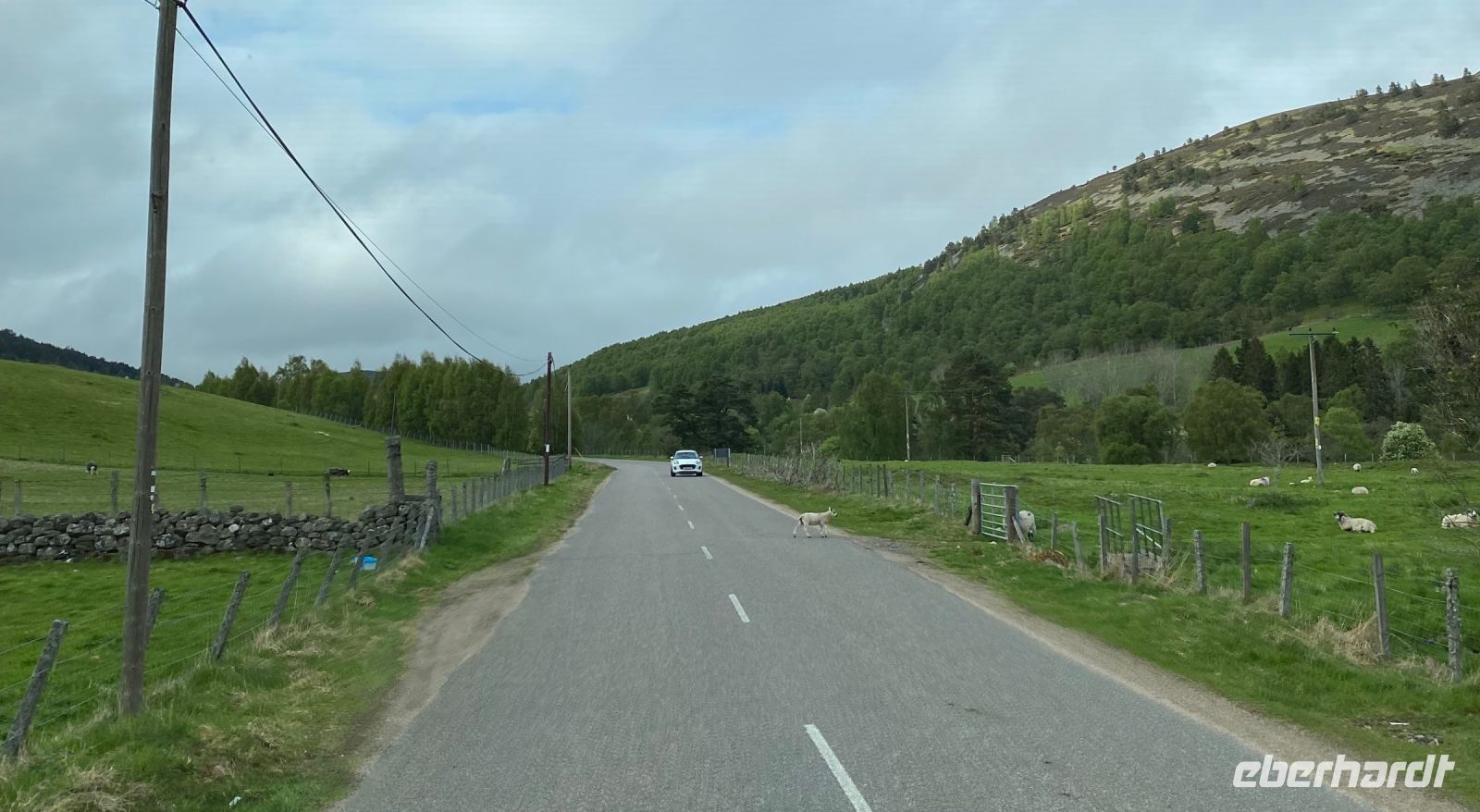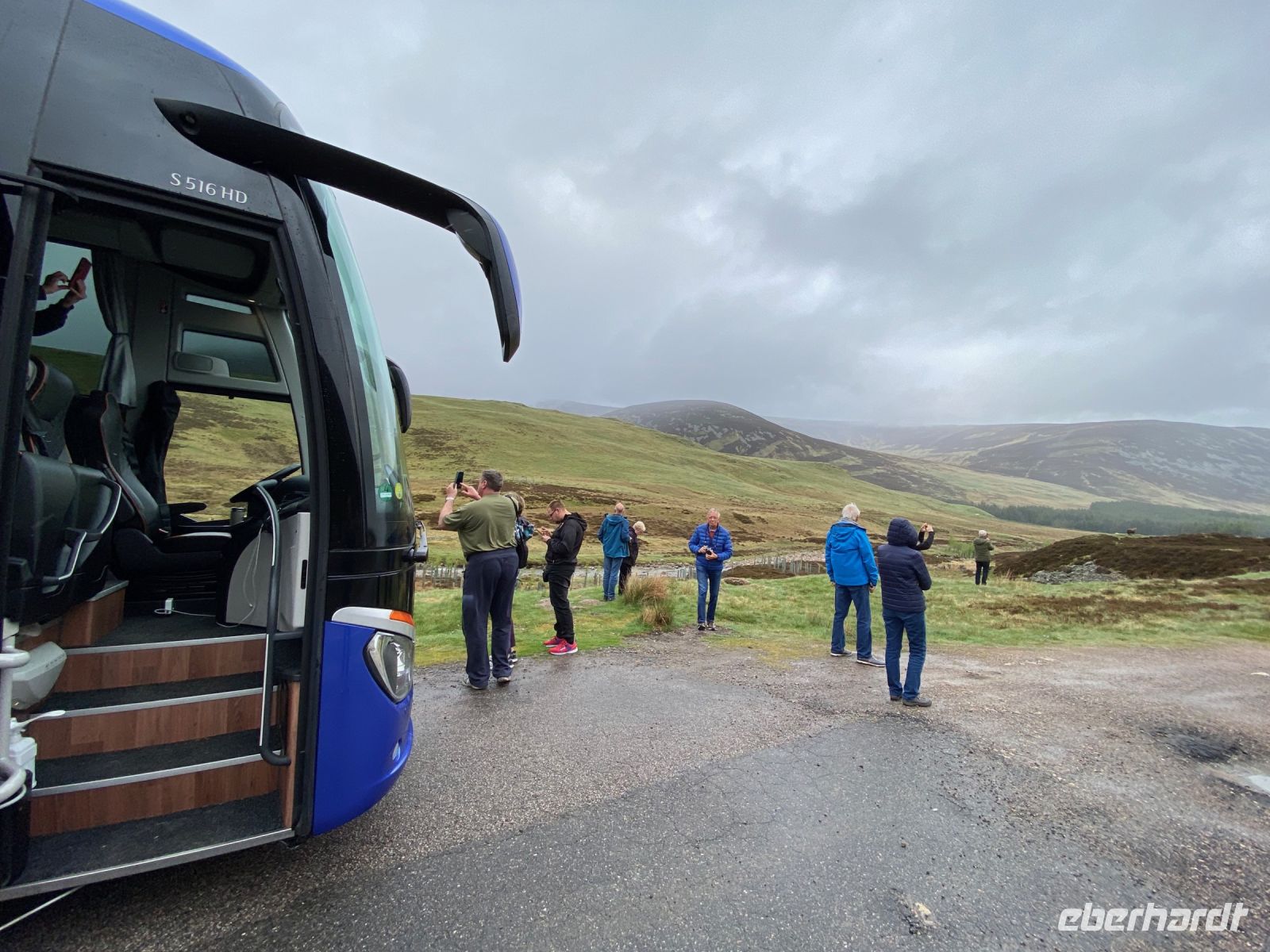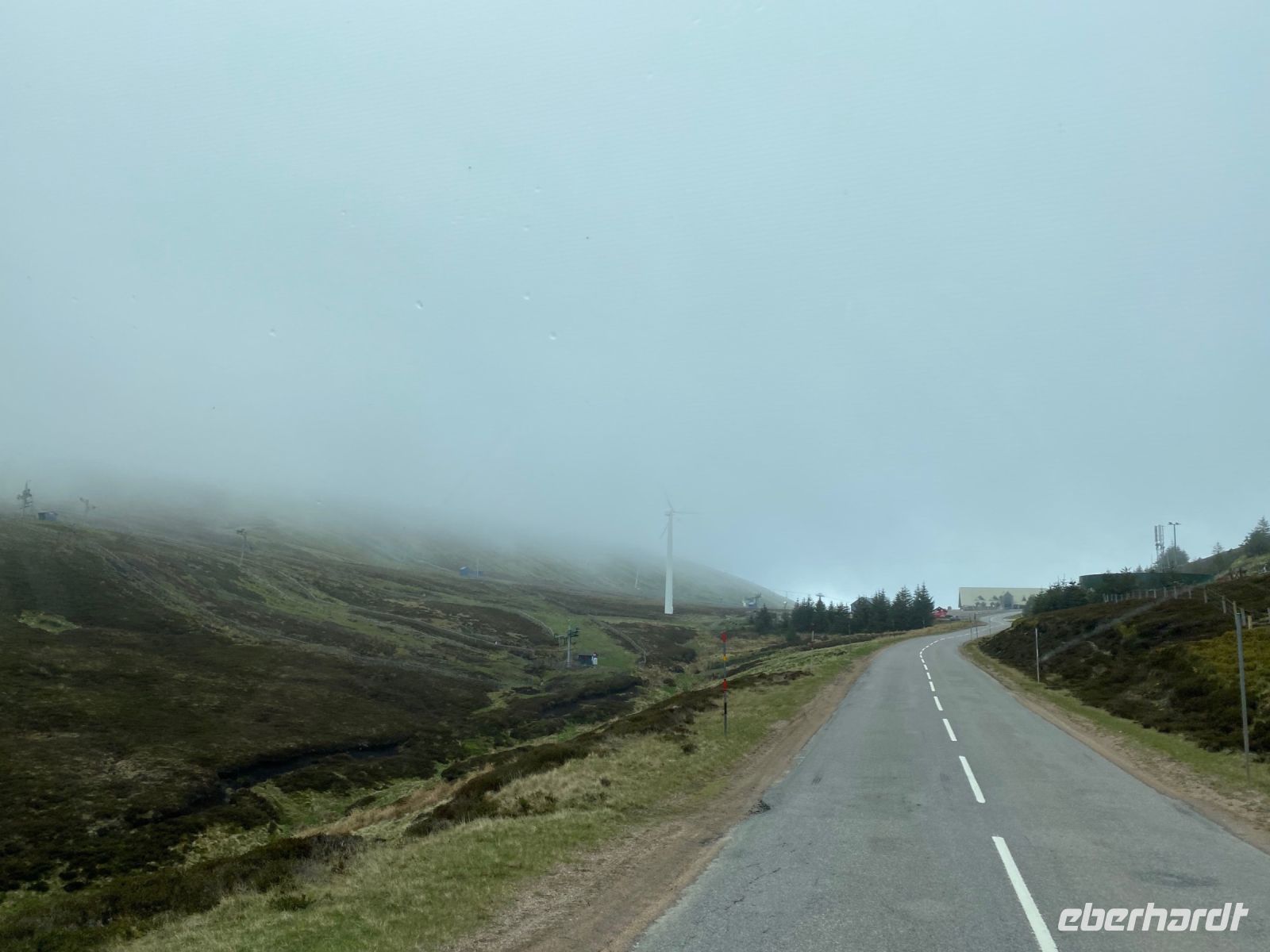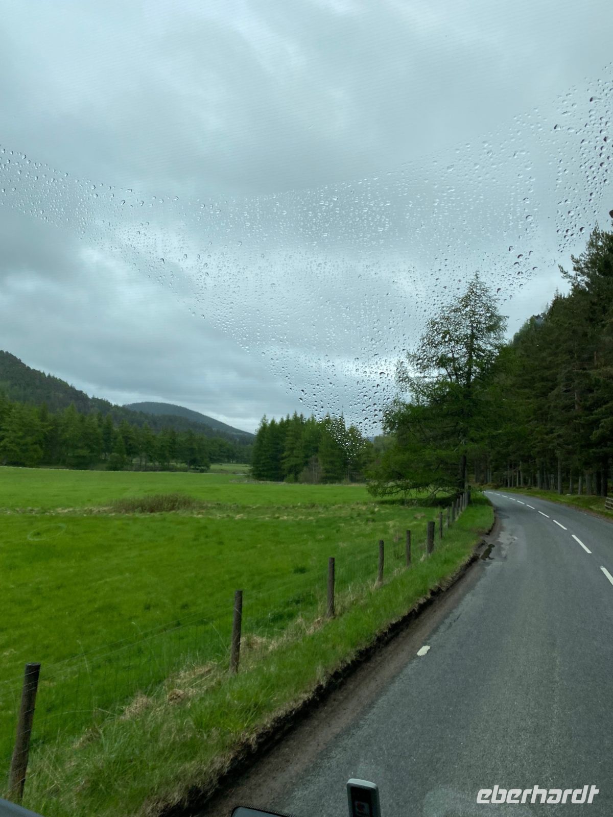 Dort erreichen wir auch bald den Cairngorms-Nationalpark, auf gälisch hat er übrigens den unaussprechlichen Namen: „Üghdarras Pàirc Nàiseanta a' Mhonaidh Ruaidh“. Vor allem aber ist es hier einfach schön. Einsam ist es auch, Hochnebel und dramatische Wolkenstimmungen lassen erahnen, dass das Leben hier auch sehr hart gewesen sein muss.