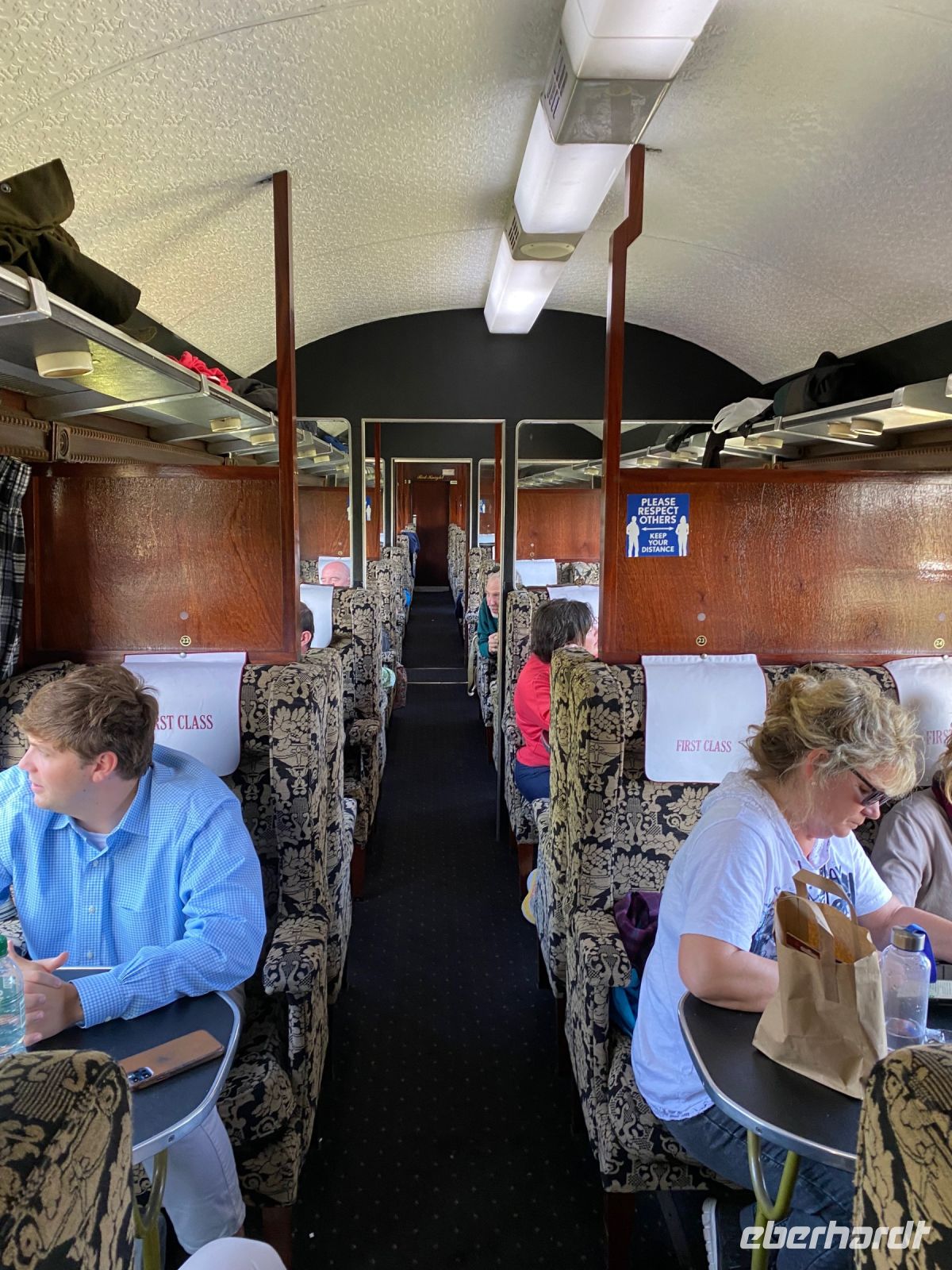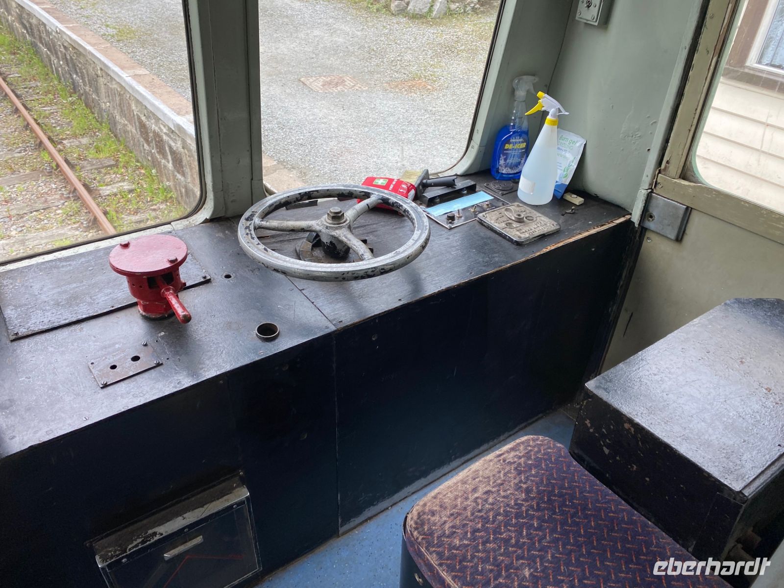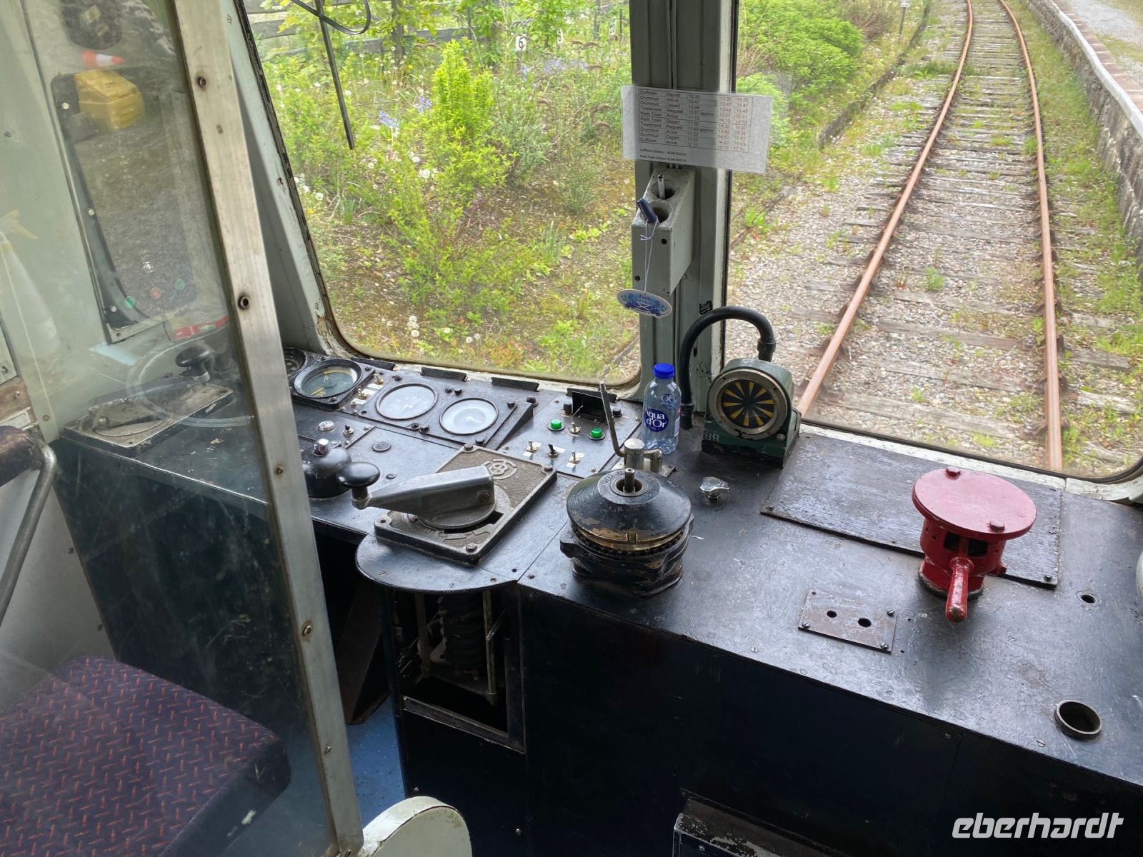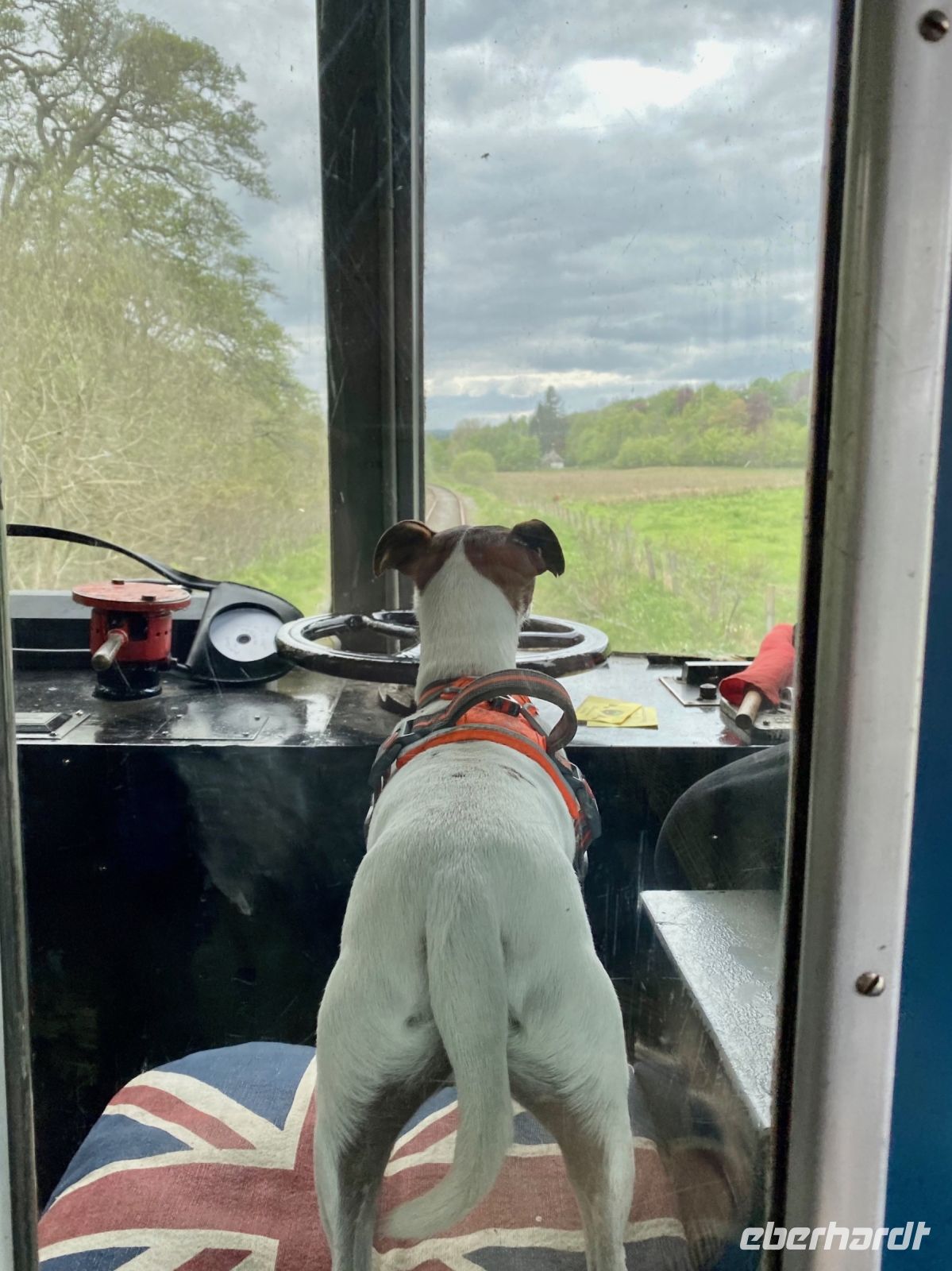 Unsere Fahrt wird nun tatsächlich zu einem ganz besonderen Erlebnis. Der ganze Zug gehört uns, bei offenem Führerstand wird uns alles gezeigt und erklärt, während die Bahn gemütlich vor sich hin dieselt. Der Hund des Lokführers ist auch an Bord und sorgt dafür, dass alles seine Richtigkeit hat.