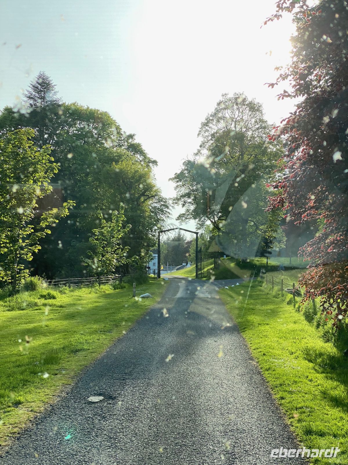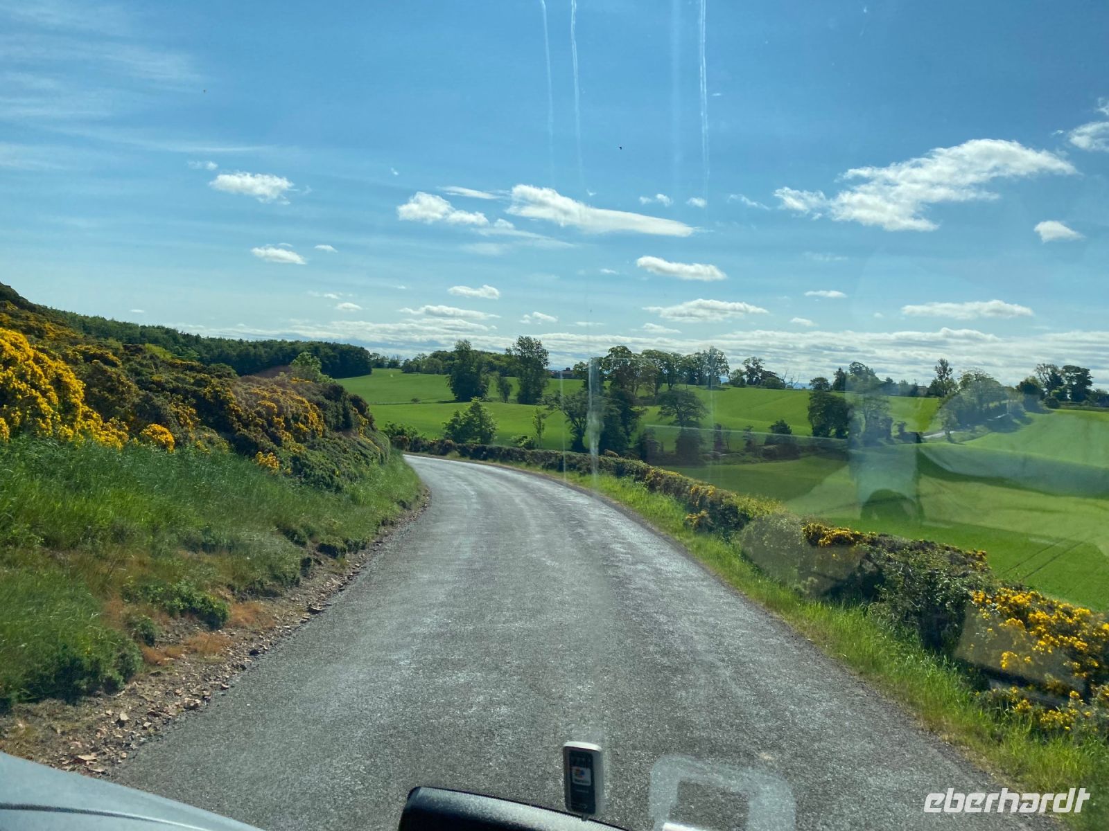 Für unsere letzte schottische Übernachtung erwartet uns bei Peebles in den Borders noch ein besonderer Ort, das Barony Castle Hotel. Ein Schloss, das im zweiten Weltkrieg zu einer polnischen Militärakademie und später von einem Polen, der es aus dieser Zeit kannte zum Hotel gemacht wurde. Hier im Schloss schlafen wir wieder bestens und träumen unserem nächsten und letzten Tag auf der Insel entgegen.