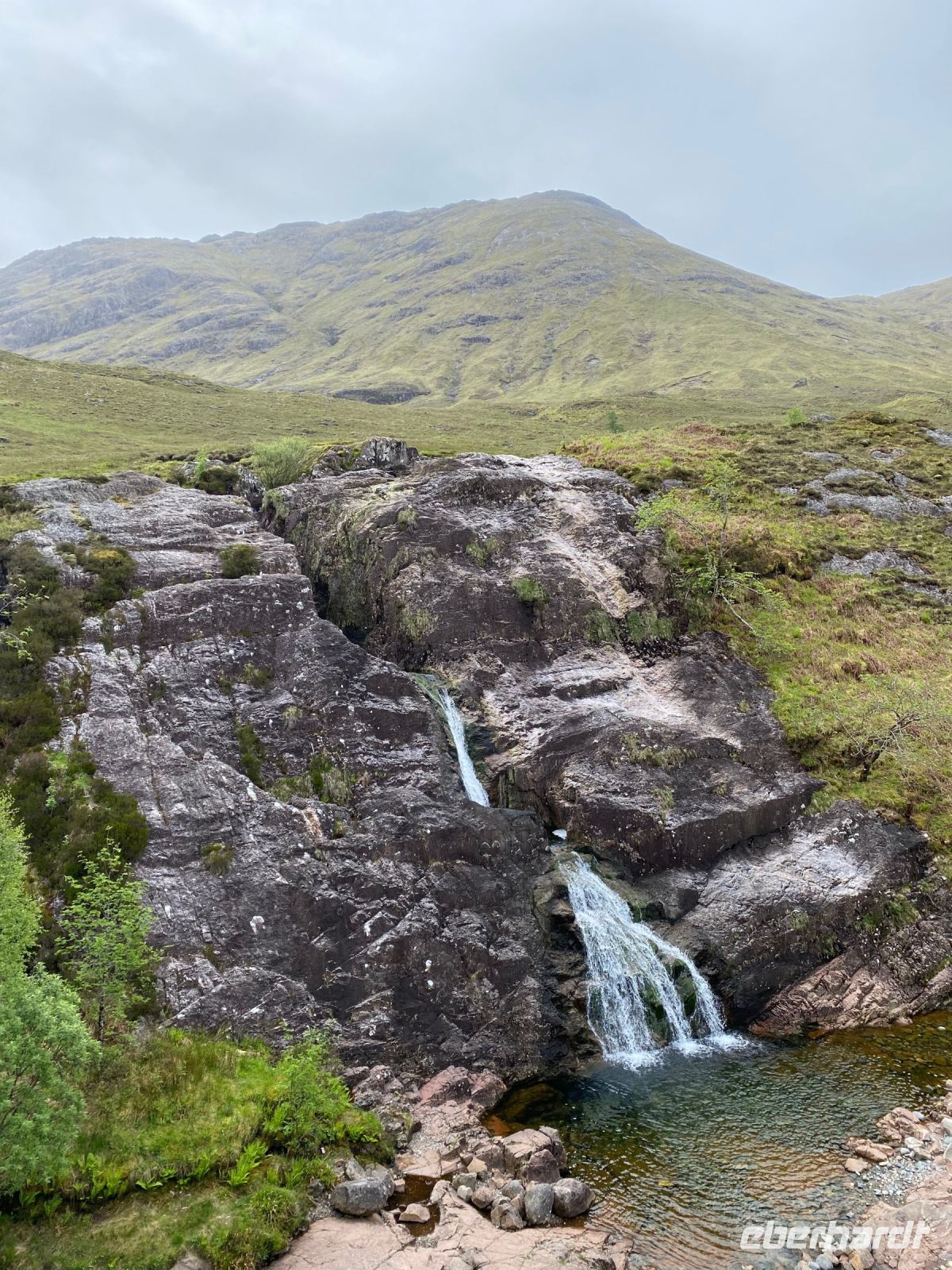 Ein Glen ist übrigens ein schmales Bergtal, ein weites würde Strath heißen (wie in Strathspey), wir folgen also dem Fluss Coe, er durchfließt das kleine Loch Achtriochtan, hier gibt es auch einen kleinen Wasserfall und vieles mehr zu sehen.