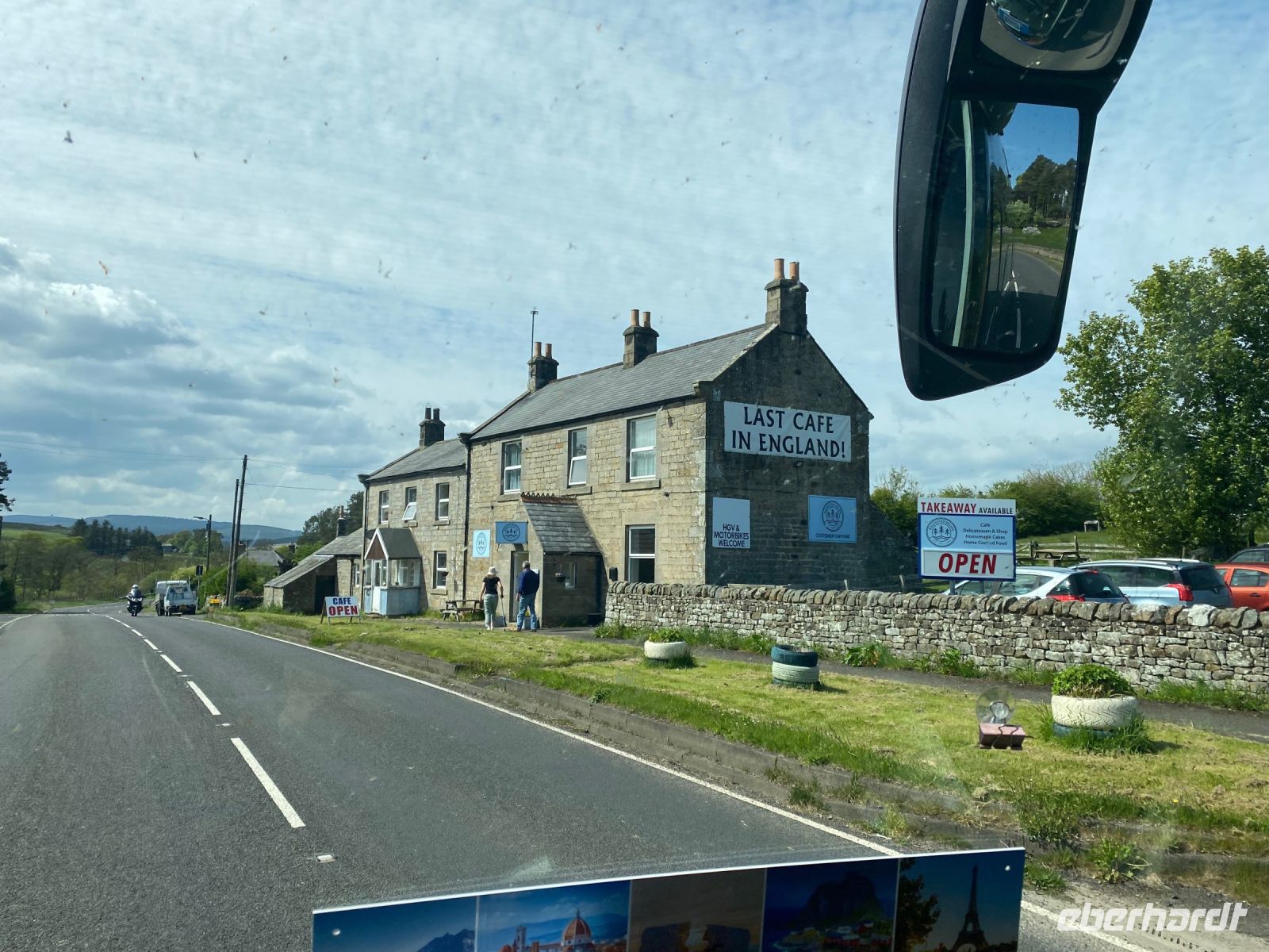 Zum ersten Mal auf einer Reise in Großbritannien spiele ich nun im Bus „God Save the King“ zur Begrüßung. Nach über 70 Jahren Queen Elizabeth ein ganz großes kleines Detail. Schnell gibt es sehr viele britische Dinge zu entdecken, rote Briefkästen mit königlichen Monogrammen zum Beispiel. Dass unser Bus nun auf der linken Straßenseite fährt, fällt kaum auf. Souverän steuert Maik den Fünf-Sterne-Bus durch Newcastle, durch spiegelverkehrte Kreisverkehre und durch einen Tunnel, hier unterqueren wir den Fluss Tyne.