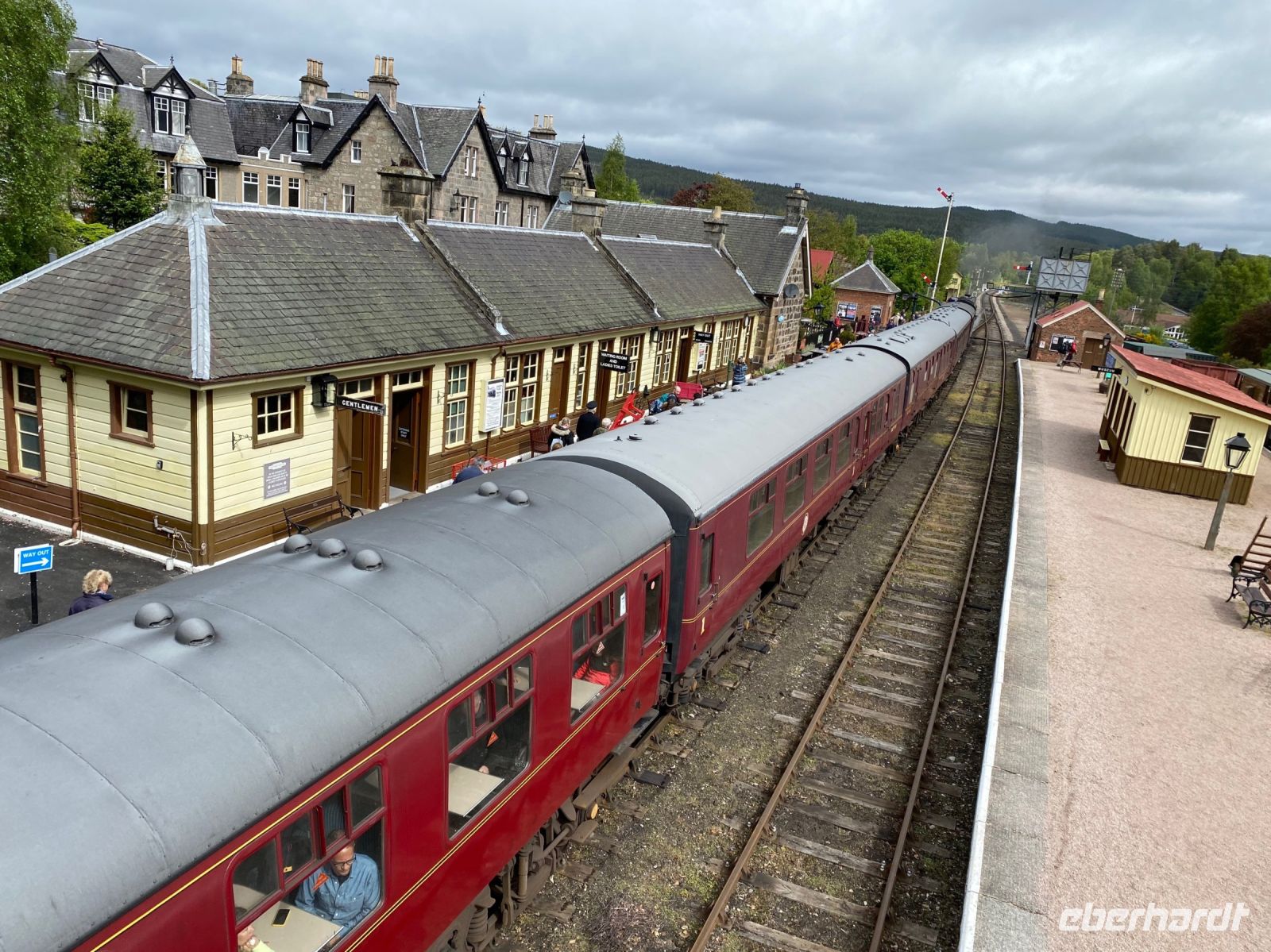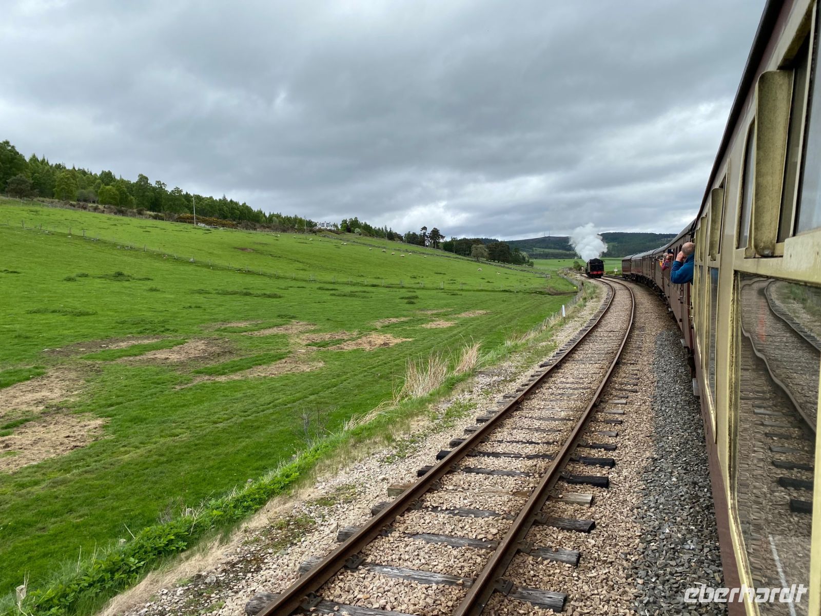 Wie gestern in Newtonmore sind wir heute auch wieder mitten im Speytal, hier gibt es auch eine normale Strecke der Gesellschaft ScotRail, immer wieder sehen wir deren blaue Züge durchs Tal sausen.
