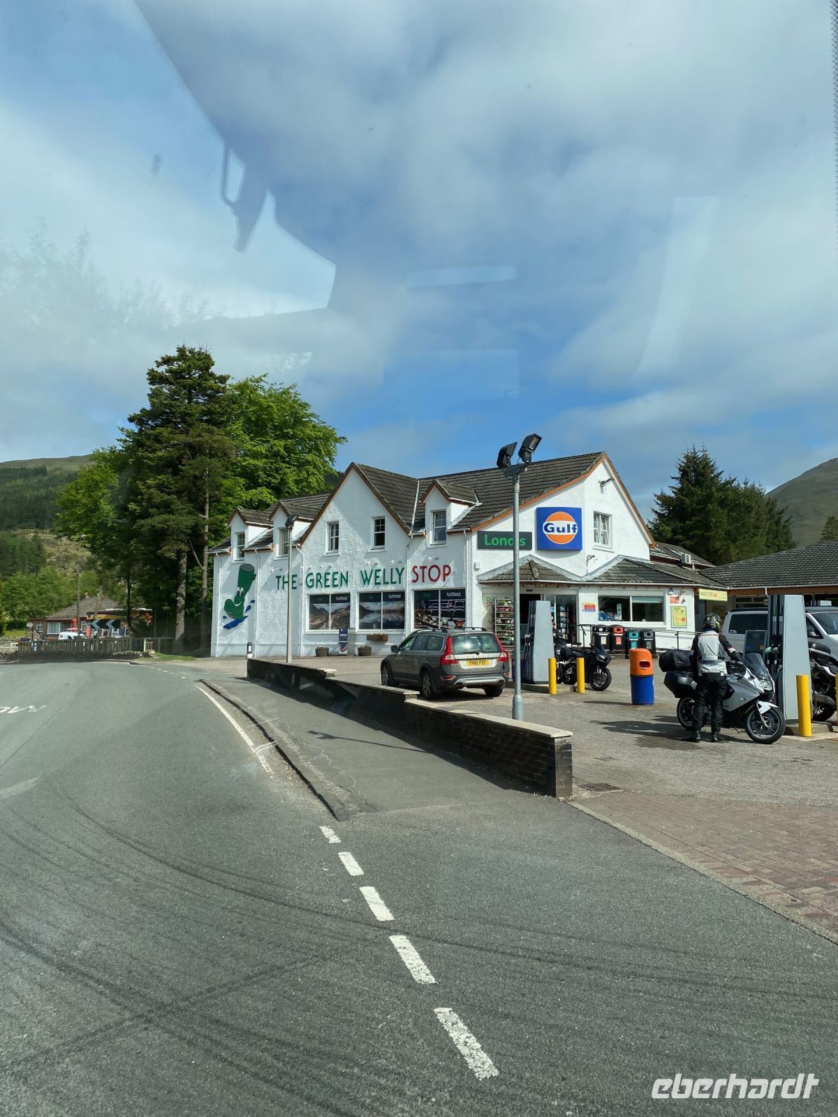 Später am Loch Tulla gibt es einen wunderbaren Panoramablick und in Tyndrum kehren wir im legendären Green Welly Stop ein. Gummistiefel heißen auf Englisch Wellies, oder Wellingtons, nach dem Duke of Wellington, der einst die britische Stiefelmode prägte, bevor im zweiten Weltkrieg aus Ledermangel Gummistiefel erfunden wurden. Wellies passen jedenfalls in diese Gegend, so wie Stiefel an Füße passen sollten.