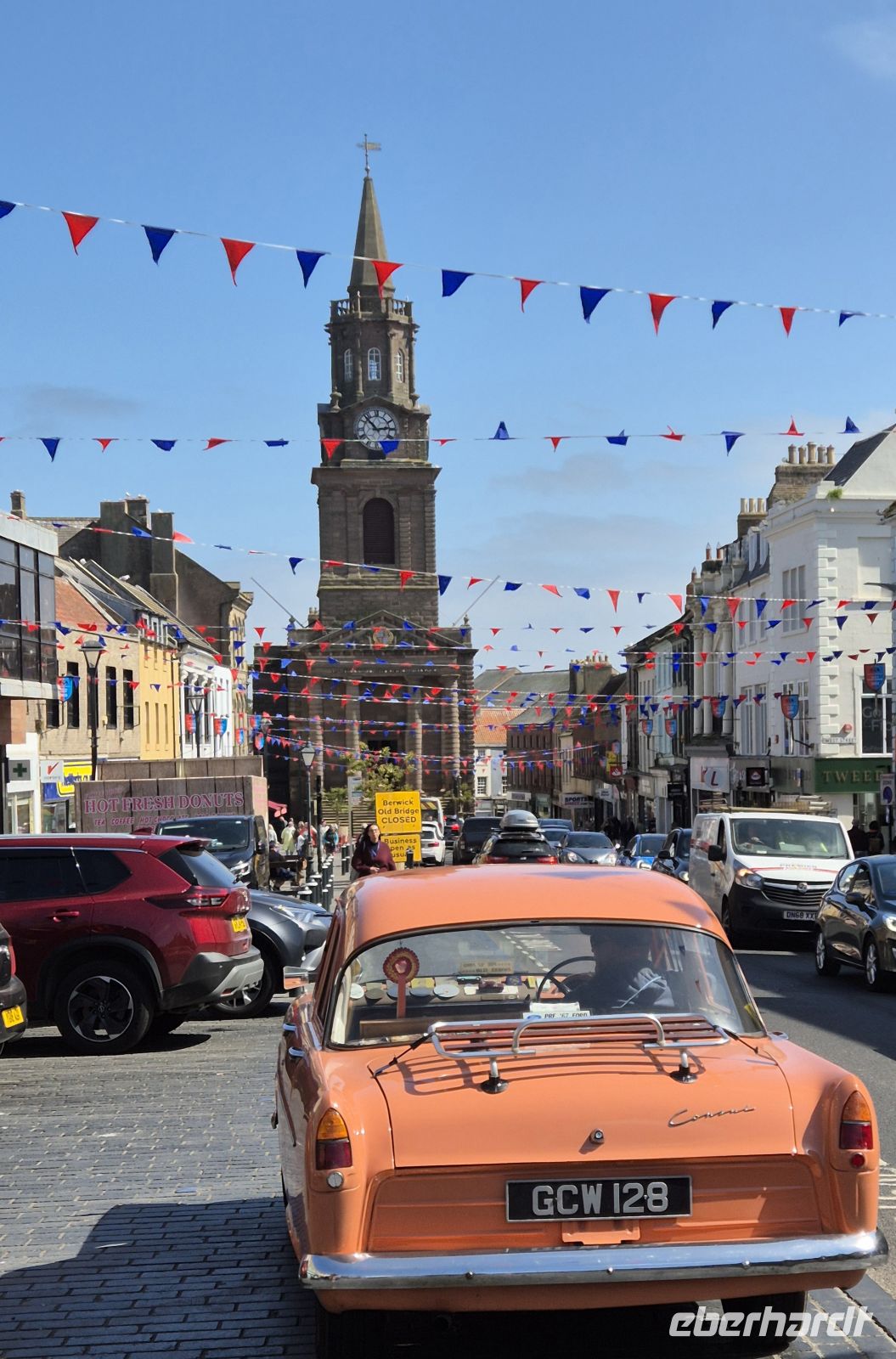 Vorbei an Alnswich erreichen wir das Landstädchen Berwick-upon-Tweed wo Interessierte Würstchen aus der Bordküche als Mittagssnack essen können. Ein kurzer Spaziergang im ansprechenden Ortszentrum rund um das-kirchenähnliche-Rathaus war möglich und lohnend.