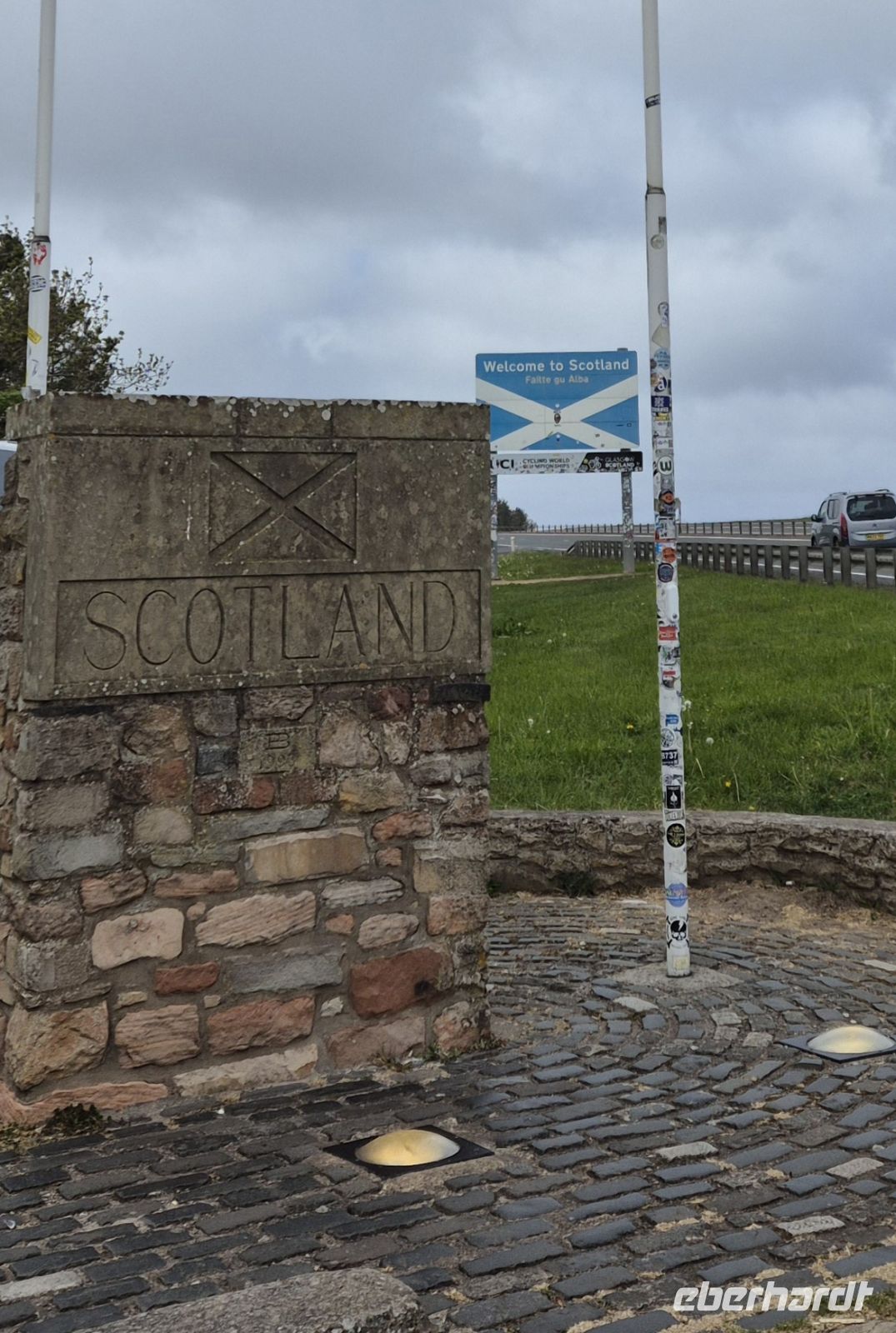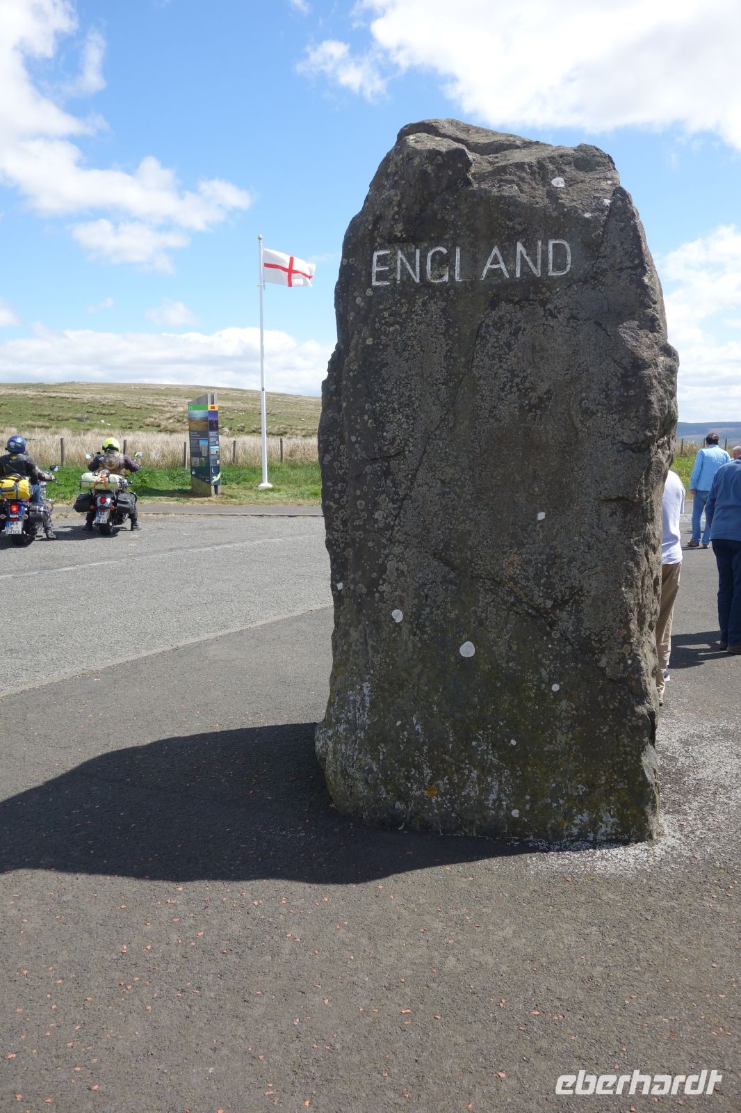 Weiter gehts zur nahen Grenze zwischen England und Schottland- ein Fotostop ist Pflicht und auch einige Dudelsackklänge über die Busanlage gehören dazu.