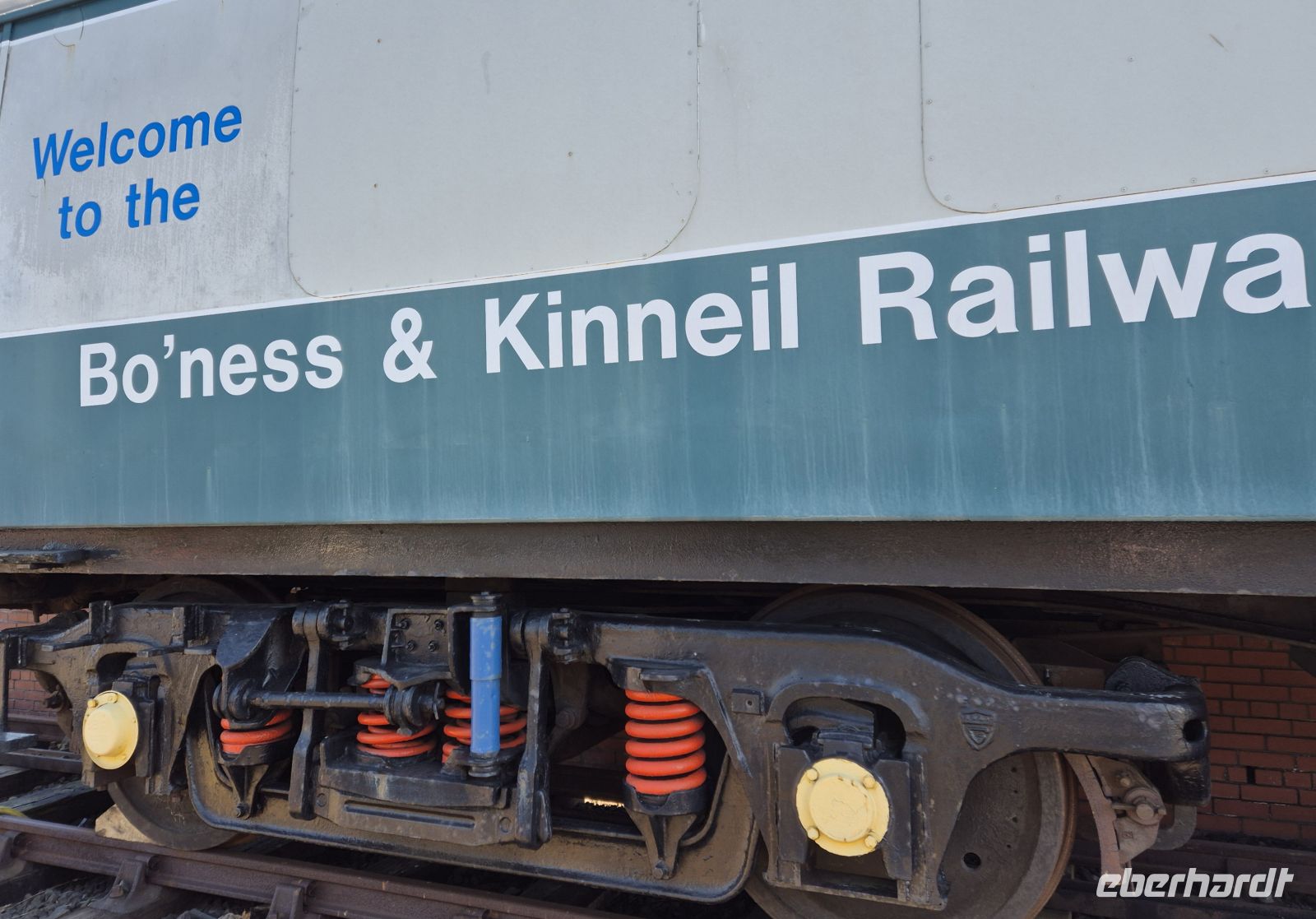 Nach dem wie üblich reichhaltigen englischen Frühstück verlassen wir Edinburgh in westlicher Richtung entlang des Firth of Forth und erreichen das Bo'ness and Kinness Railway Museum - für uns wurde übrigens extra früh geöffnet- bei schönstem Sonnenschein. Ein Mitarbeiter begrüßt uns mit hartem schottischen Akzent- nicht leicht zu übersetzen- kurze Einweisung und es beginnt ein freier Rundgang durch die diversen Hallen und zu den zahlreichen Ausstellungsexponaten. Fragen werden gerne von unserem Betreuer beantwortet- wir erhalten einen interessanten Einblick in die Bahnkultur und die Technik aus einer frühen Zeit des Eisenbahnwesens sowohl was die Kohletransporte als auch den Komfort für die Bahnreisenden betrifft- mit vielen Kuriositäten wie die Postsortierungsanlage - kein Witz ein Fach ist mit dem Zustellungsort Mond beschildert.