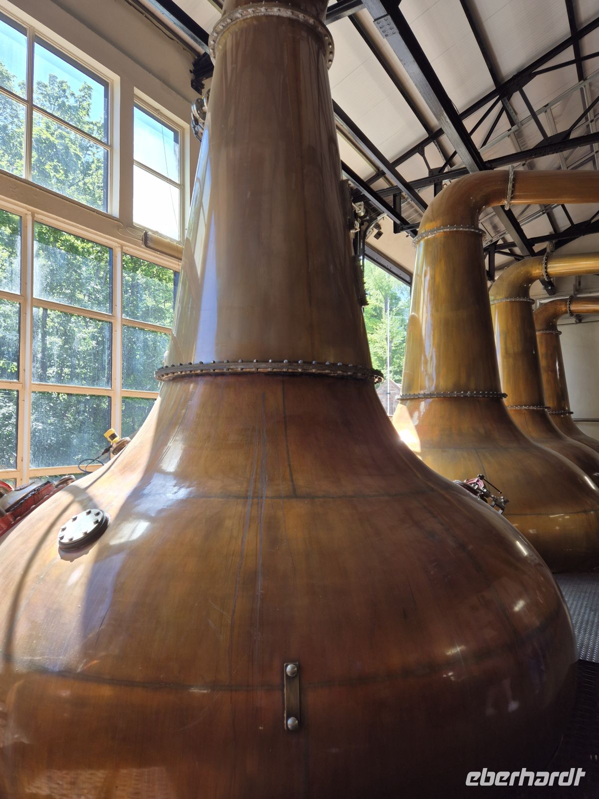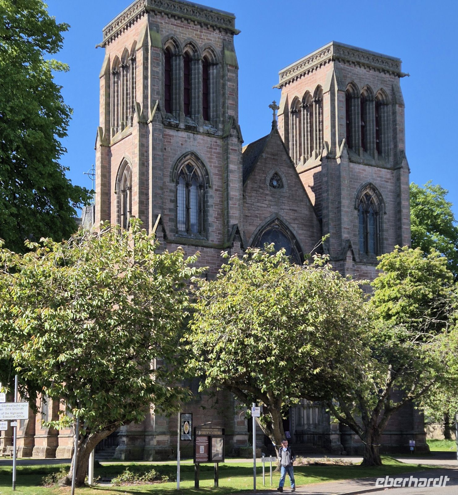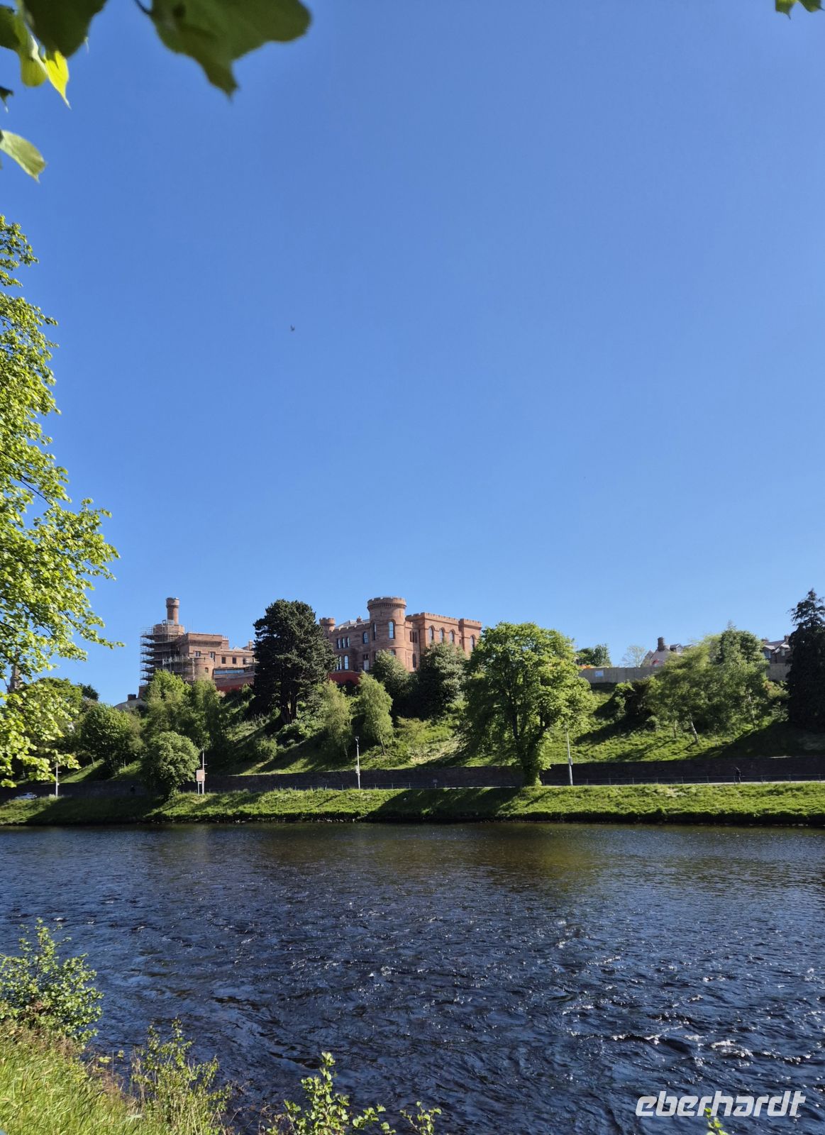 Nach dem üppigen engl. Frühstück folgt nach kurzer Fahrt ein Stop bei den Resten der mittelalterlichen Carrbridge- eine malerische und sehr fotogene Angelegenheit…es ist die älteste Steinbrücke der Gegend- die evtl noch für auf Abenteur erpichte Fußgänger benutzbar wäre….ist aber nicht ratsam. Wir erreichen bald die Hauptstadt der Region Inverness, übersetzt bedeutet es Mündung des Flusses Ness. Geparkt wird unterhalb der wiederaufgebauten Burg bei der Kathedrale. Von dort ist es nur eine kurze Strecke ins Zentrum der sehr lebhaften Innenstadt mit interessanten Geschäften in der Fußgängerzone. Am Fluss ein Souvenirladen mit ansprechendem Sortiment- bietet mehr als den üblichen Kitsch an….Unser nächster Besichtigungspunkt ist die am nahen Beauly Fjord gelegene die Muir of Glen Distillery die wir wegen eines schweren Verkehrsunfalls und einer erforderlichen Umleitung gerade noch zum verabredeten Zeitpunkt erreichen konnten. Ein kurzweiliger und humorvoller Rundgang brachte uns die Geheimnisse der Whisky Destillation nahe- zur Belohnung natürlich mit einer Kostprobe aus den „Schätzen“ des Hauses. Durch den unfallbedingten Zeitverlust war es nicht möglich die vorgeschlagenen Besichtigungspunkte unterwegs – vor allem die Kirchenruine von Elgin wäre sehenswert gewesen- anzusteuern. Pünktlich erreichen wir den Bahnhof von Keith mit dem putzigen und malerischen Stationsgebäude. Unser Zug – etwas in die Jahre gekommen- wurde von einer veritablen Dampflokomotive gezogen – unter Zuhilfenahme einer Diesellok, denn wegen der herrschenden Trockenheit konnte der „feurige Elias“ wegen des zu befürchtenden Funkenflugs nicht mit Volldampf fahren. Auf einer gemütlichen durch Bäume gesäumten Strecke im Flußtal des Spey - viele Teilnahmer hatten sich aufgrund der Beschreibung eine sehr viel abenteuerlichere Strecke vorgestellt - erreichten wir den Ort Dufftown- in dessen Umgebung sich mehrere Distillerien befinden - die Strassen dort haben auch den Beinamen „Whisky Trail“ - die Luft ist wirklich recht alkoholschwanger