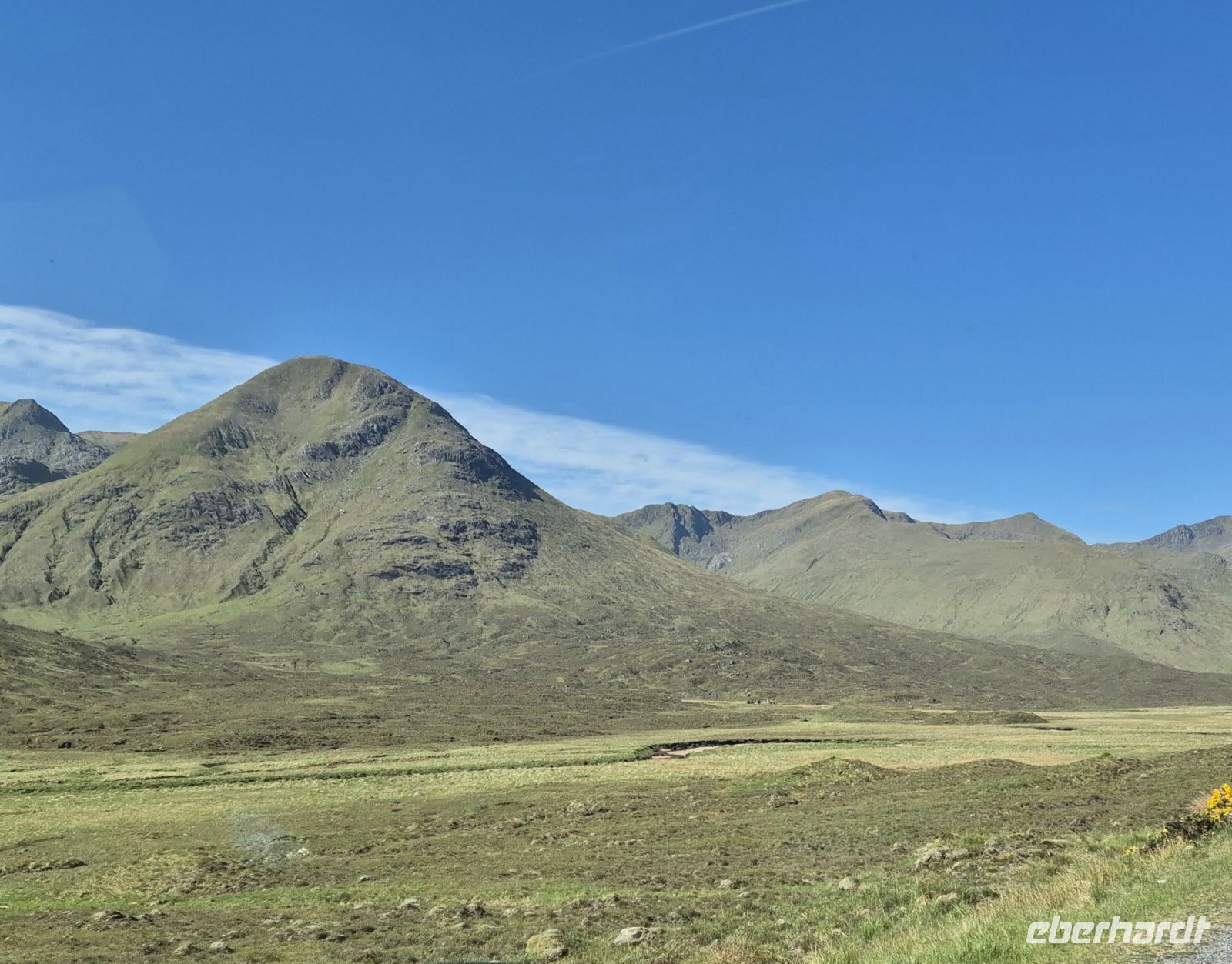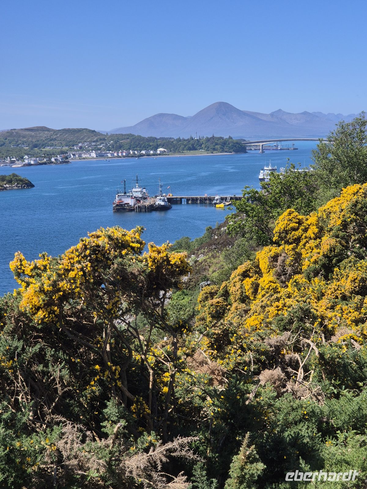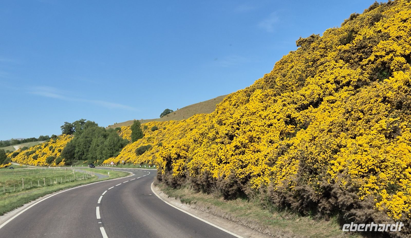 Die Weiterfahrt bringt schöne Blicke auf die nahe Küste wo wichtige Ereignisse für die Christianisierung der Insel auf den Holy-Islands stattfanden- wichtigste Person St. Columba aus Irland, Iren warten ja auch an der Christianisierung Deutschlands beteiligt.
