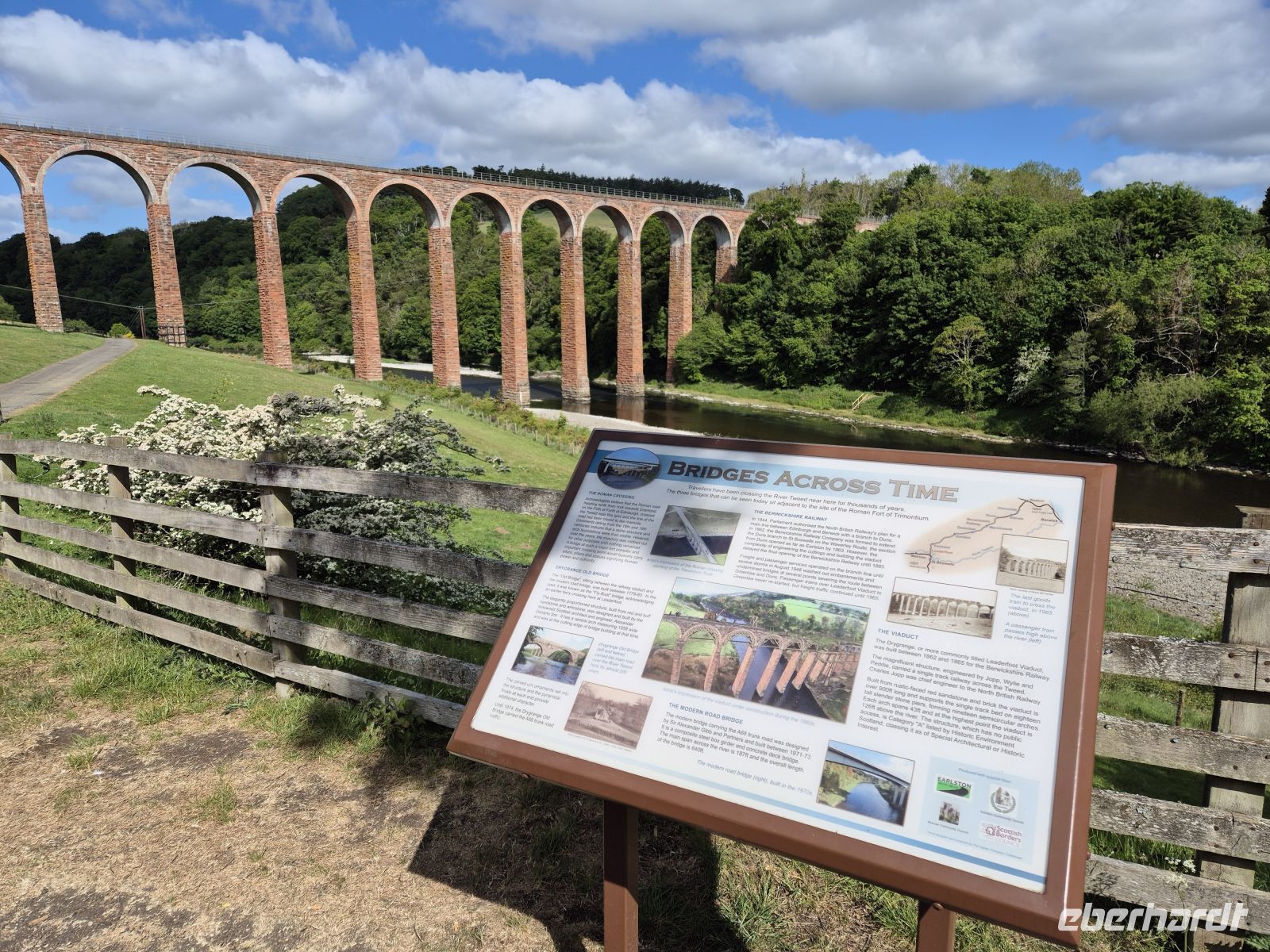 Vor der Abfahrt der Gruppe wurden 2 Flugreisende die heute schon ihre Rückreise antraten per Taxi am Hotel abgeholt- die Busgruppe fuhr zur üblichen Abfahrtszeit 09:00 h – also ausgeruht – in Richtung England. Erster Stop war bei dem eindrucksvollen Bahnviadukt von Leaderfoot. Nach diesem Fotostop erreichten wir eine der Border Abteien die Dryburgh Abbey in landschaftlich schöner Lage inmitten eines typ. englischen Parks. Ich habe bei einem kleinen Rundgang einige Erläuterungen zur Abtei aber vor allem zu den dort begrabenen wichtigen Persönlichkeiten wie den wohl wichtigsten schottischen Dichter Sir Walter Scott und dem Oberbefehlshaber der allierten Truppen im ersten Weltkrieg Douglas Haig gegeben. Die Anlage teilte das Schicksal aller schottischen Abteien im Grenzgebiet, sie wurde mehrfach zerstört und irgandwann danach nicht mehr wieder aufgebaut. Auf dem weiteren Weg zur Grenze folgte noch der großartige Blick den schon der Dichter Scott rühmte-daher sein heutiger Name "Scotts view". Kurz danach erreichten wir dann quasi als Schlusspunkt die nächste - ebenso fotogene Grenzabtei – und Ruine - von Jedburgh. Der Aufenthalt dort wurde dank der Lage des Parkplatzes zur Abteiruine und des benachbarten typischen Landstädtches zur Mittagspause - Bordverpflegung war möglich - genutzt. Nach kurzer Weiterfahrt kommen wir auf die Anhöhe Carter Bar mit den Grenzsteinen und Hinweisen auf die Grenze zwischen Schottland und England. Nach dem „Pflichtsstop“ hier und einigen Fotoshootings gehts zügig weiter nach Newcastle zum Hafengebiet. Das Einchecken ging recht flott vonstatten- die Befürchtungen wegen der Grenzabfertigungen nach Brexit und dem neuen Visa-formular ETA erwiesen sich Gottlob als überflüssig. Pünklich und bei sonnigem Wetter legen wir um 18:00 ab und stürzen uns auf das wieder sehr üppige und schmackhafte Büffet.