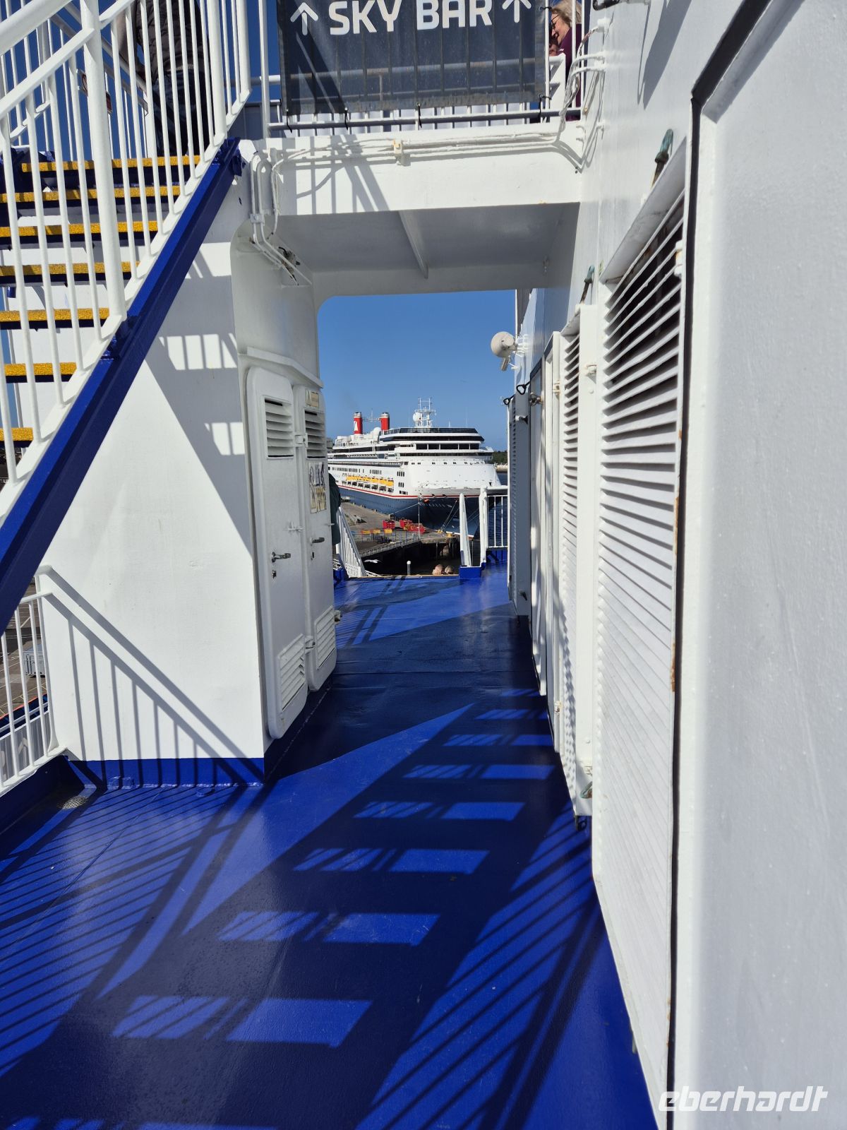 Die Passage verlief dieses Mal erheblich ruhiger – was den Seegang betraf- auch gab es nach den Reklamationen (Kabinen) bei der Anreise auf der Rückfahrt keine Probleme