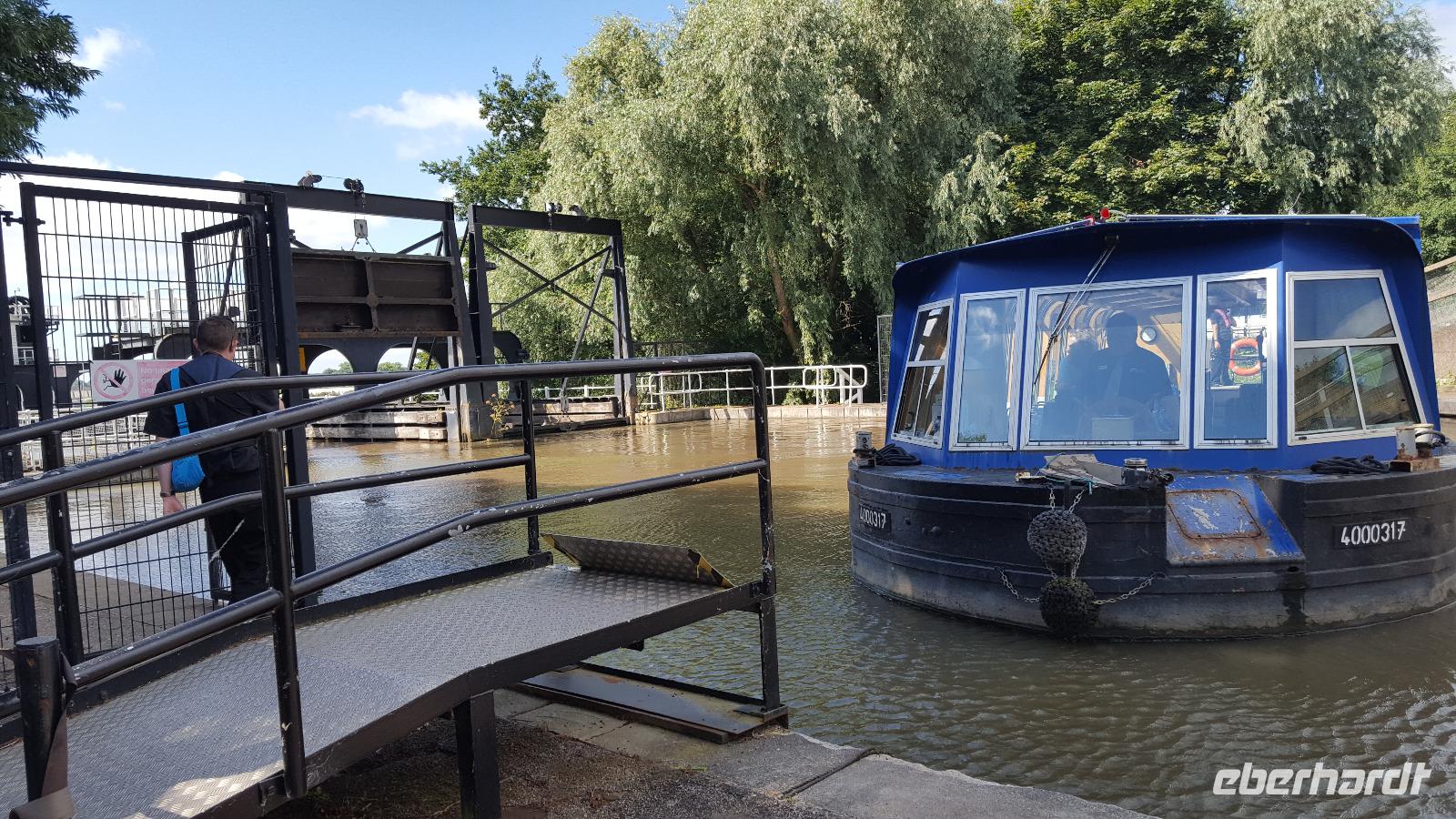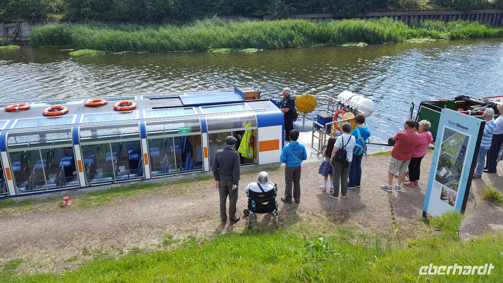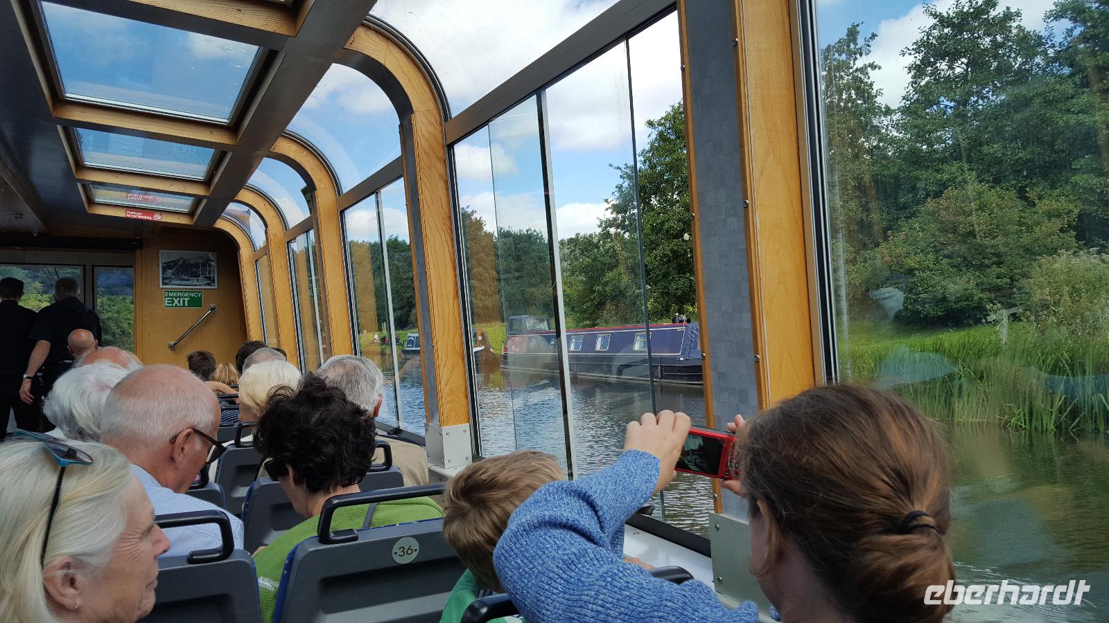 Der nächste Tag führte uns nach Northwich, eine der sogenannten „Salzstädte". In der Nähe liegt der Anderton Boatlift, mit dem wir sogar eine Hebefahrt machen konnten. Dieses technische Denkmal war ab 2001 wiederaufgebaut worden, da es seit 1875 als das erste hydraulische Schiffshebewerk der Welt galt. Es verbindet den Fluss Weaver mit dem Trent and Mercy Canal, der für den Transport von Salz, später auch Kohle und Keramiken, mit den berühmten Narrowbooten ausgebaut worden war. Dabei überwindet der Anderton Boatlift 15 m Höhenunterschied.