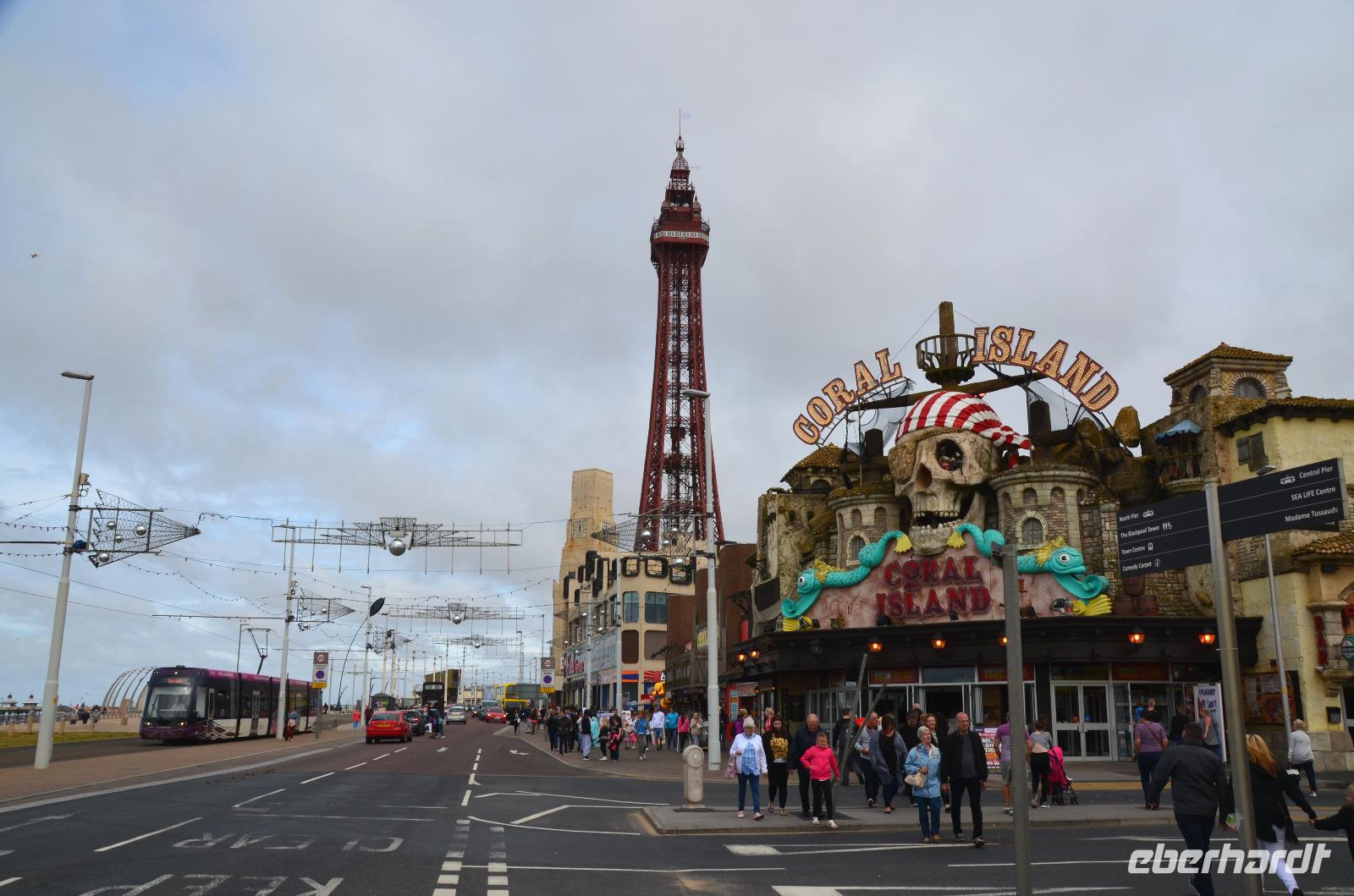 Die noch im Linienbetrieb fahrenden Doppelstockstraßenbahnen und die drei großen Seebrücken sind noch echte Sehenswürdigkeiten neben den ansonsten zahlreichen Vergnügungs- und Amüsierbetrieben für die diesen Rummel liebenden Engländer.