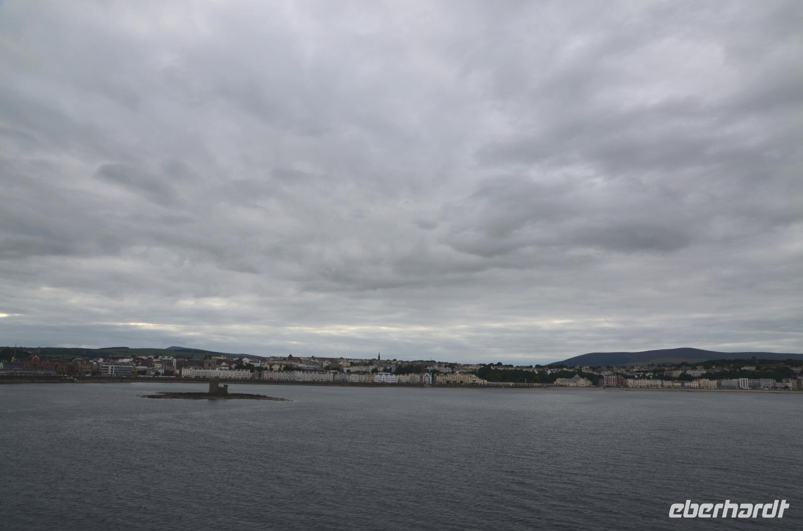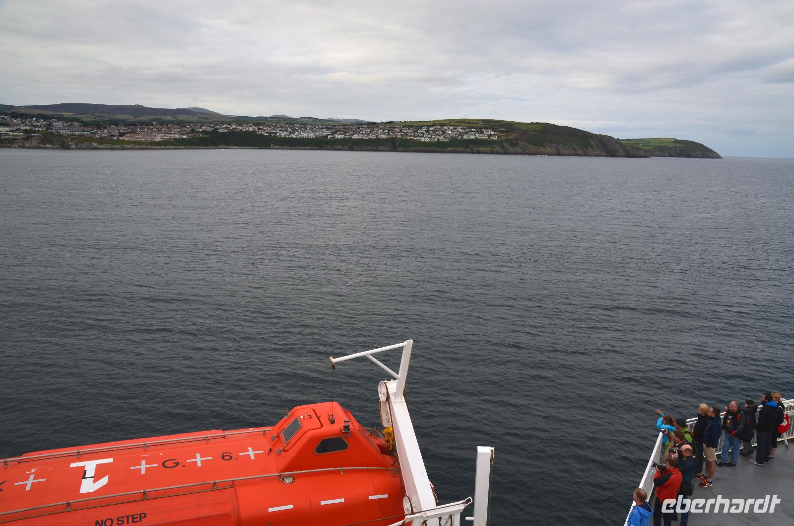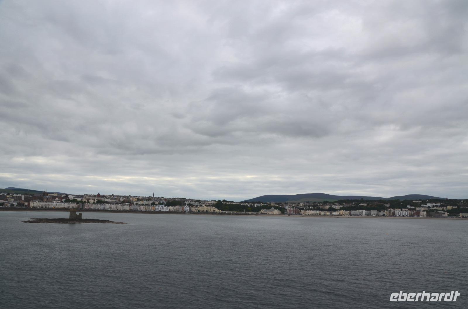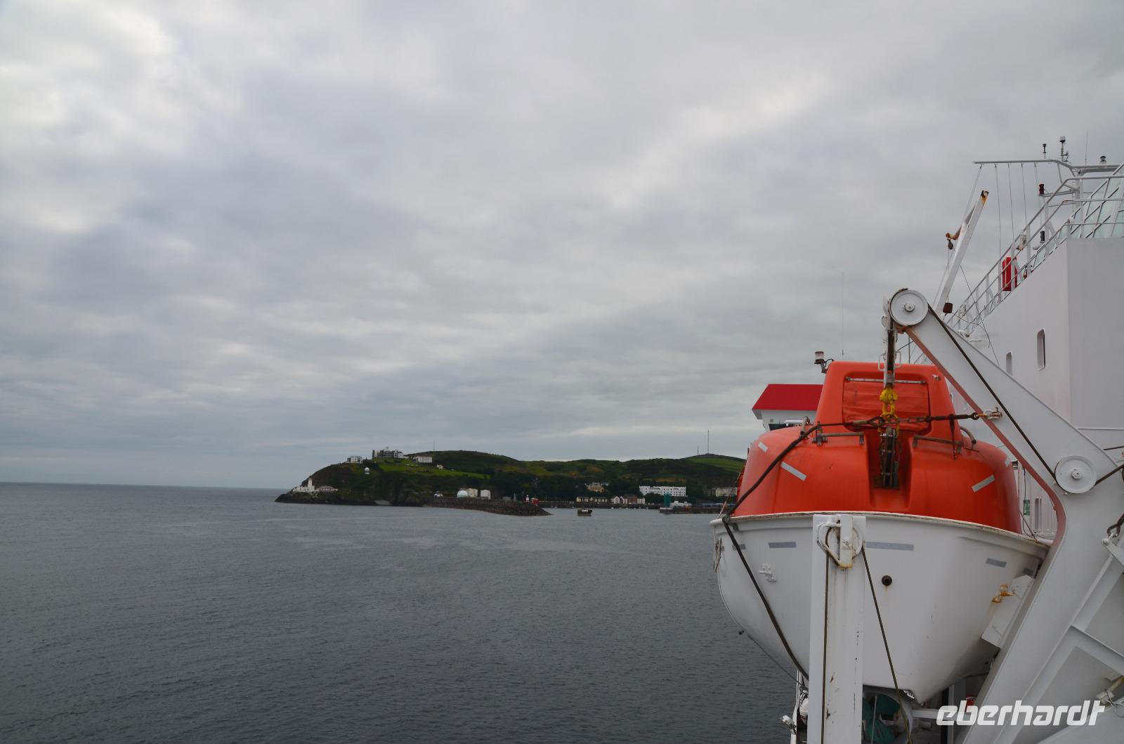 Kaum waren wir an Bord, schlioss sich die große Heckklappe und wir stachen in die Irische See. Nach ca. 3stündiger Überfahrt erreichten wir die Küsten der Isle of Man und die Bucht von Douglas, in der sich die Inselhauptstadt in weitem Bogen ausstreckt.