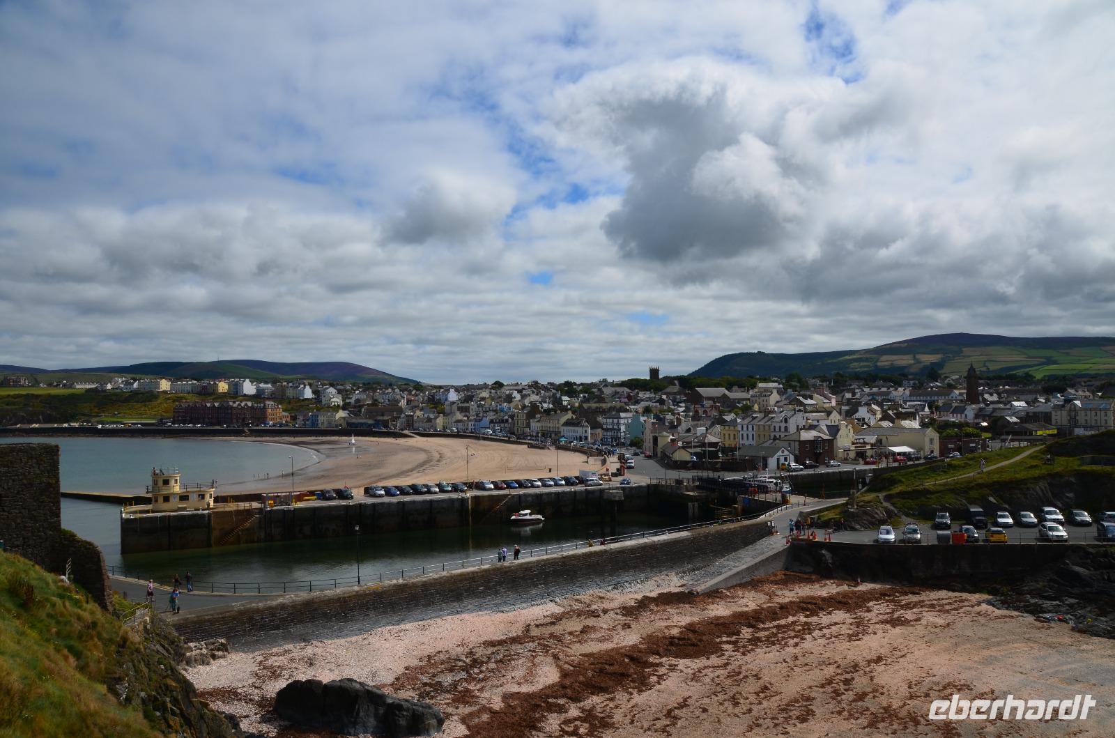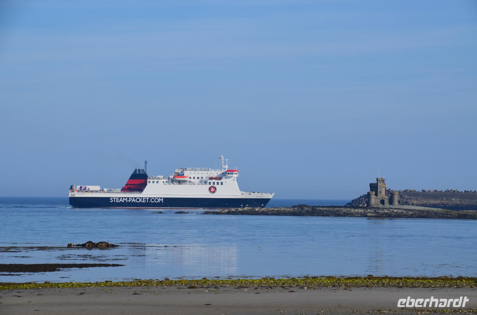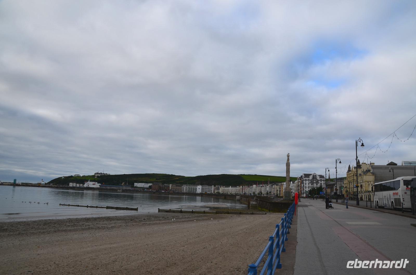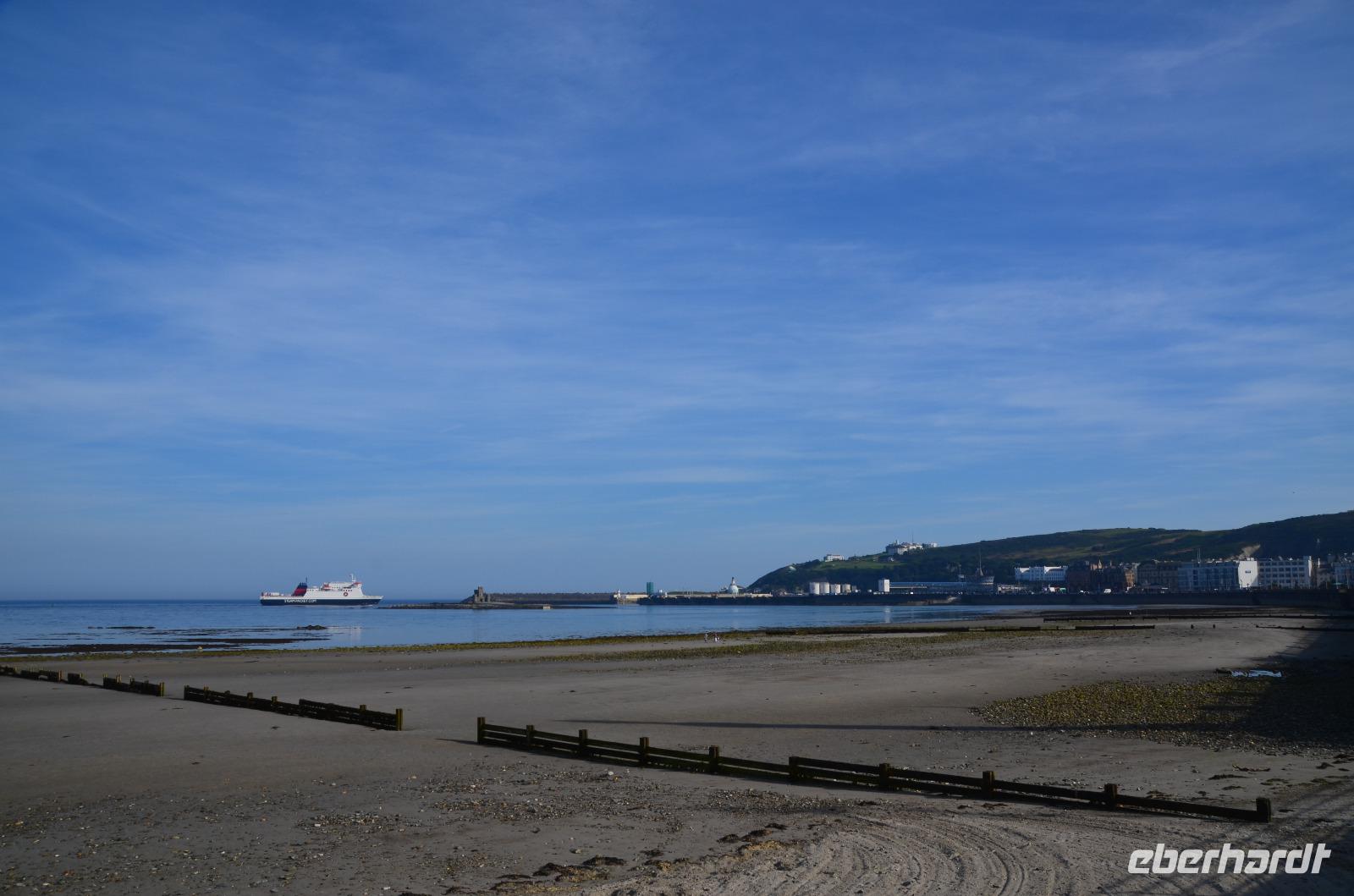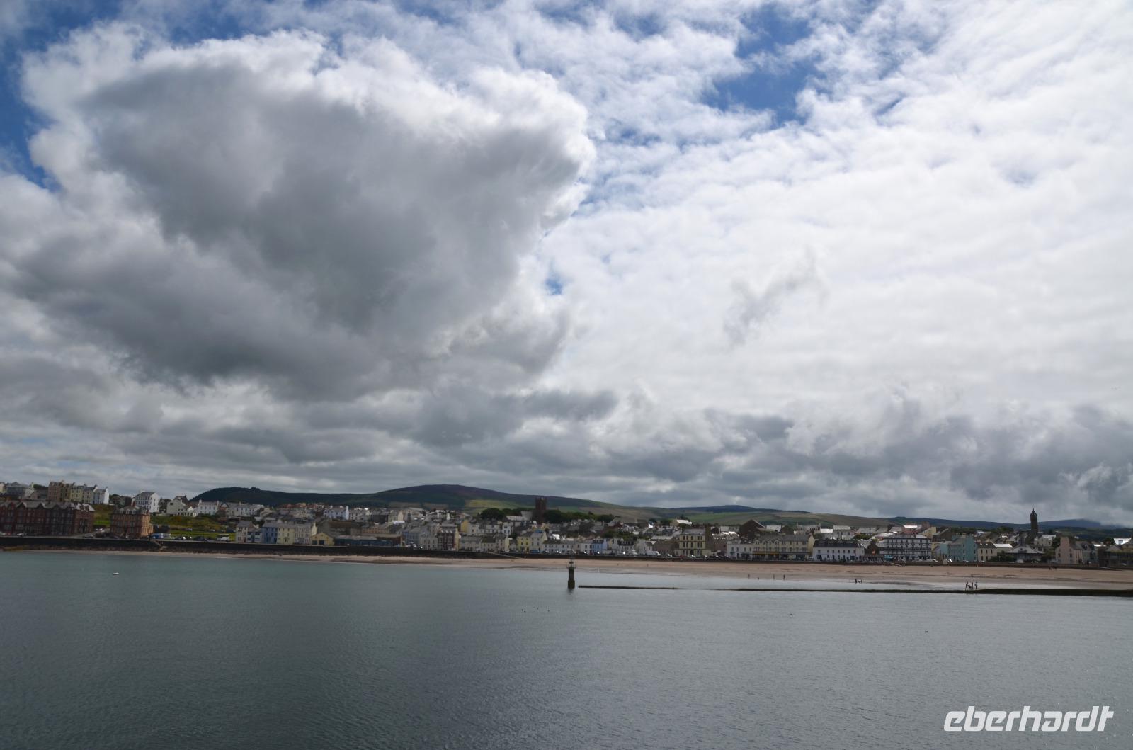 Kaum waren wir an Bord, schlioss sich die große Heckklappe und wir stachen in die Irische See. Nach ca. 3stündiger Überfahrt erreichten wir die Küsten der Isle of Man und die Bucht von Douglas, in der sich die Inselhauptstadt in weitem Bogen ausstreckt.