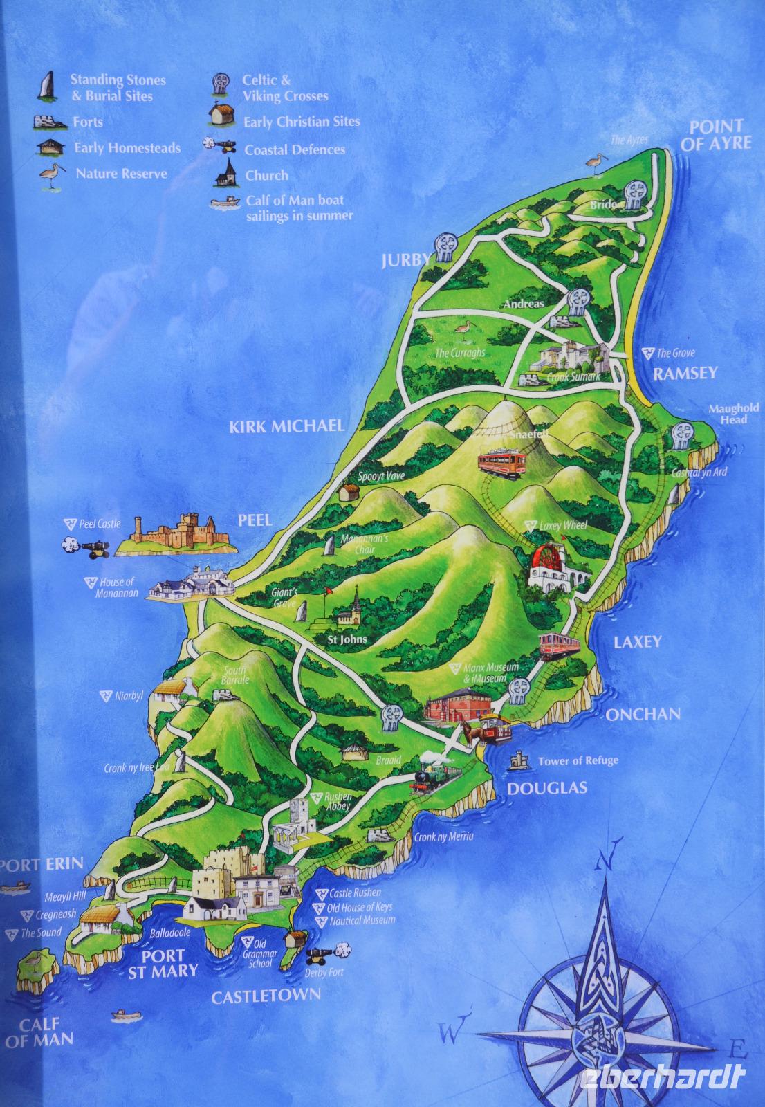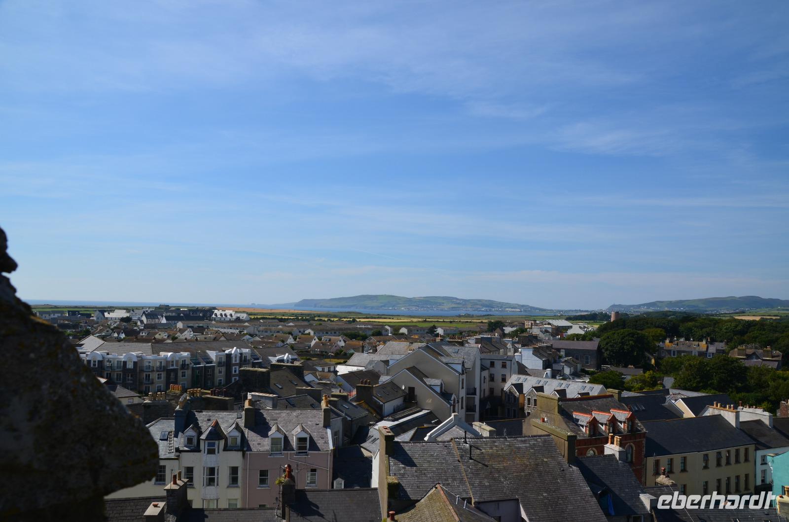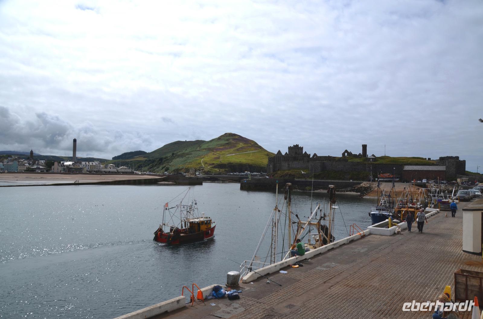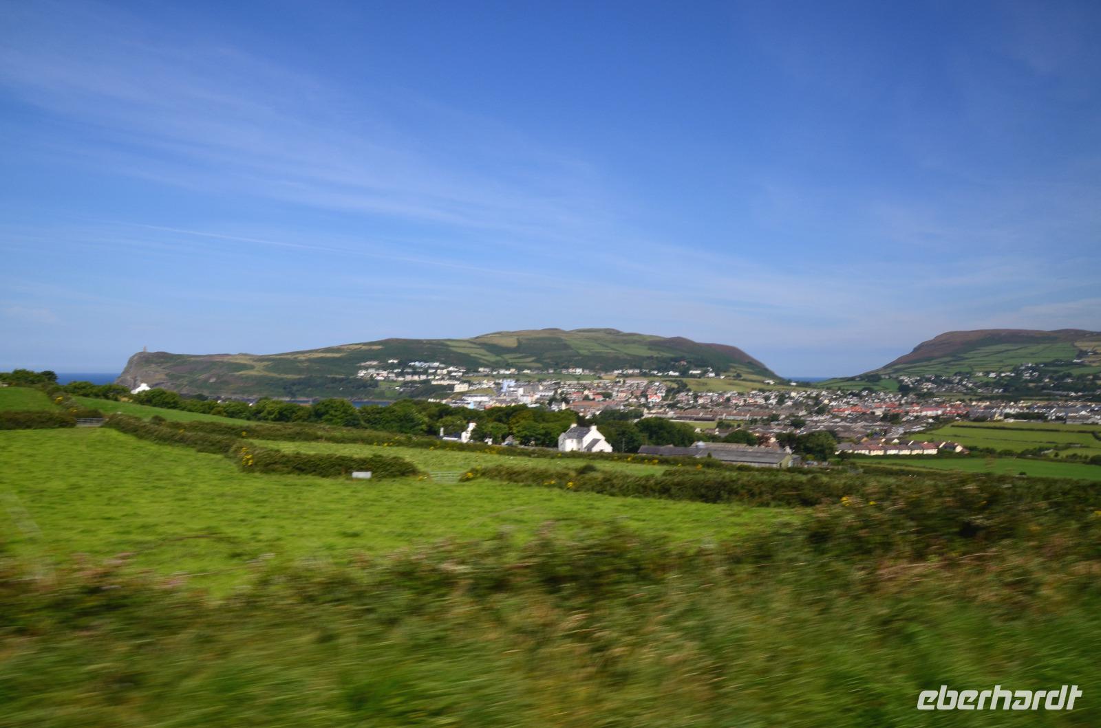Kaum waren wir an Bord, schlioss sich die große Heckklappe und wir stachen in die Irische See. Nach ca. 3stündiger Überfahrt erreichten wir die Küsten der Isle of Man und die Bucht von Douglas, in der sich die Inselhauptstadt in weitem Bogen ausstreckt.