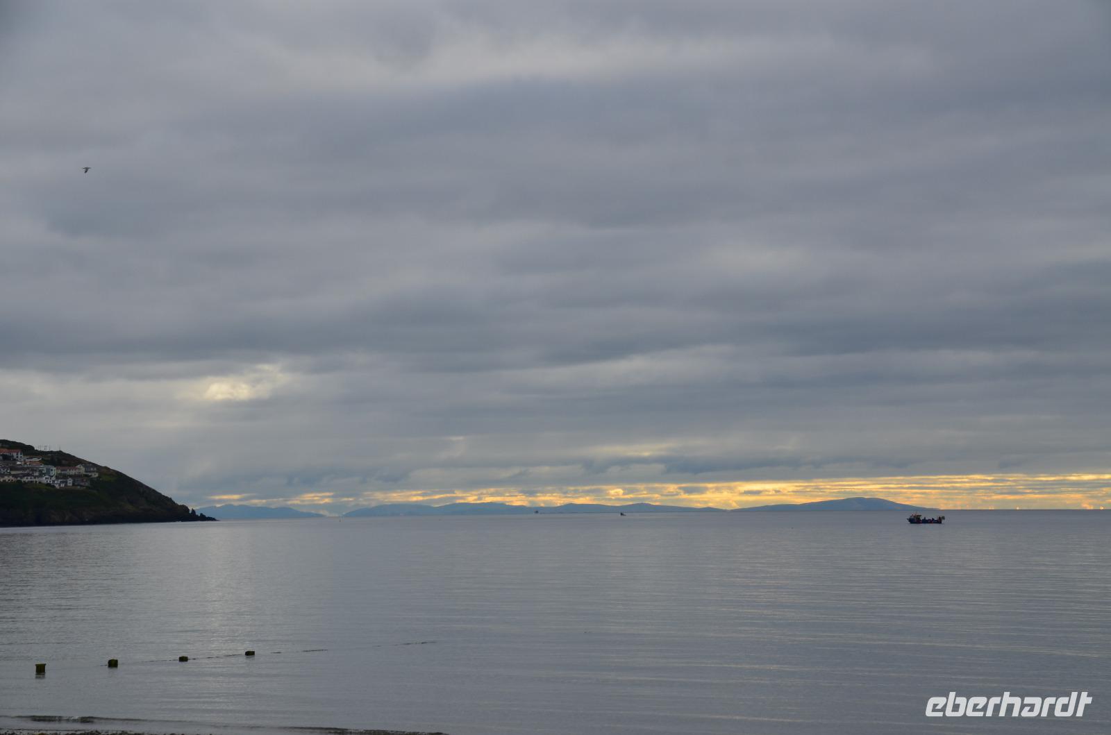 Am Morgen heißt es Abschied nehmen von der Isle of Man. Noch einmal wandern unsere Blicke zu den mit blühender Heide bedeckten Hügeln.