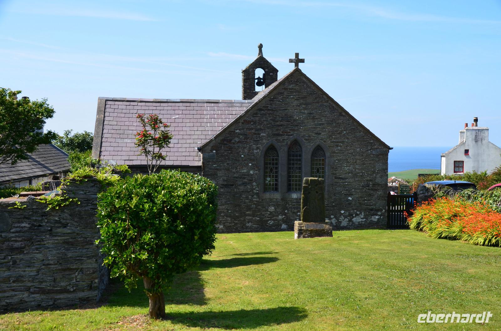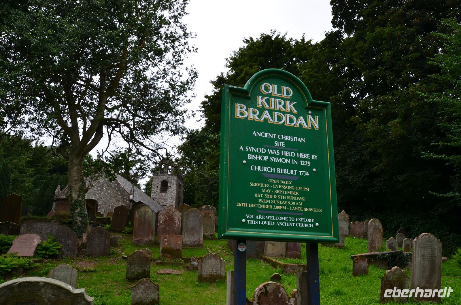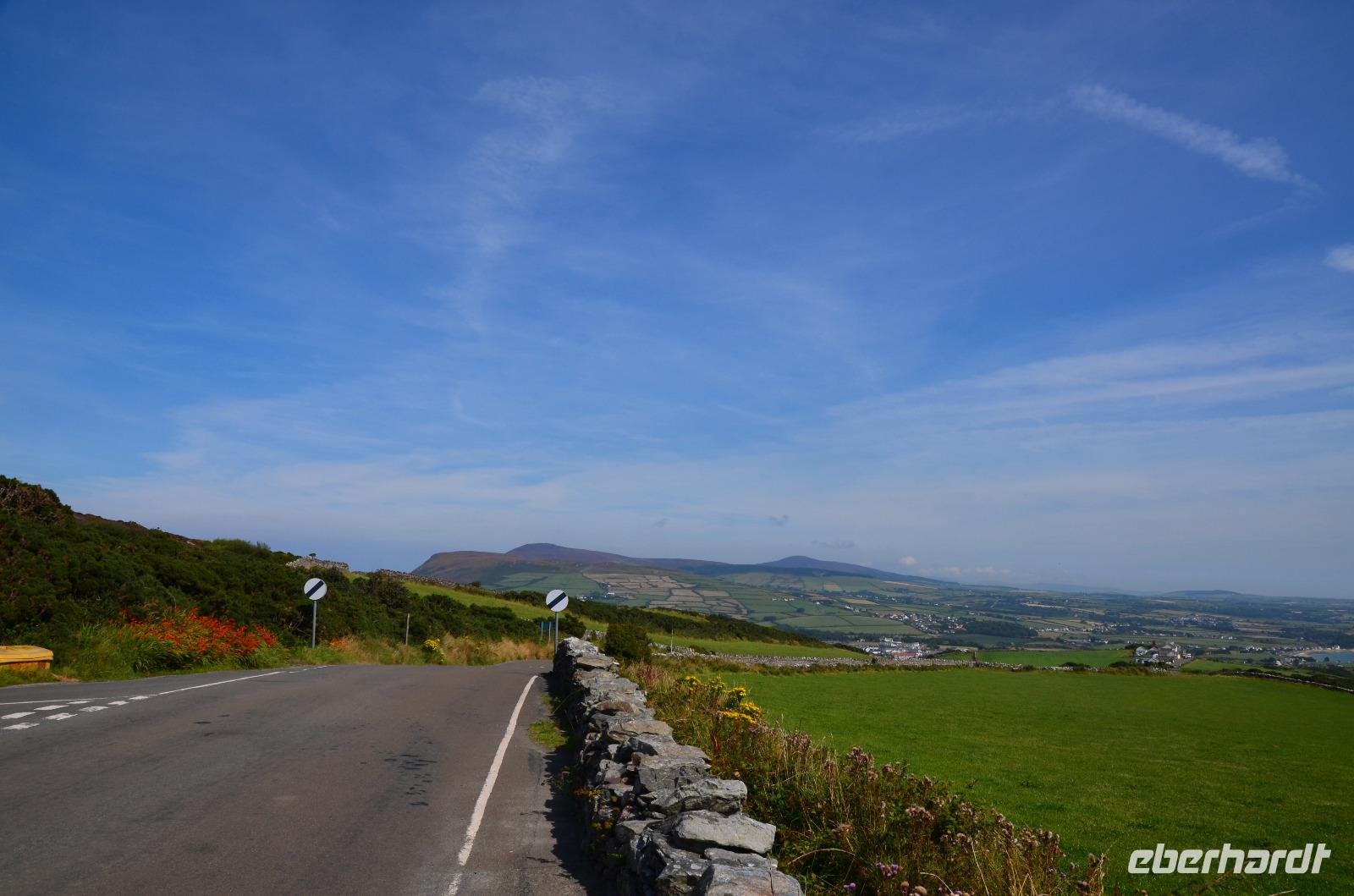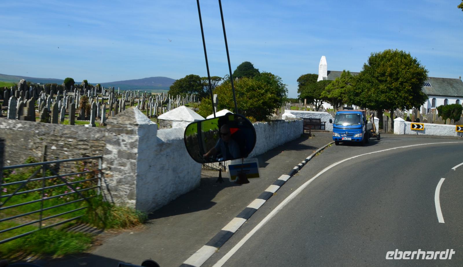 Von der Uferpromenade fahren wir zum Hafen, zum Bahnhof und weiter auf der Peel Road bis zur Old Braddan Church, wo wir die Besichtigung des Friedhofs mit dem Sklavenstein und der Wikingerkreuze in der alten Kirche durchführen. Dann geht es die A24 weiter Richtung Foxdale, wo nahe der Straße auch „The Braaid", alte Siedlungsreste der Wikingerzeit, zu finden sind. Von Foxdale fahren wir zum Aussichtspunkt „The Niarbyl Cafe and Visitor Centre, wo wir wunderschöne Ausblicke auf die Küste und die Irische See genießen können.