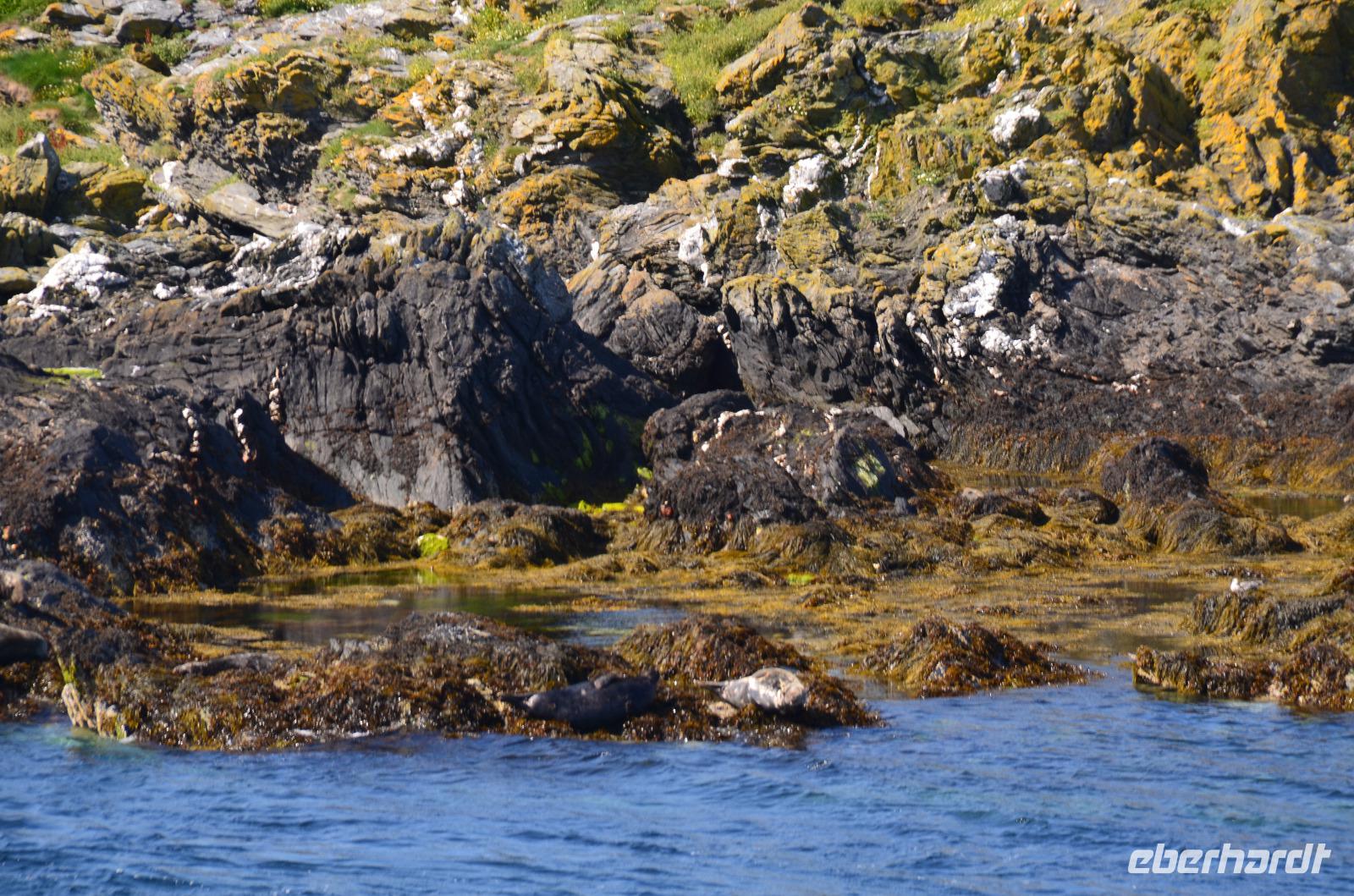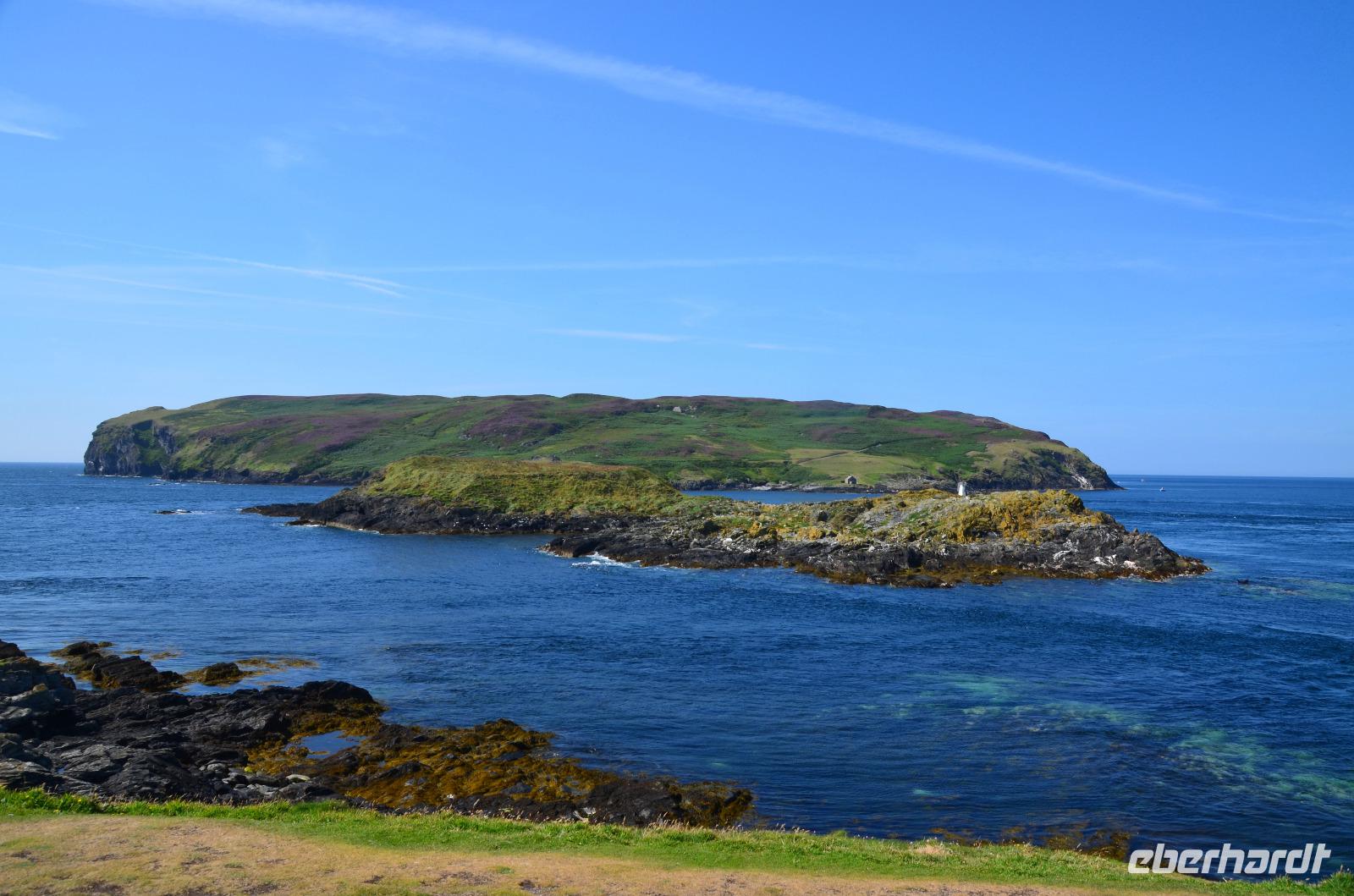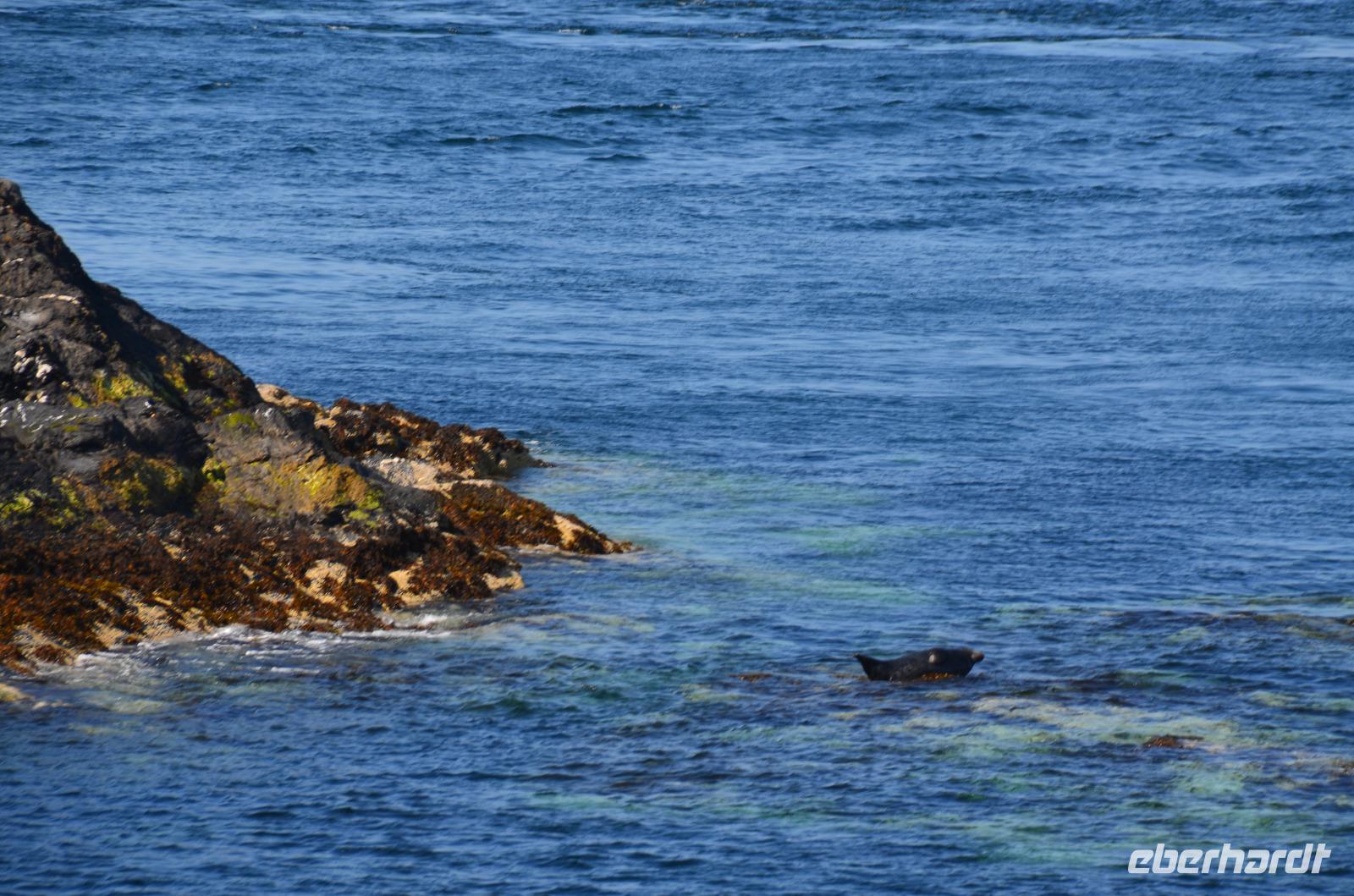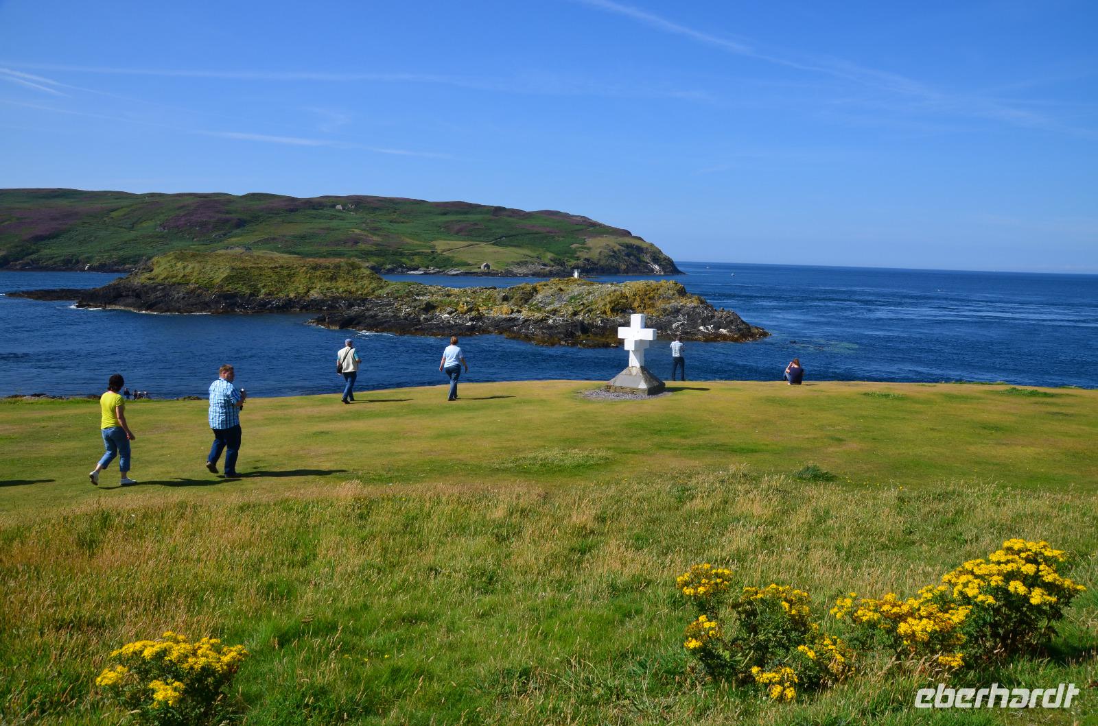 Beim Fotostopp in Sound haben wir einen tollen Blick hinüber zur Insel Calf of Man und können zahlreiche Robben beobachten, die sich im klaren Wasser tummeln.