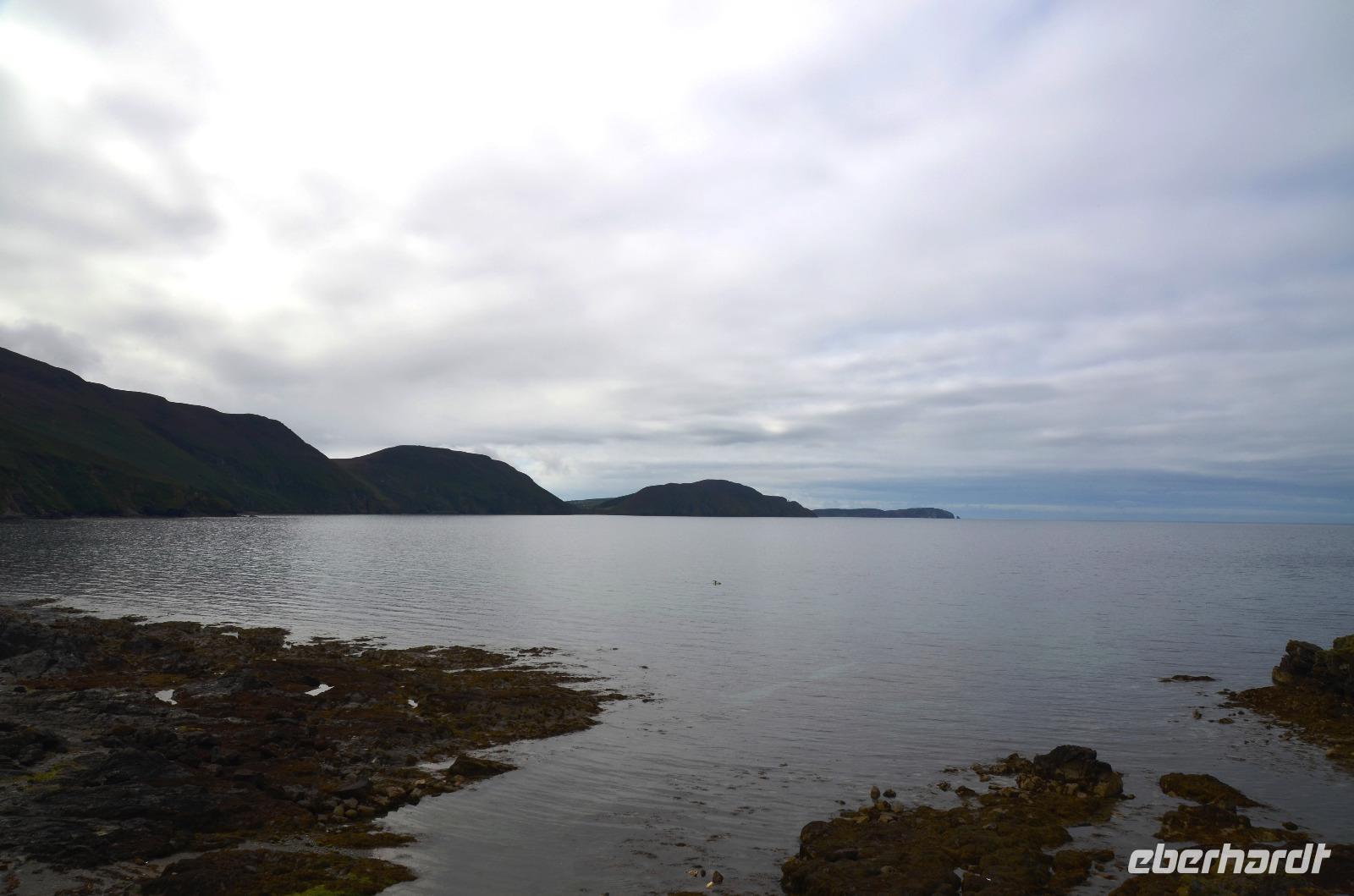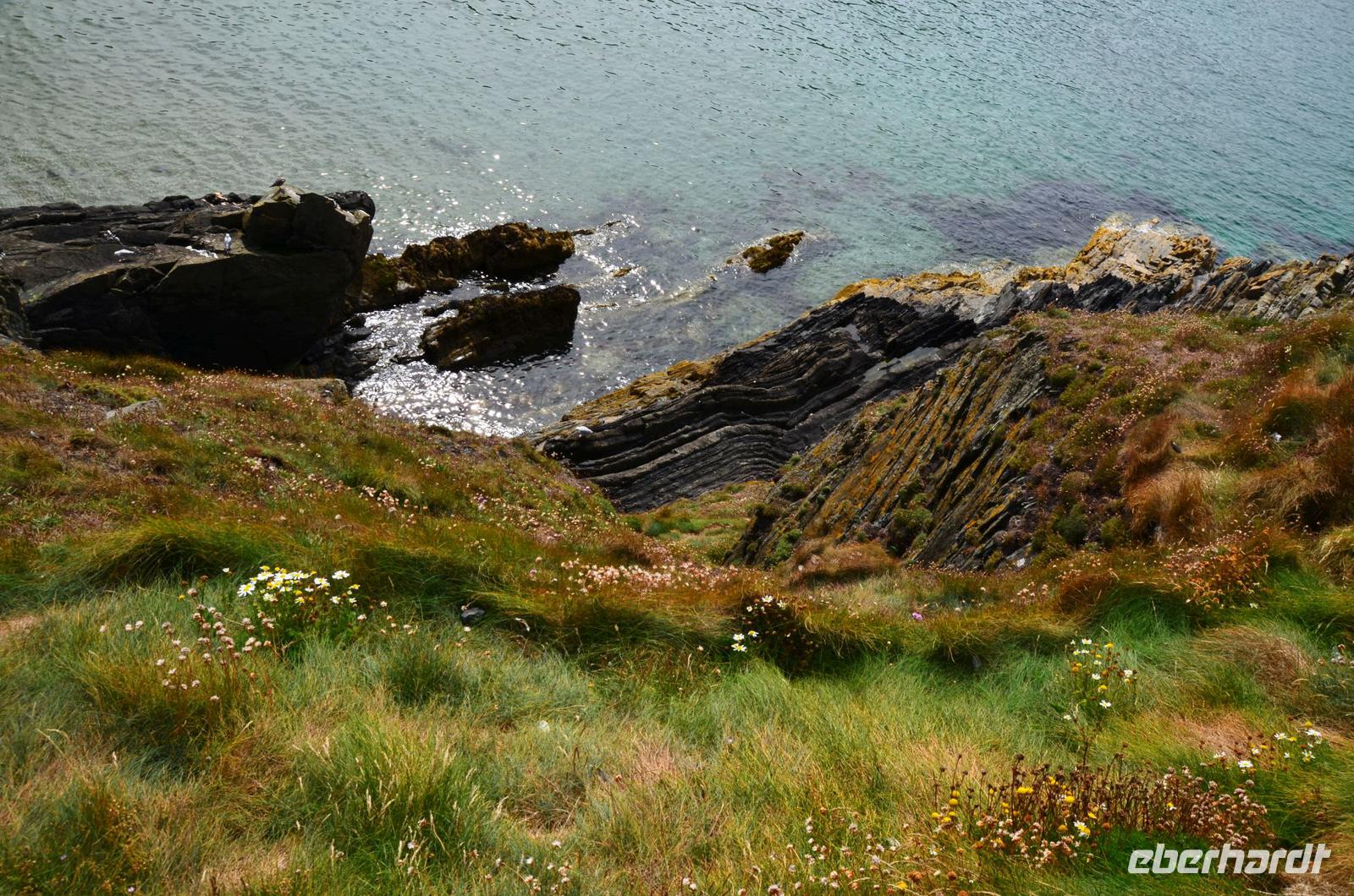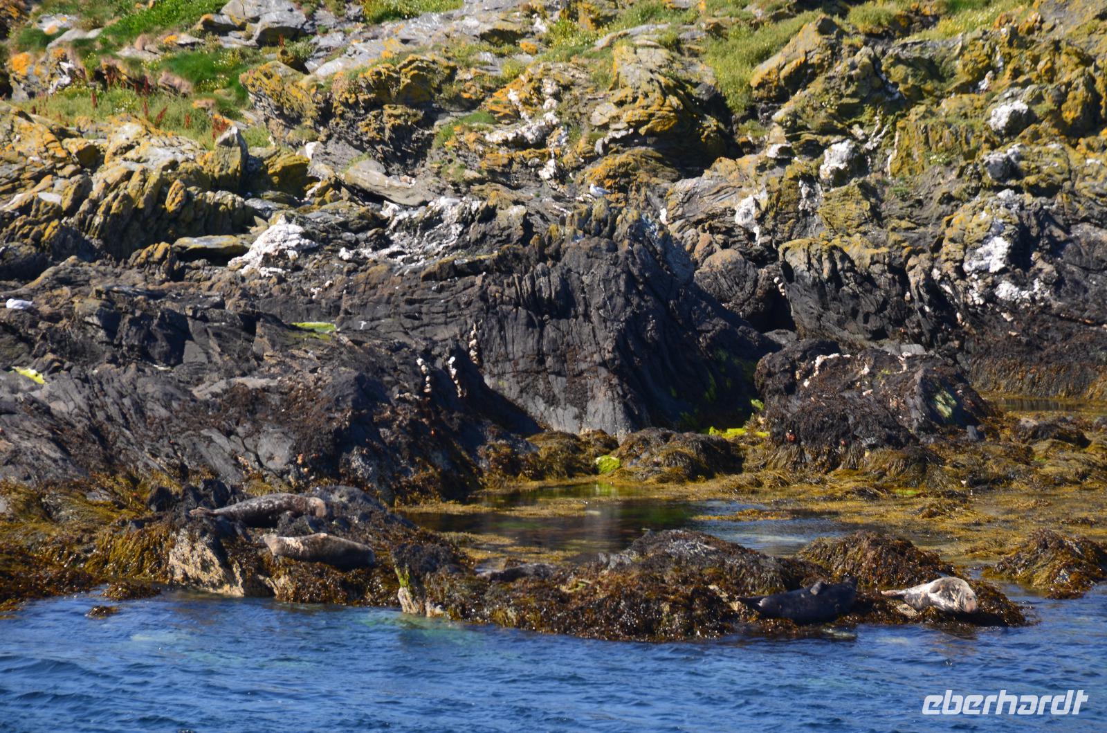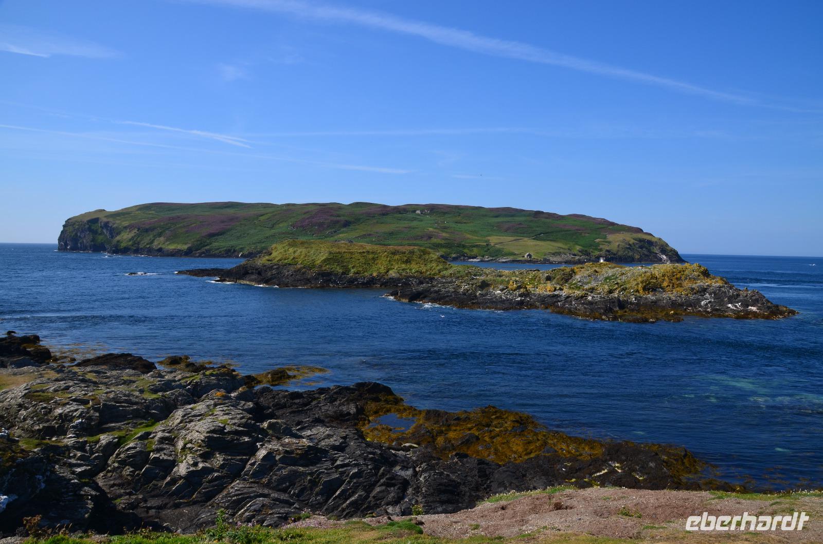 Beim Fotostopp in Sound haben wir einen tollen Blick hinüber zur Insel Calf of Man und können zahlreiche Robben beobachten, die sich im klaren Wasser tummeln.