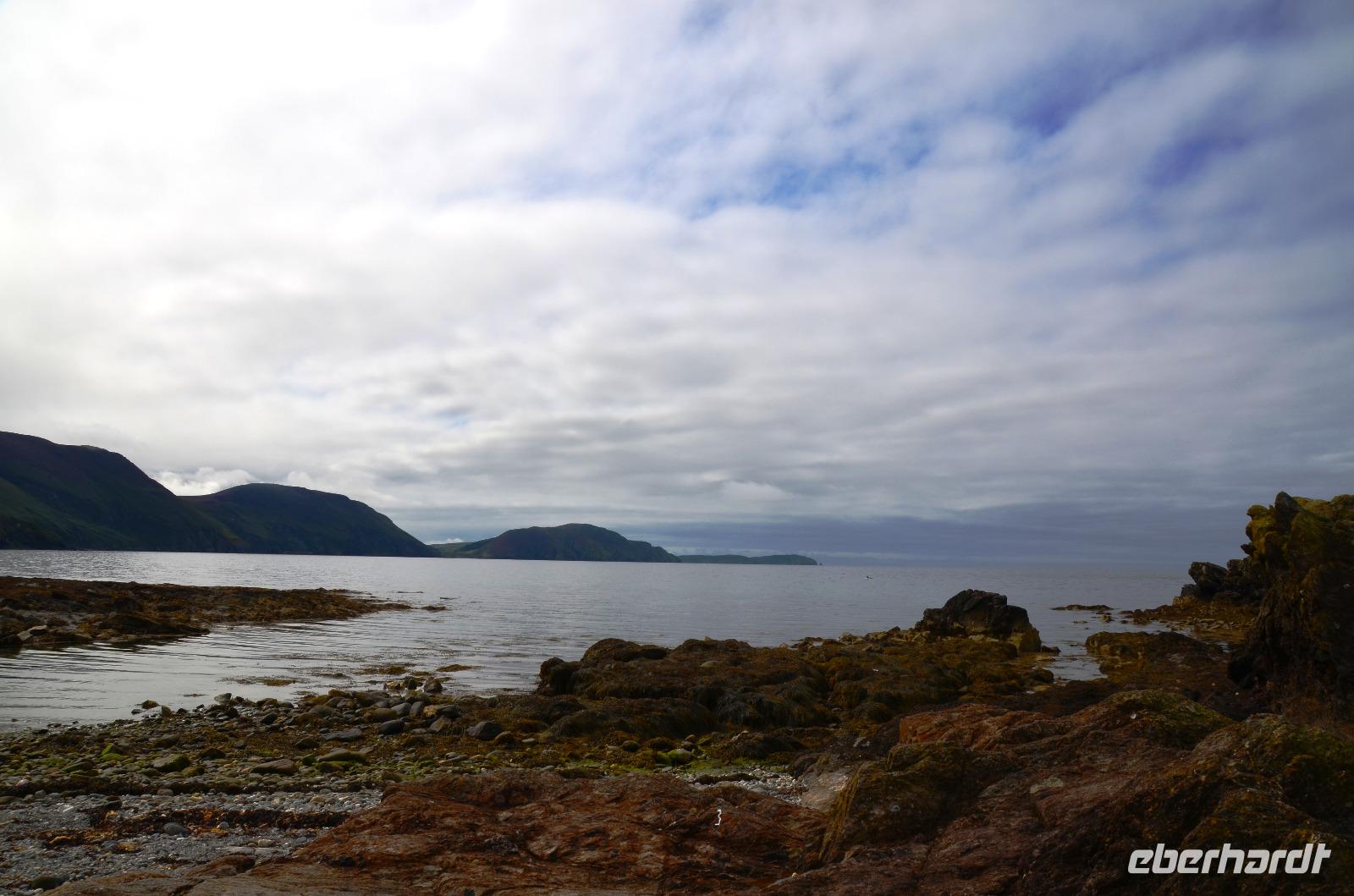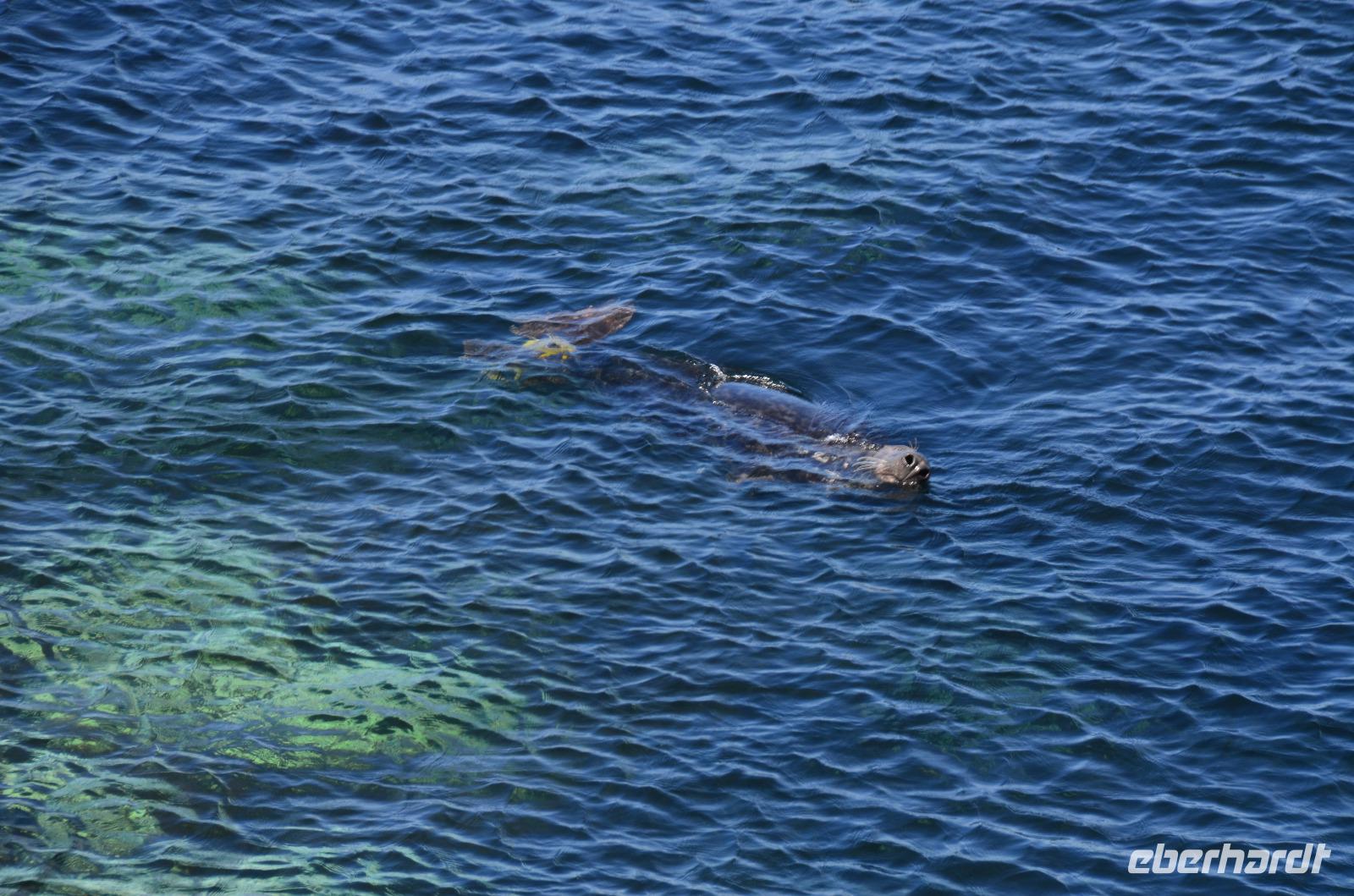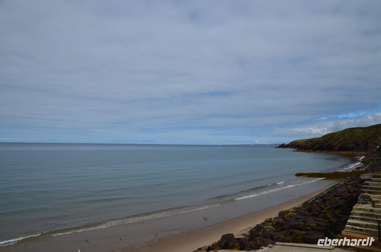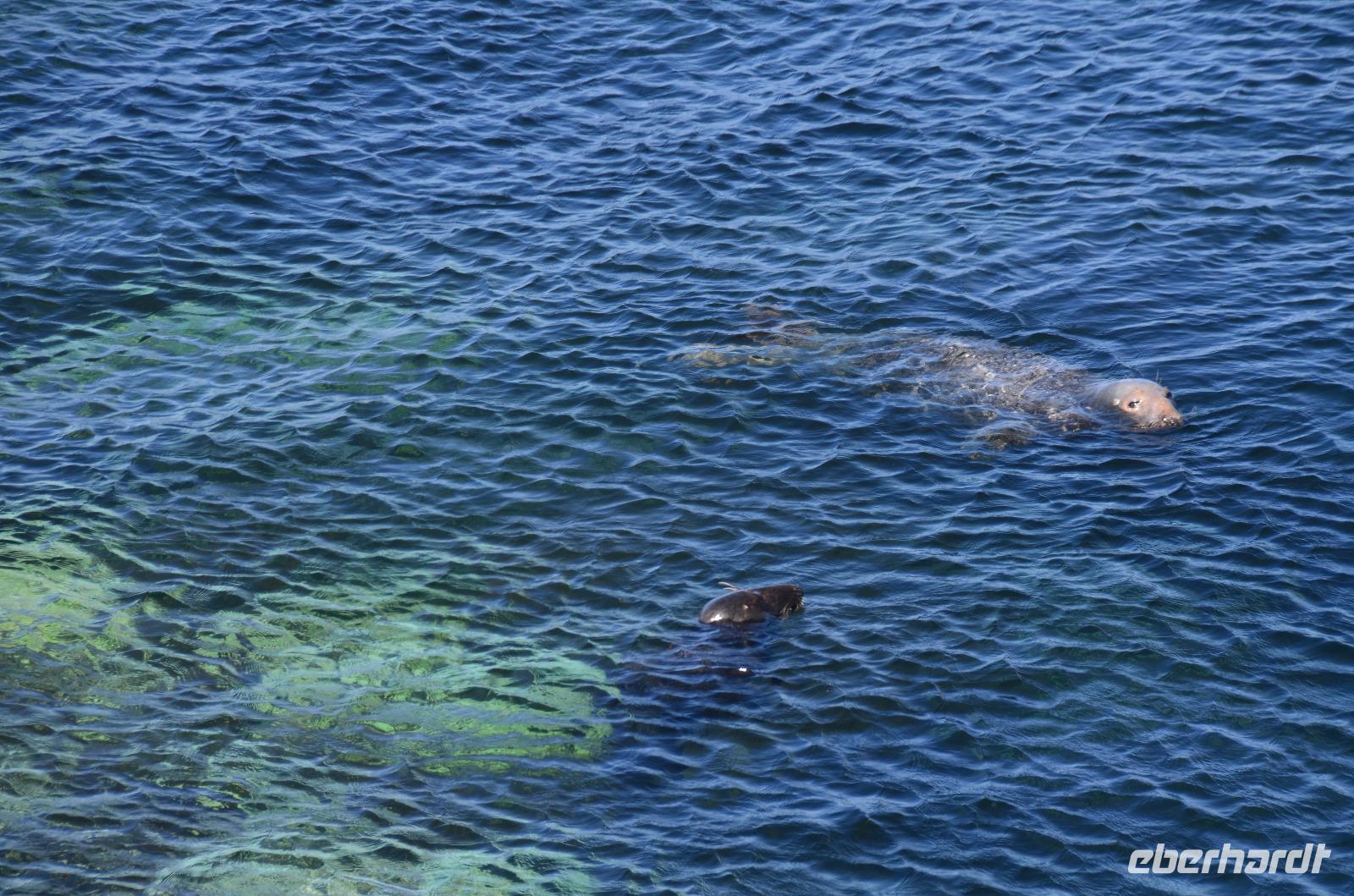 Beim Fotostopp in Sound haben wir einen tollen Blick hinüber zur Insel Calf of Man und können zahlreiche Robben beobachten, die sich im klaren Wasser tummeln.