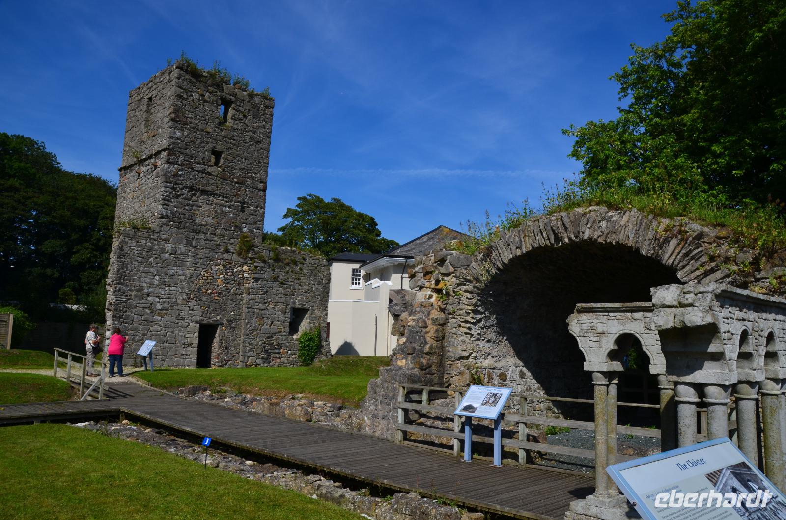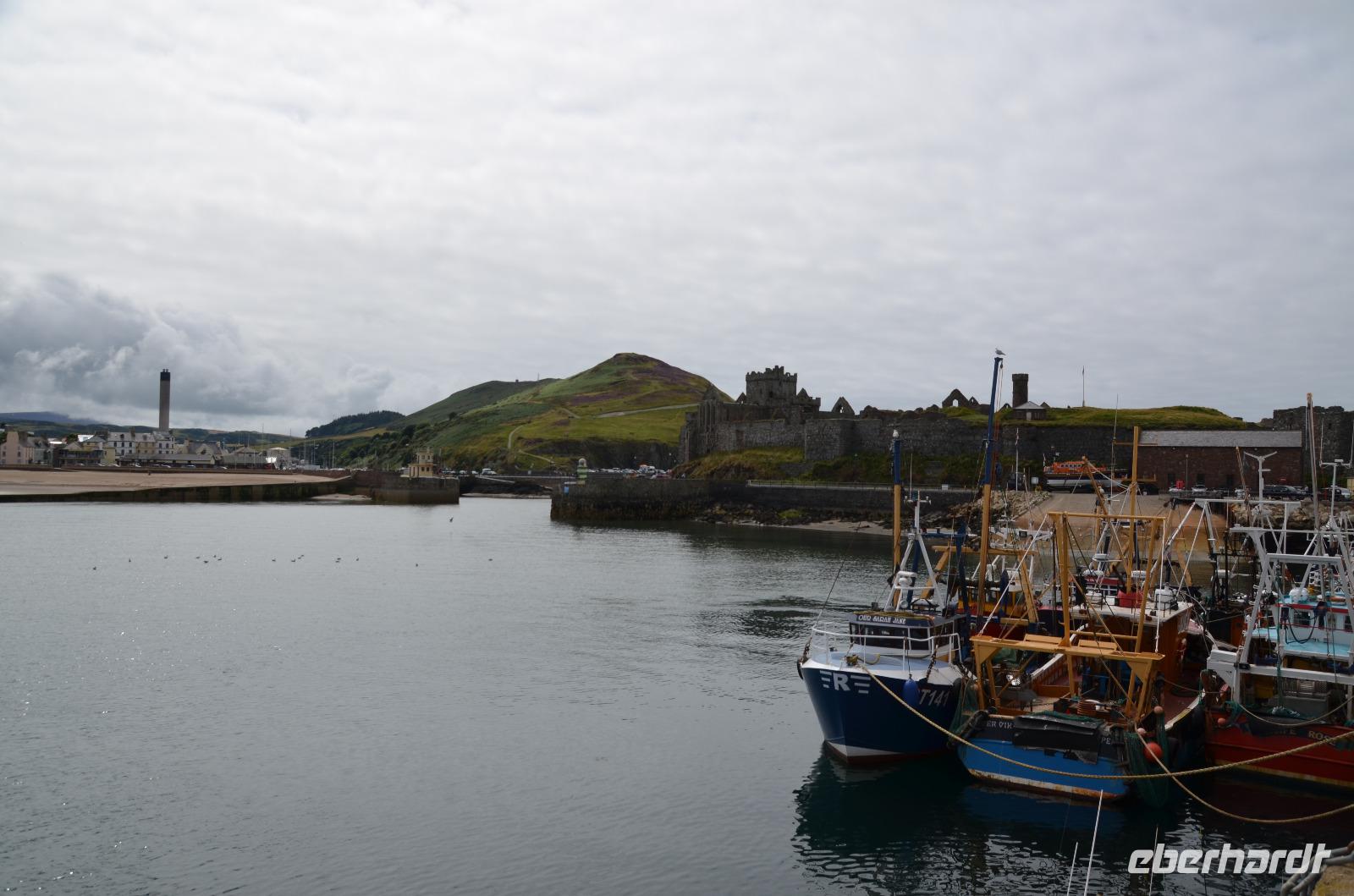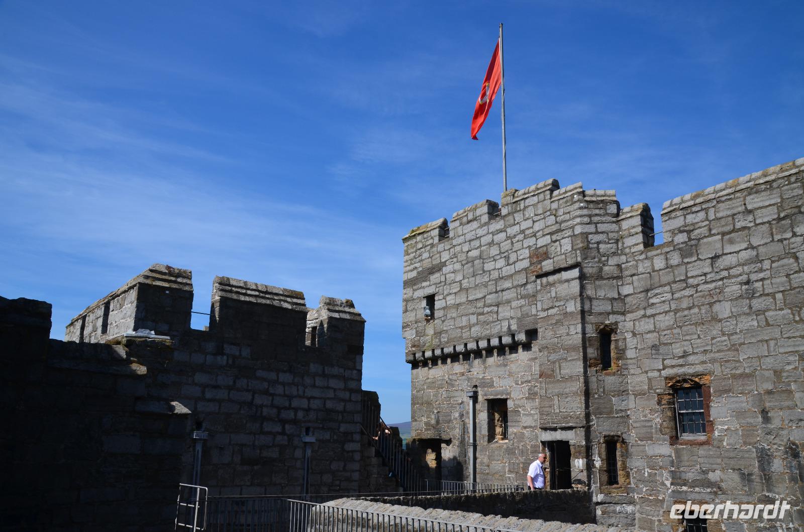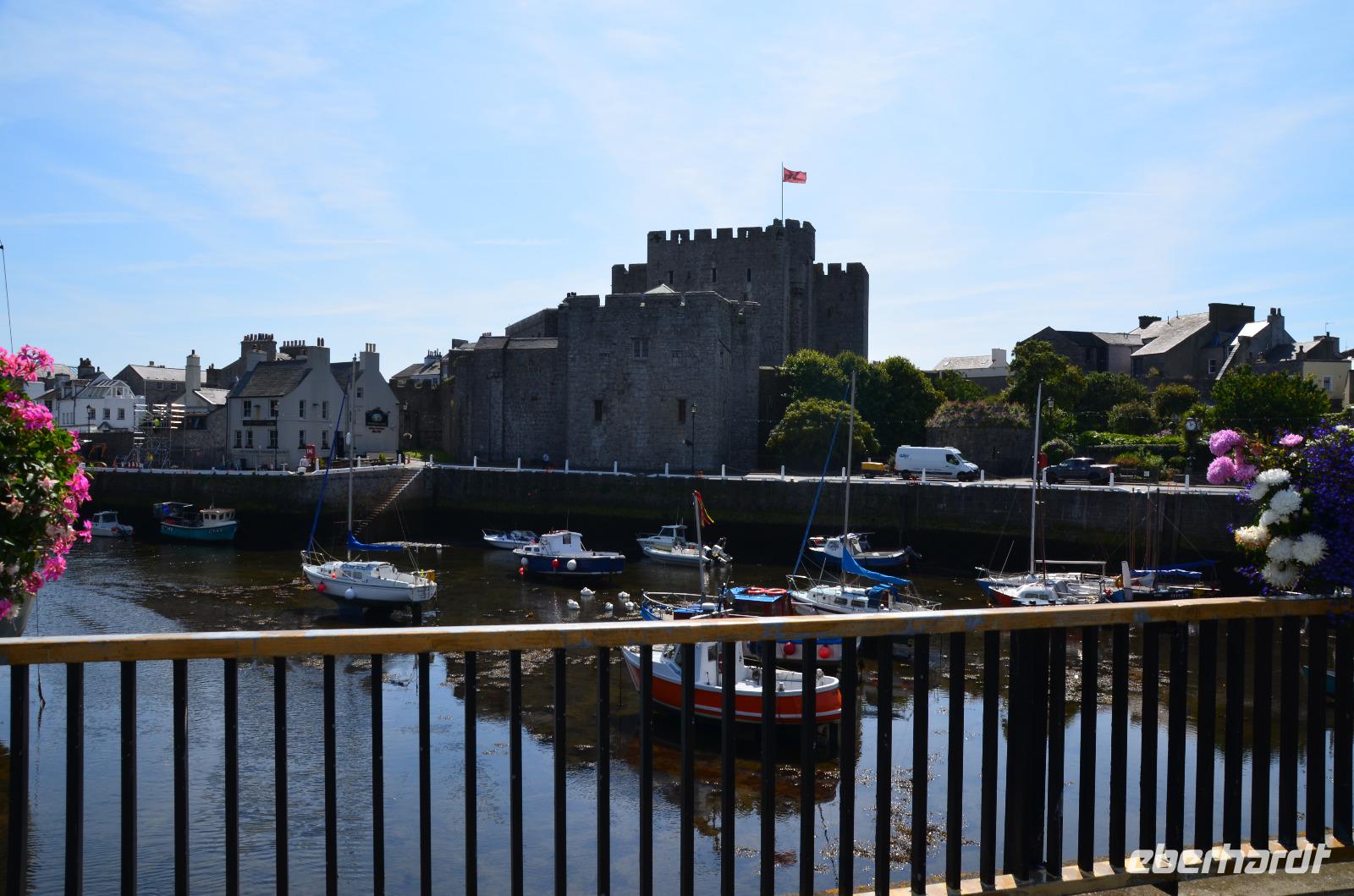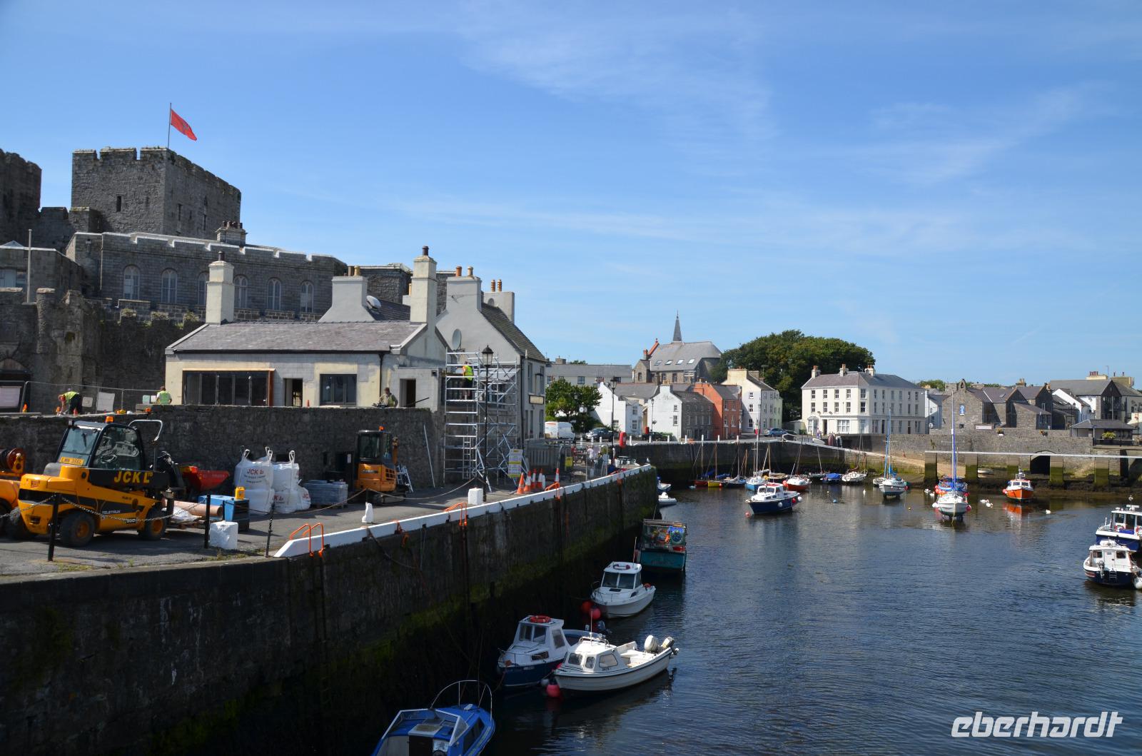 Danach geht es nach Castletown weiter. Ein kleiner Stadtrundgang führt uns vom Market Square, zum Tingvolt House und zum Hafen. Nun besichtigen wir Castle Rushen und Fiona erklärt uns neue Teile der Inselgeschichte. Dann fahren wir bis Ballasalla weiter, wo die Ruinen der alten Rushen Abbey unser nächstes Ziel sind.