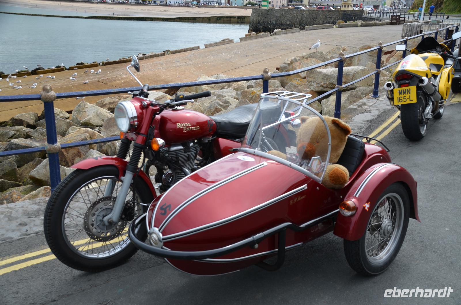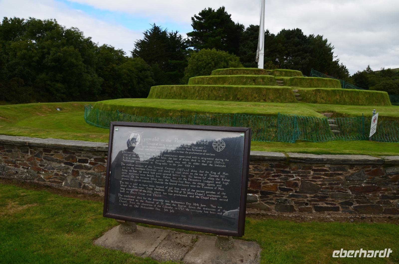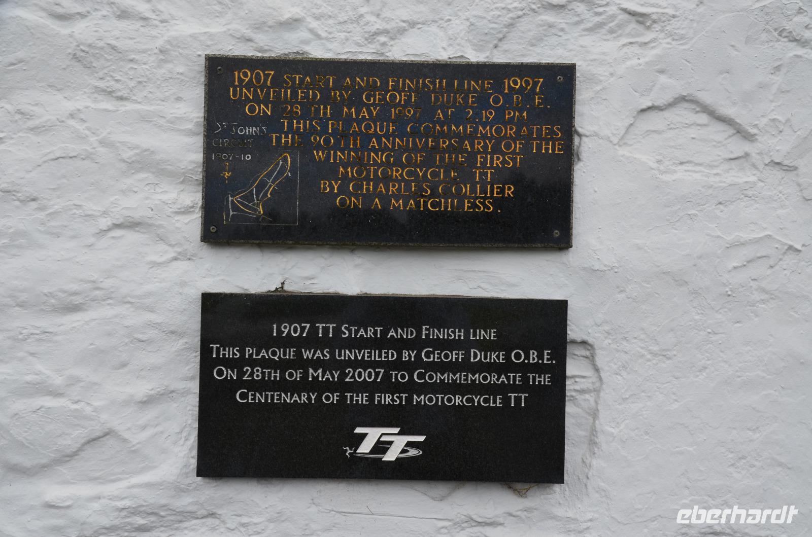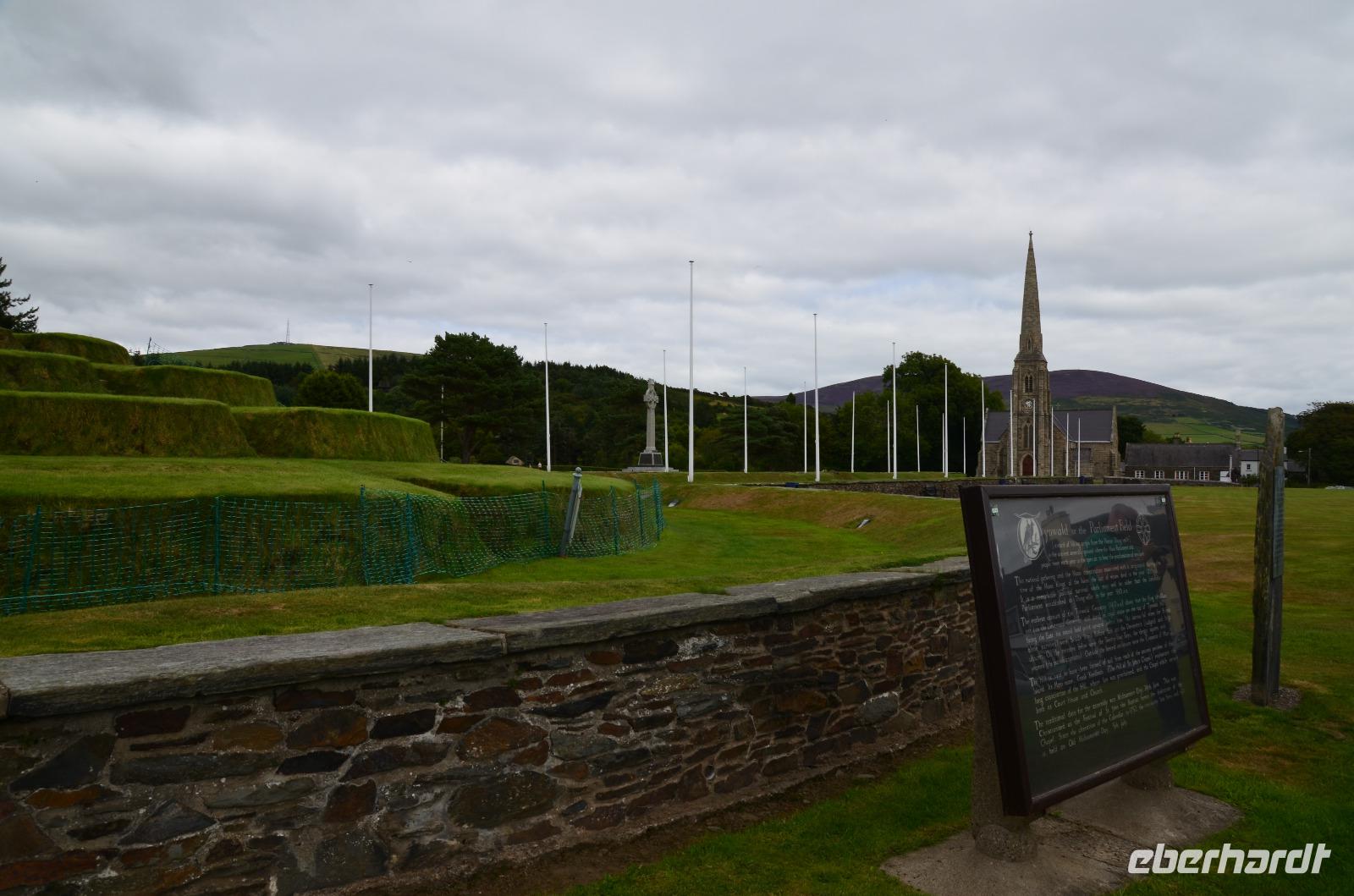 Die Weiterfahrt führt uns bis Tynwald, wo wir einen Fotostopp und die Besichtigung des historischen Versammlungsplatzes erleben. Am nahen Straßenpub finden wir auch eine Erinnerungstafel für die alte Startlinie des Racekurses, denn schon lange ist die Insel Man führ ihre Motorradrennen berühmt.