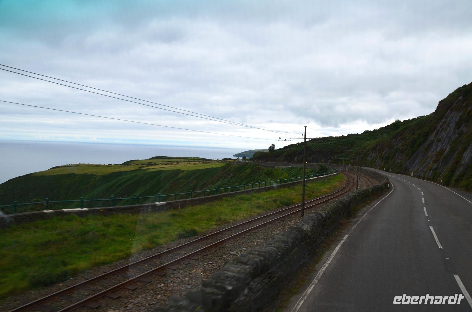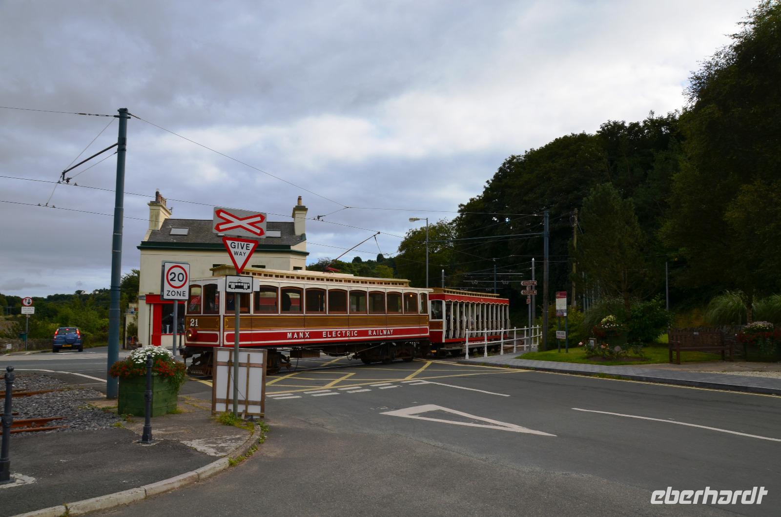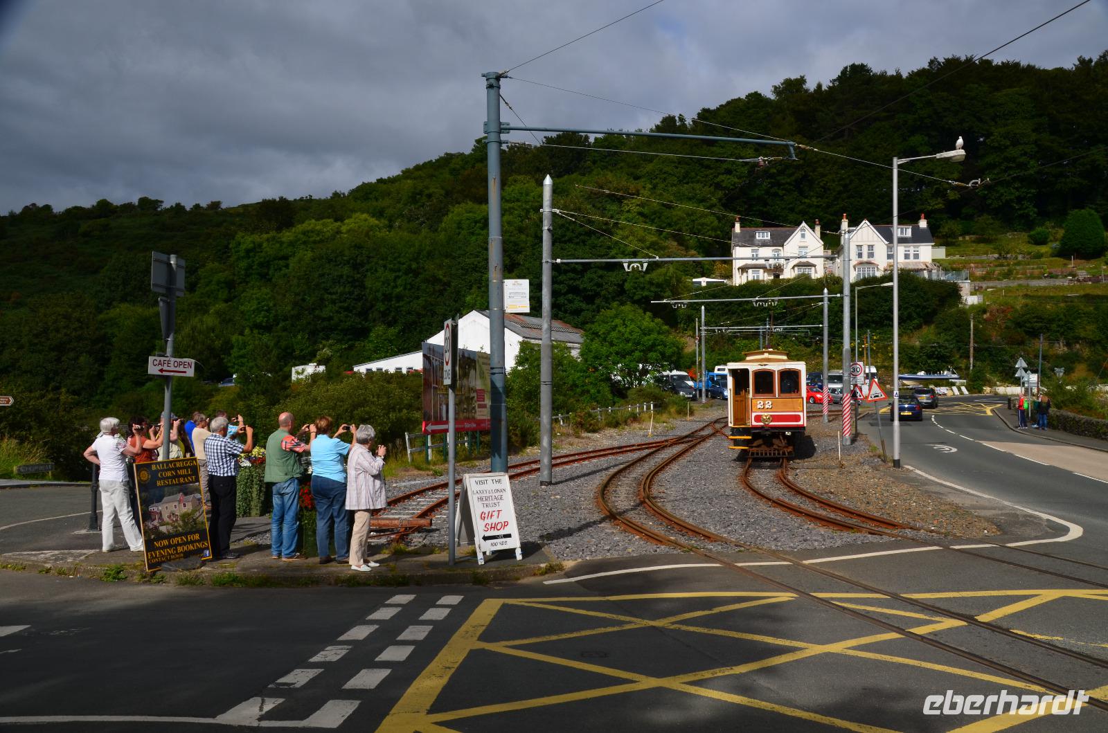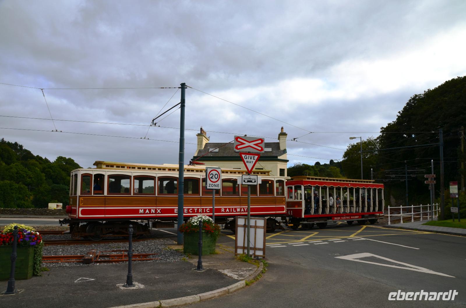 Natürlich fotografieren wir auch die vorbeifahrenden Bahnen der Snaefell Mountain Railway und der Manx Electric Railway.