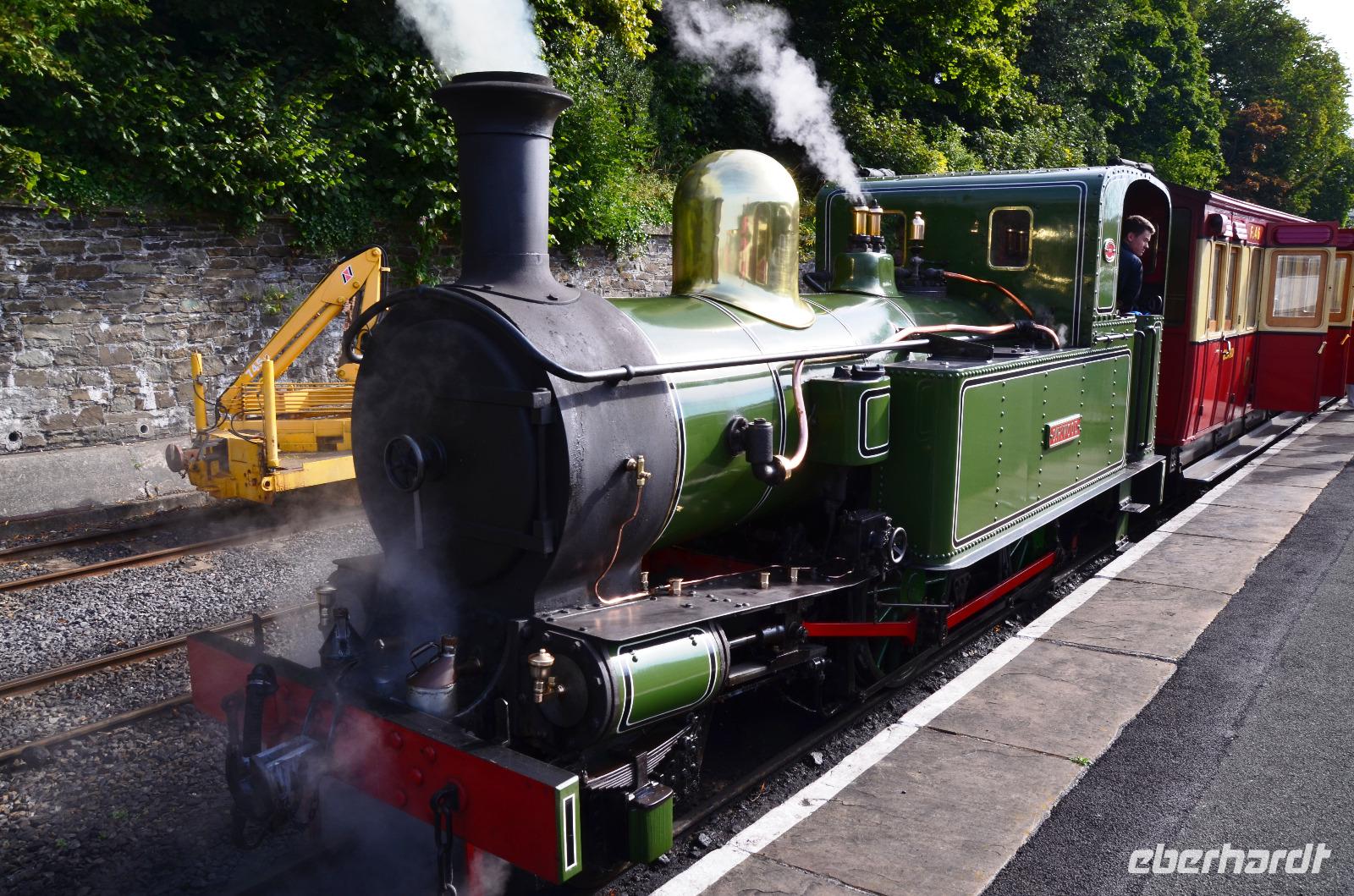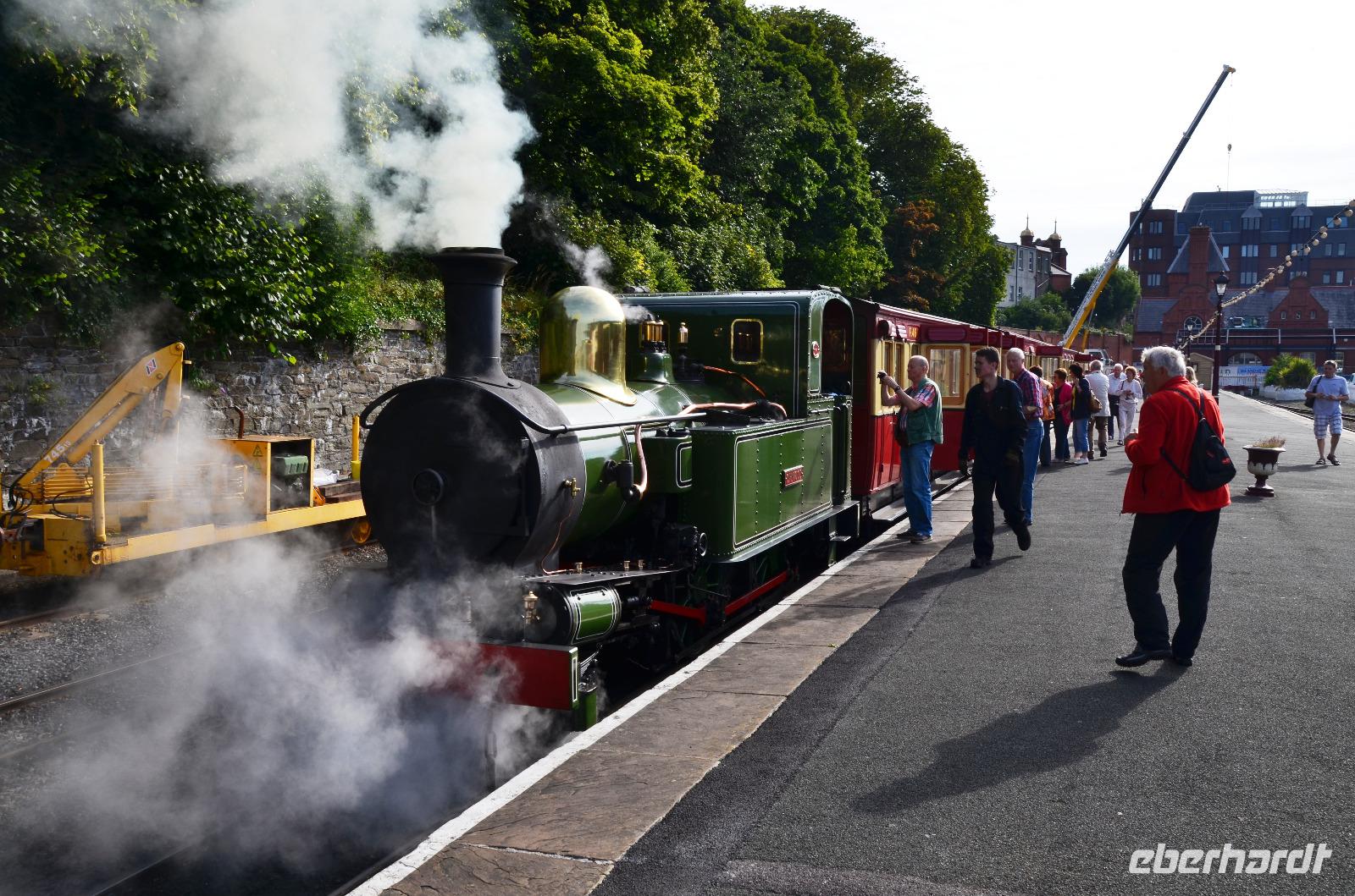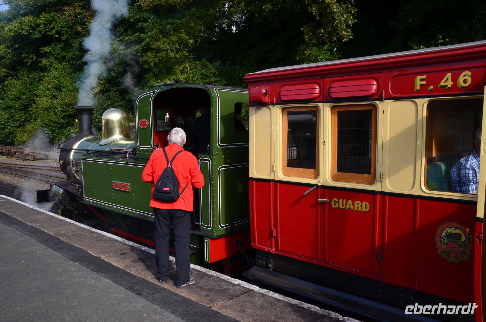 09.50 Uhr ist Abfahrt der Isle of Man Steam Railway. Eine Stunde geht die Fahrt durch die schöne Insellandschaft bis Port Erin.