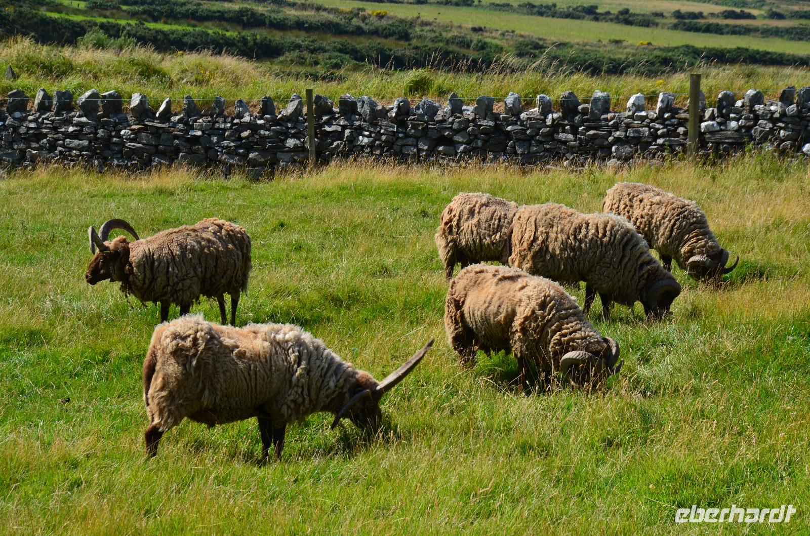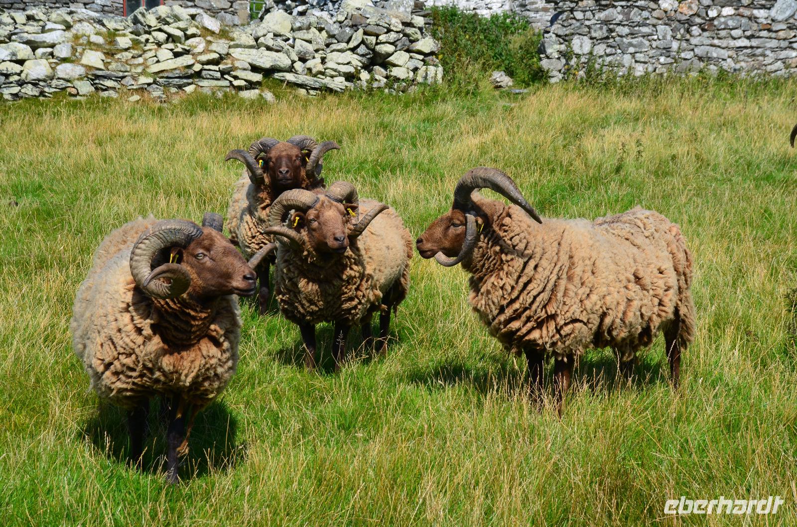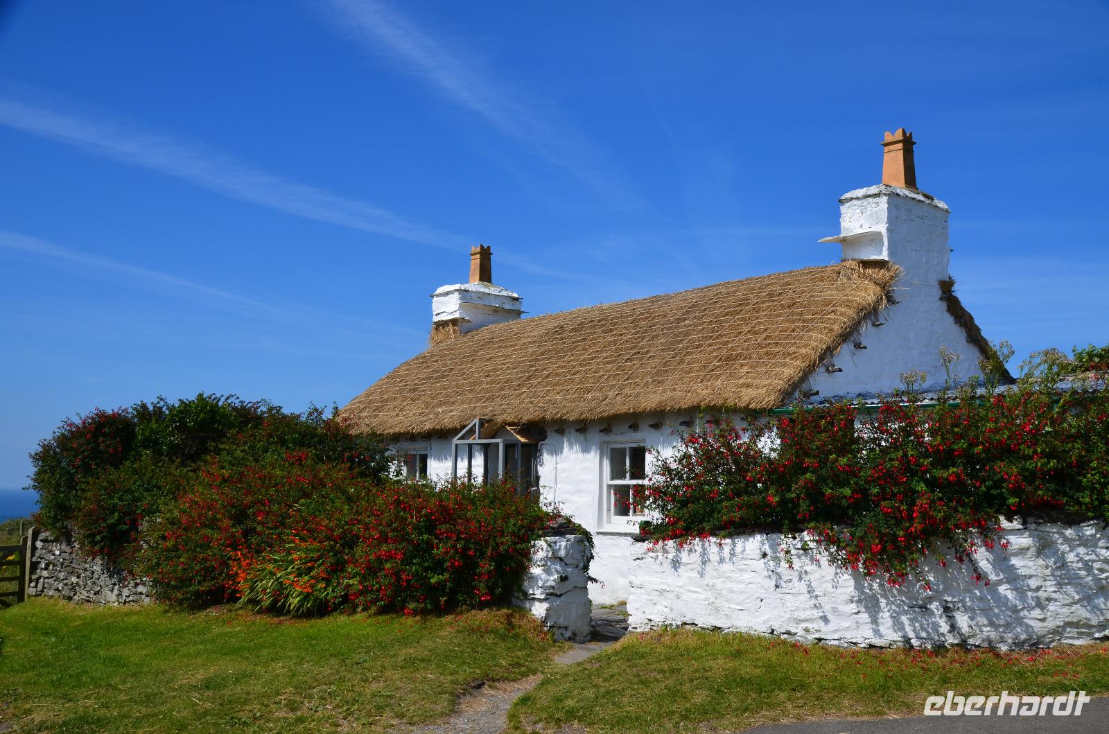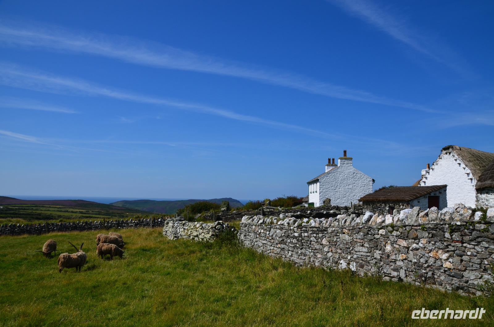 Anschließend, im Museumsdorf Cregneash, spazieren wir durch die alten Häuser und sehen Manx-Katzen und Manx Loaghtan Schafe.