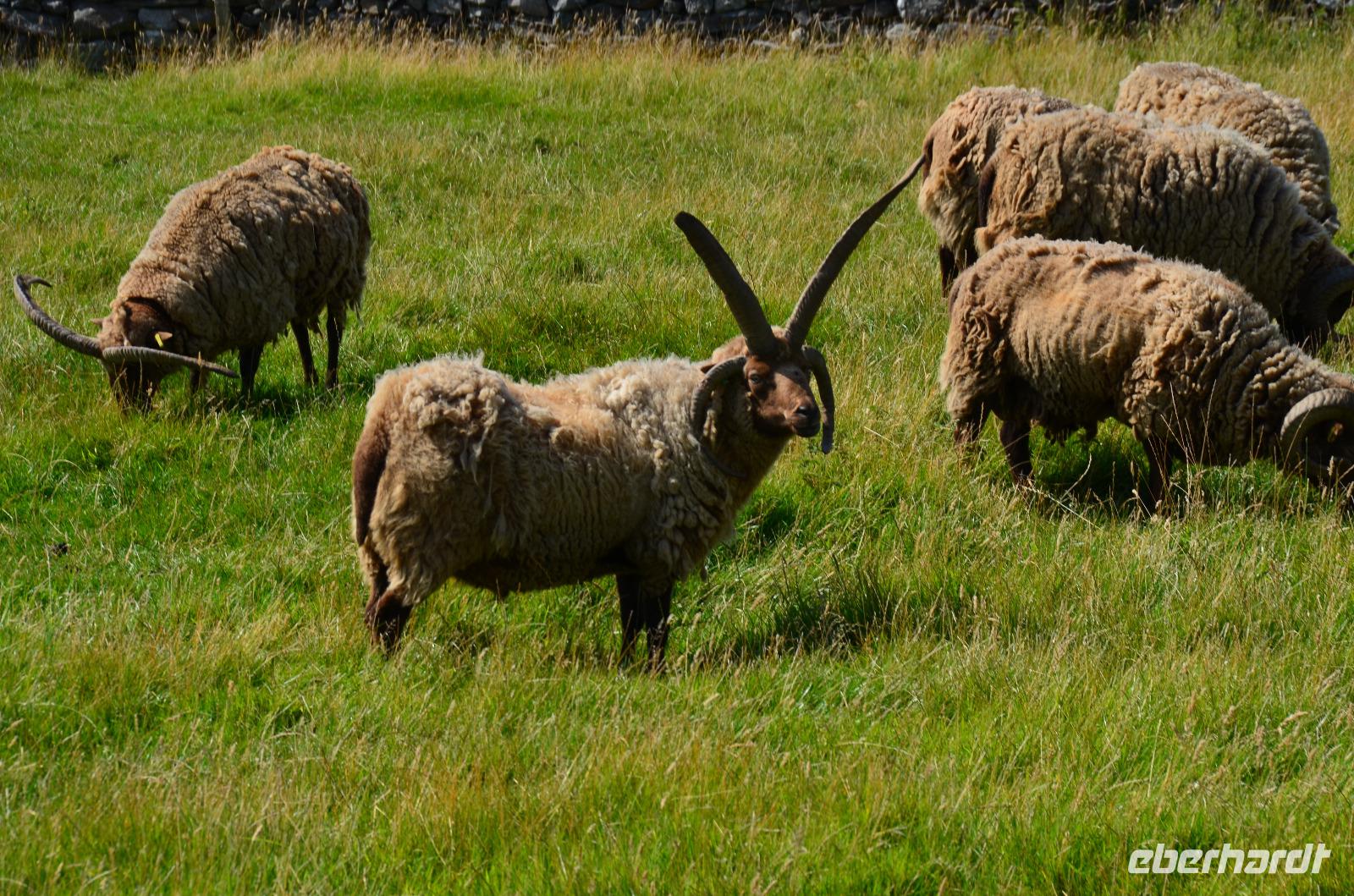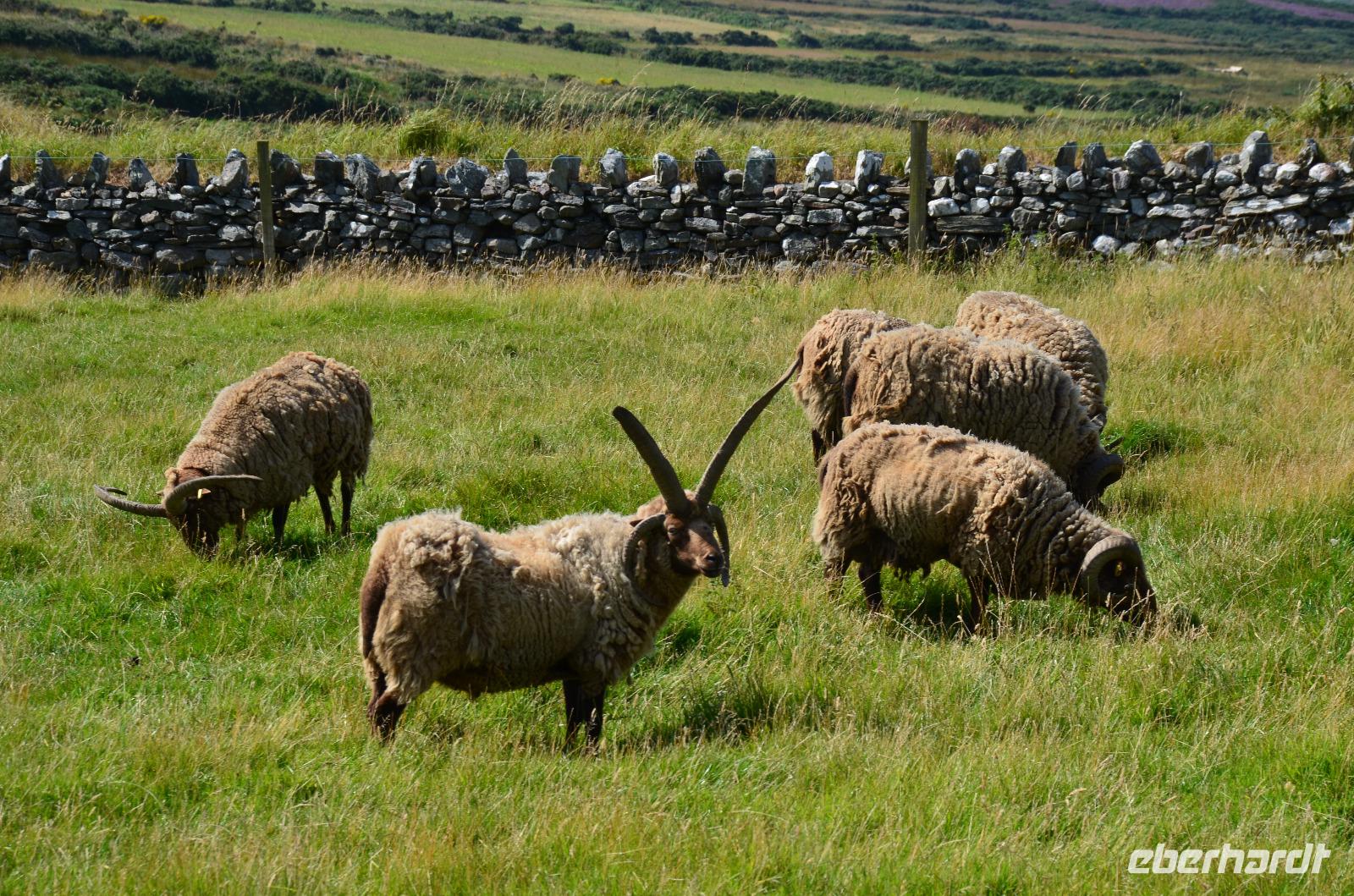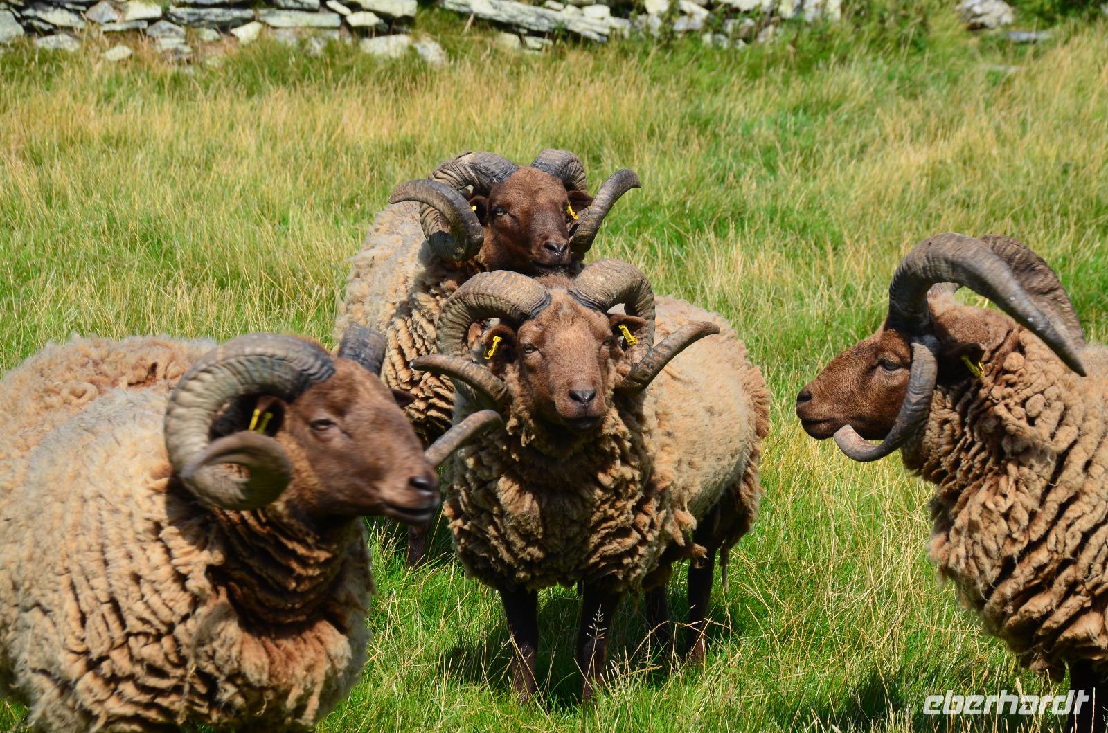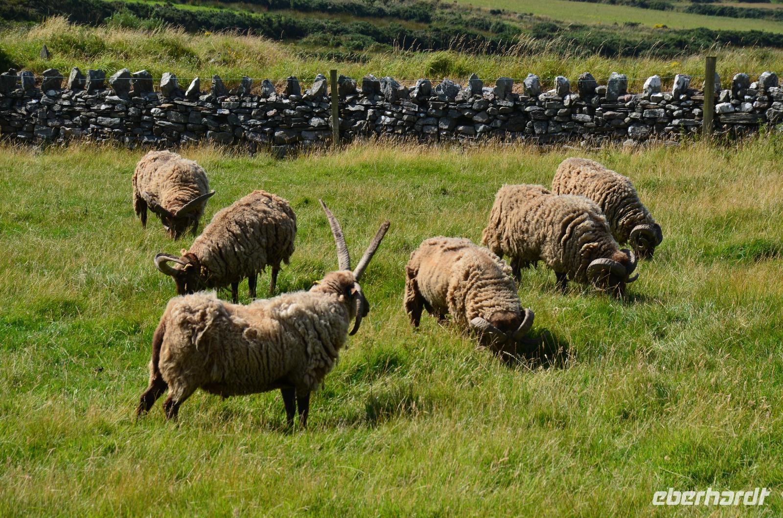 Anschließend, im Museumsdorf Cregneash, spazieren wir durch die alten Häuser und sehen Manx-Katzen und Manx Loaghtan Schafe.