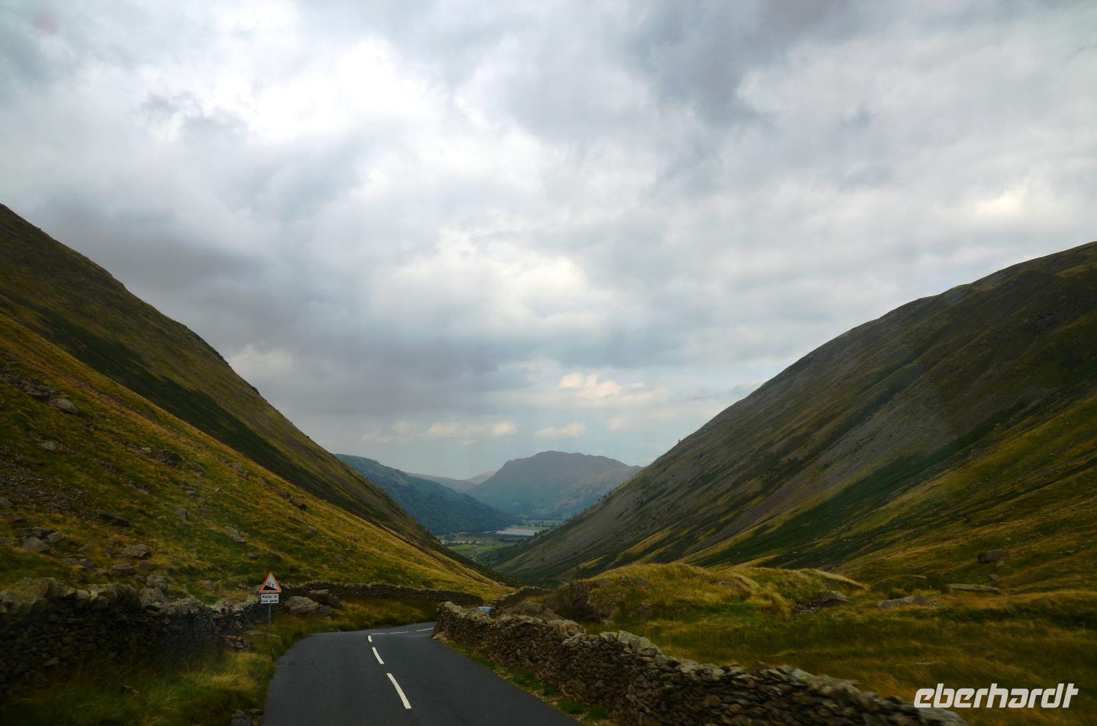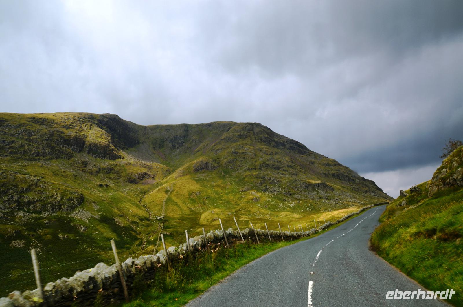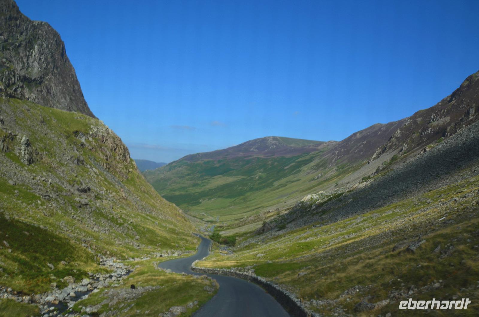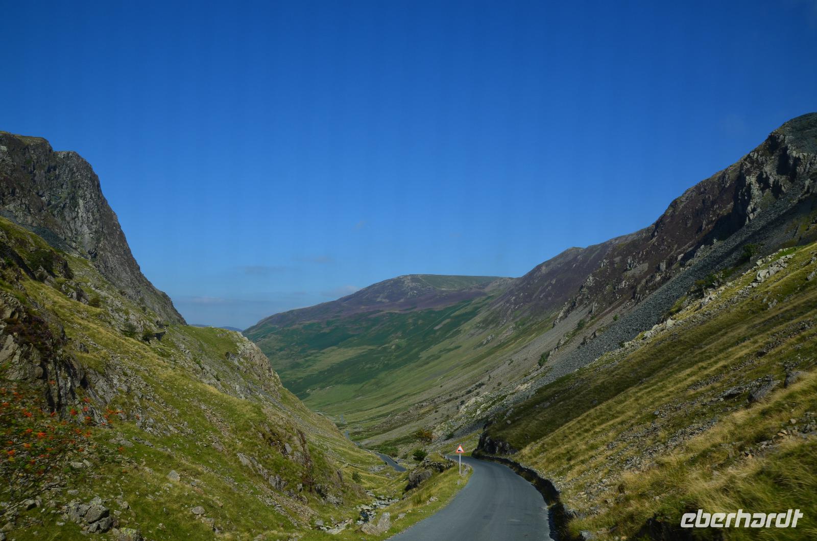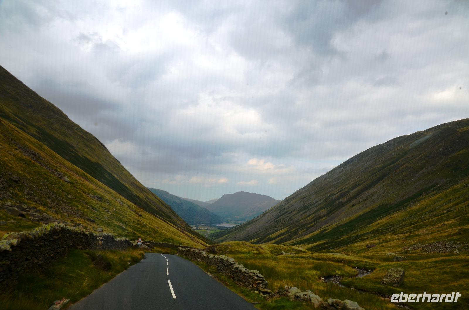 Heute unternehmen wir zuerst eine Seenrundfahrt im Borrowdale, jedoch erst am Hornister Pass können wir auf der engen Straße einen ausgiebigen Fotostopp machen und erkunden das alte Minengelände auf dem 356 m hohen Gebirgspass.