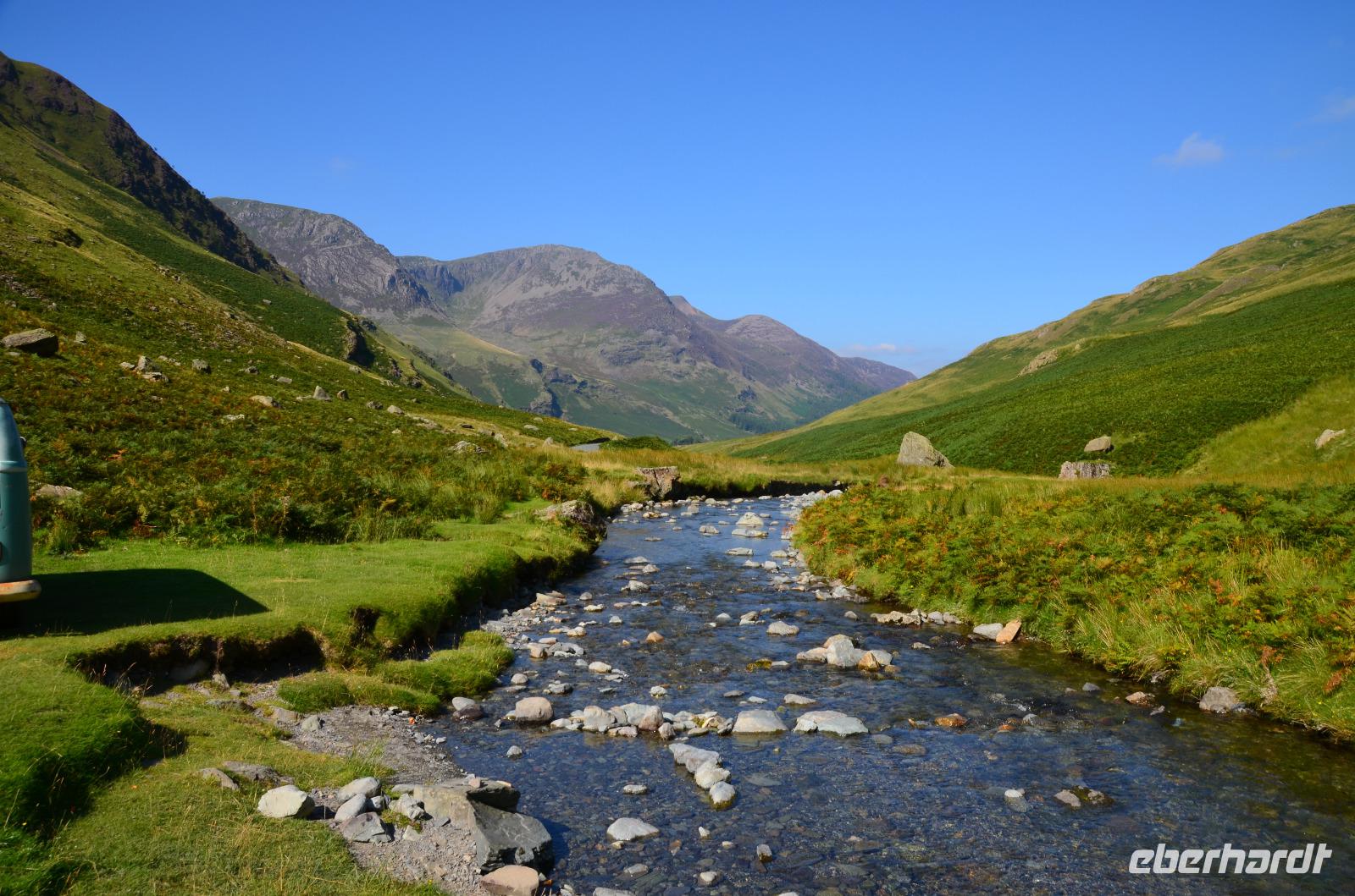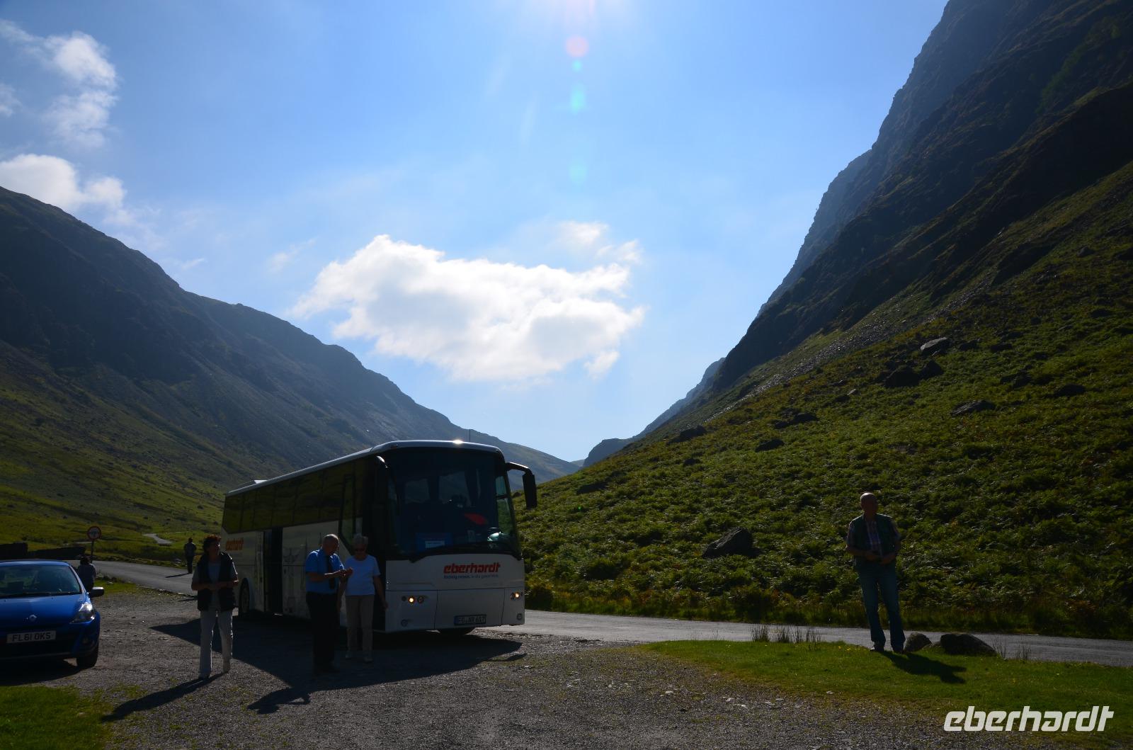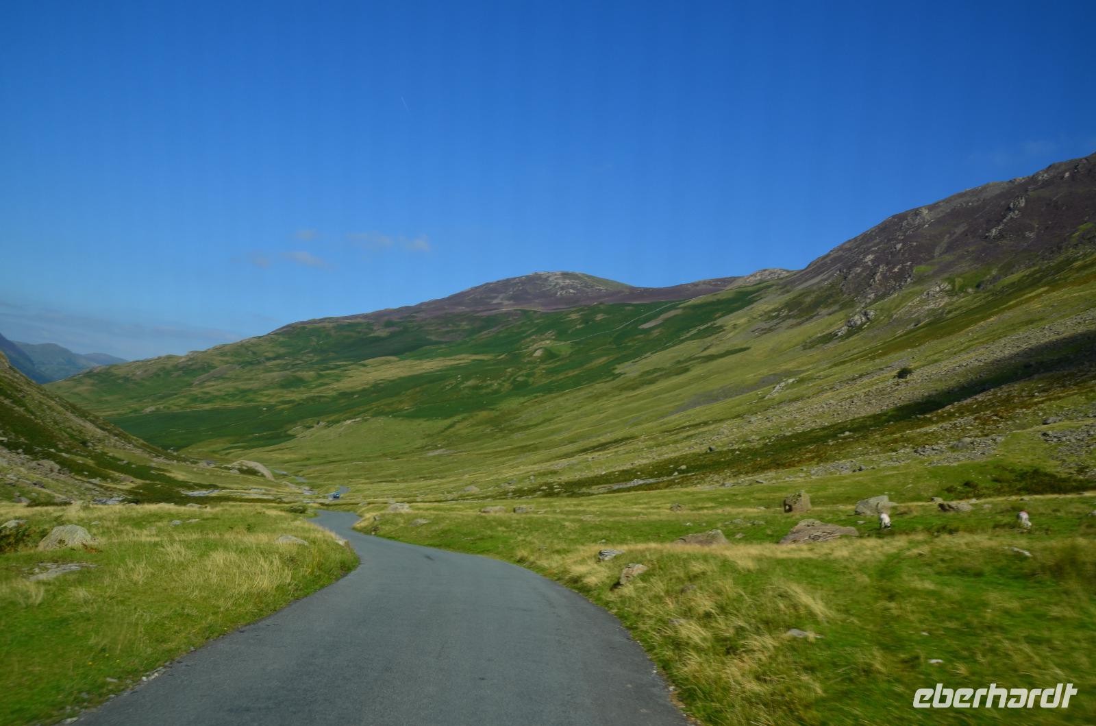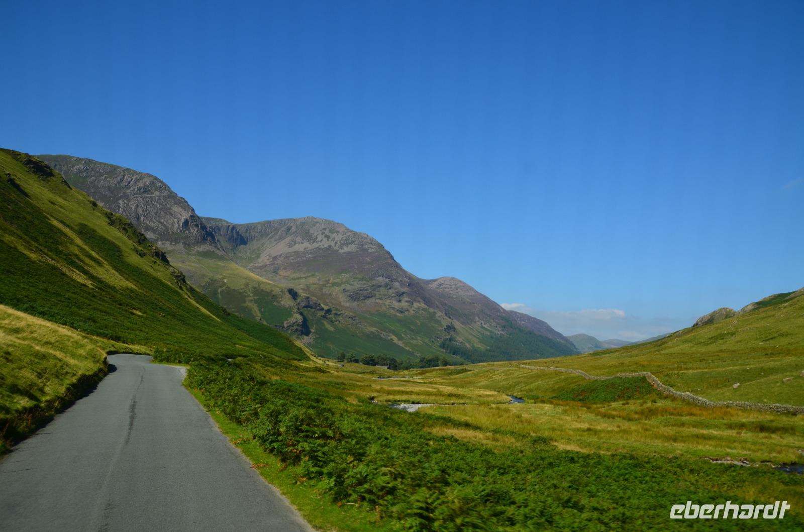Heute unternehmen wir zuerst eine Seenrundfahrt im Borrowdale, jedoch erst am Hornister Pass können wir auf der engen Straße einen ausgiebigen Fotostopp machen und erkunden das alte Minengelände auf dem 356 m hohen Gebirgspass.