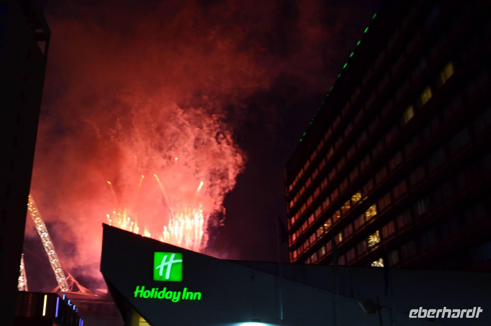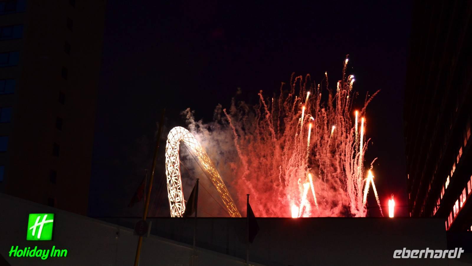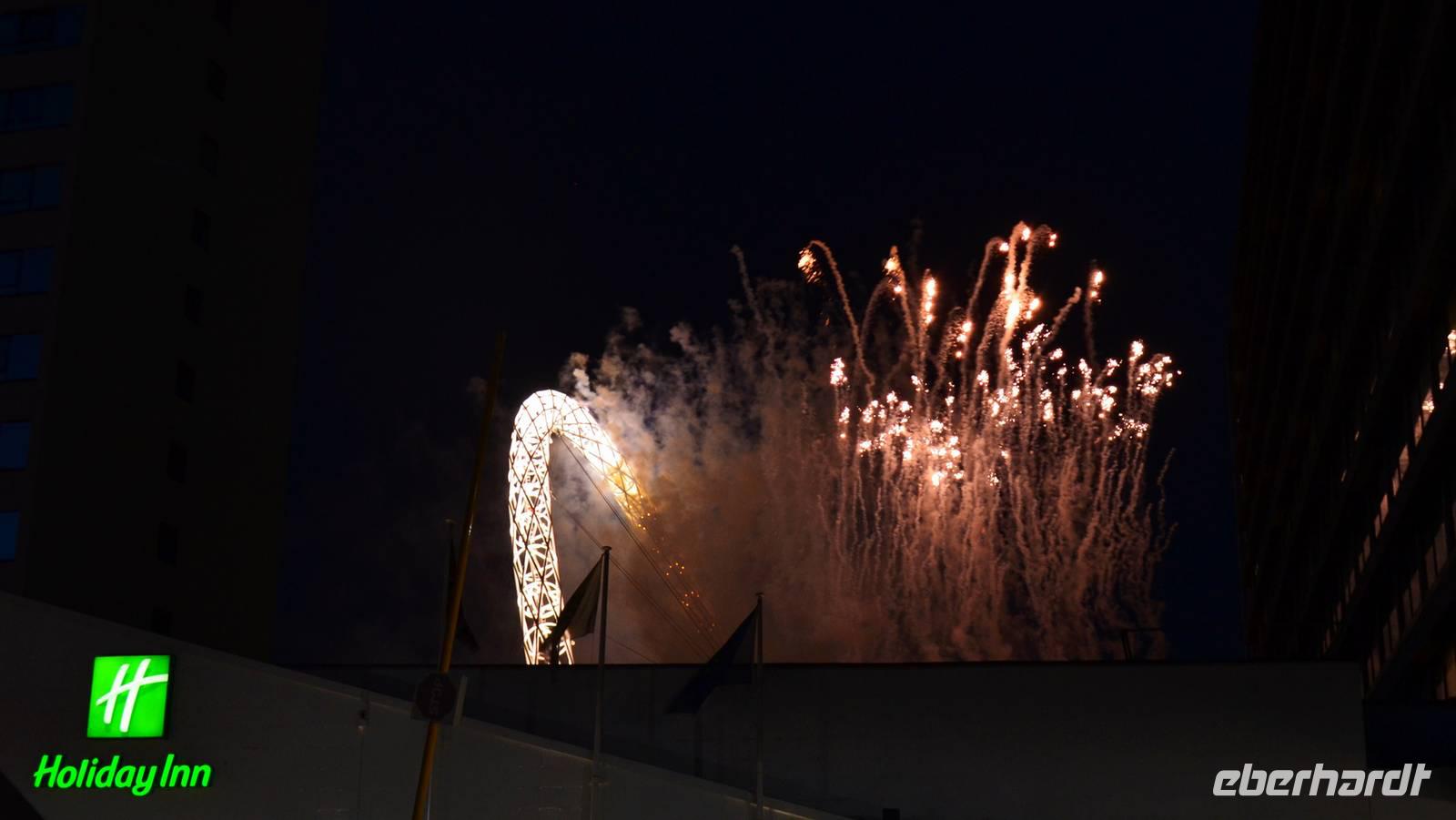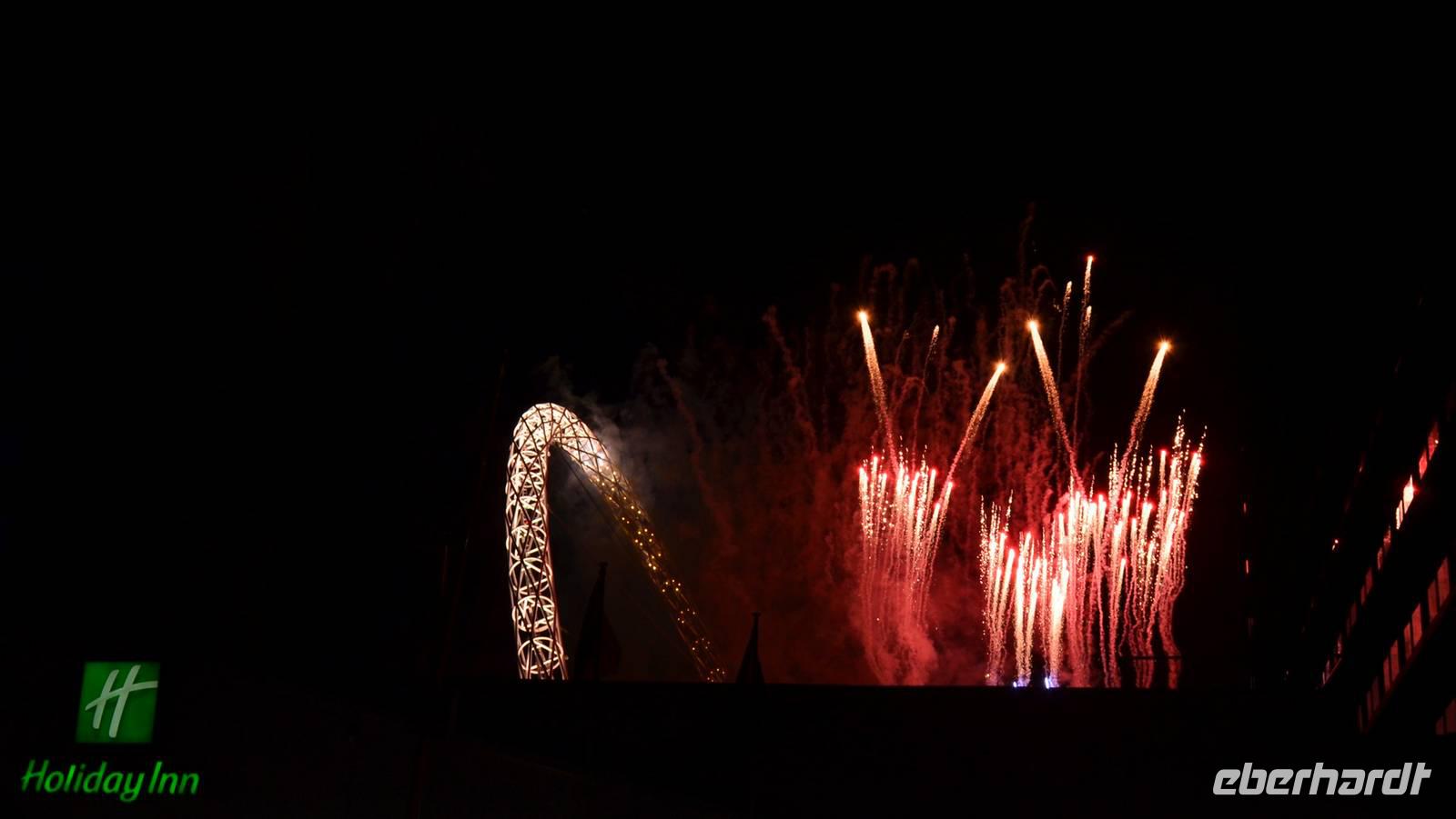 Auf der abendlichen Heimfahrt erleben wir das Konzertfeuerwerk in Wembley.