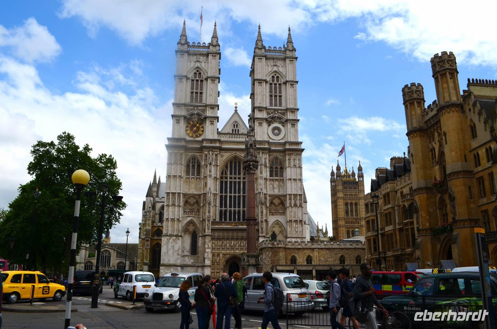 Am Morgen fahren wir vom Hotel zuerst zu Madame Tussaud, wo unsere Stadtführerin Linda bei uns einsteigt und damit die Stadtrundfahrt durch London beginnt. Mit Stopps an der St. Pauls Cathedral - Fußweg ins nahe Einkaufscenter und Blick von der Dachterrasse hinüber zu Christopher Wrens Meisterwerk - nahe dem Londoner Rathaus, wo wir einen kleinen Spaziergang zum Themseufer machen, um den schönen Blick auf den Tower, das Bankenviertel und die Tower Bridge zu erleben. Auch alle wichtigen anderen Sehenswürdigkeiten zeigt uns Linda auf ihrer Tour, die am Mittag an der Westminter Abbey endet. Von hier gehen wir zu Fuß noch eine Runde durch die Stadt. Ich führe die Gäste von der Westminster Cathedral zum House of Parliament, zur Downing Street und zur Horse Guards Parade, weiter zum St. James Park und zum Buckingham Palace. Nach kleiner Fotoerkundung geht es dann über The Mall zum Trafalgar Square, wo einige Gäste die Nationalgalerie besuchen oder den Proben zum Händelkonzert in der Kirche St. Martin in the Field lauschen. Am späten Nachmittag erreichen wir den lebendigen Covent Garden und gehen hier auf individuelle Erkundung. Nahe „Cleopatras Needle", dem Obelisk am Themseufer zwischen Westminster Pier und Temple, parken wir unseren Bus, dann treffen wir unsere Gäste vor dem Transportmuseum wieder und besuchen den Pub „The Prince of Wales" zum Abendessen.