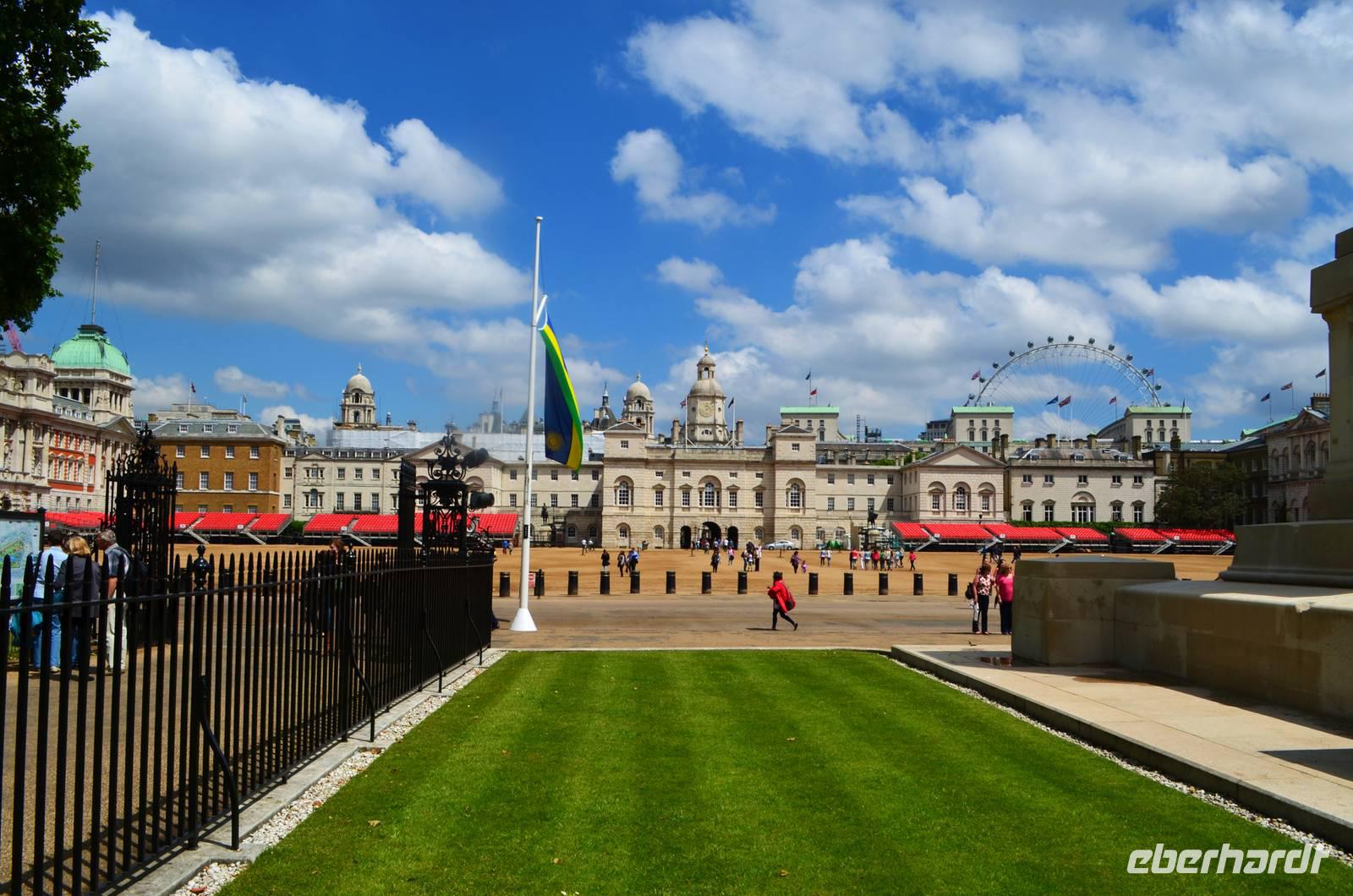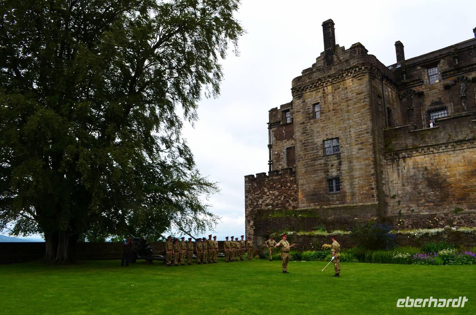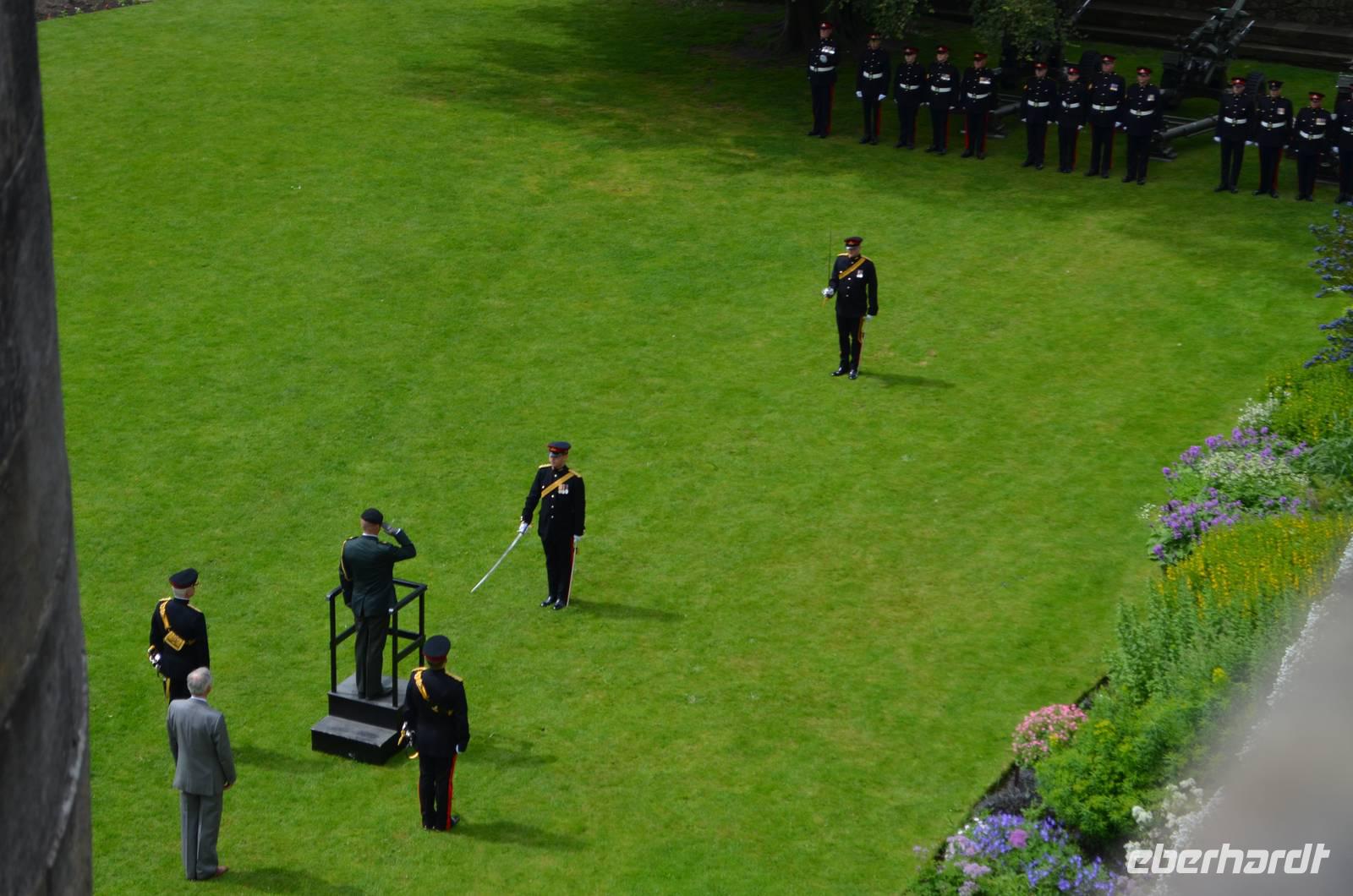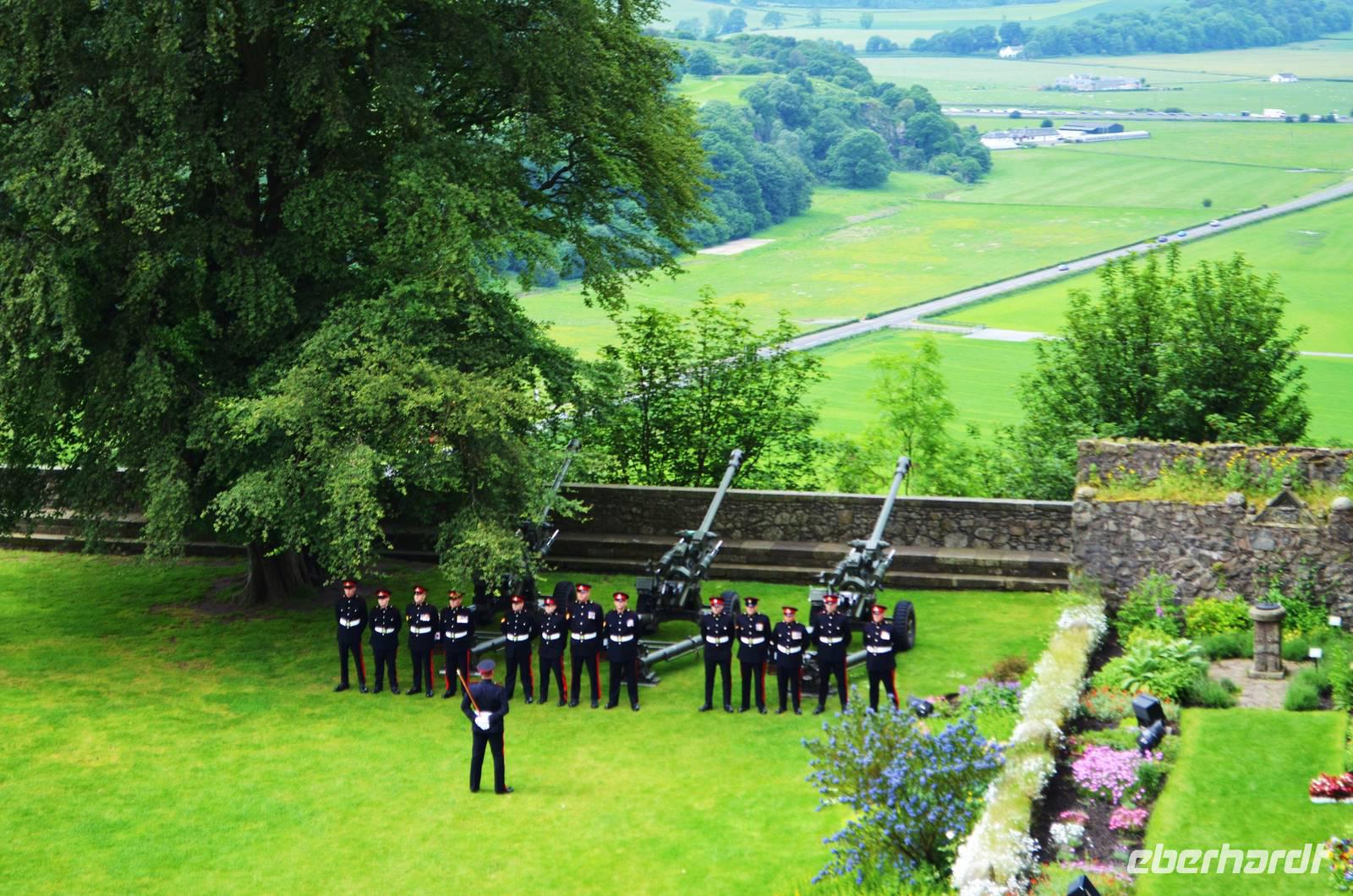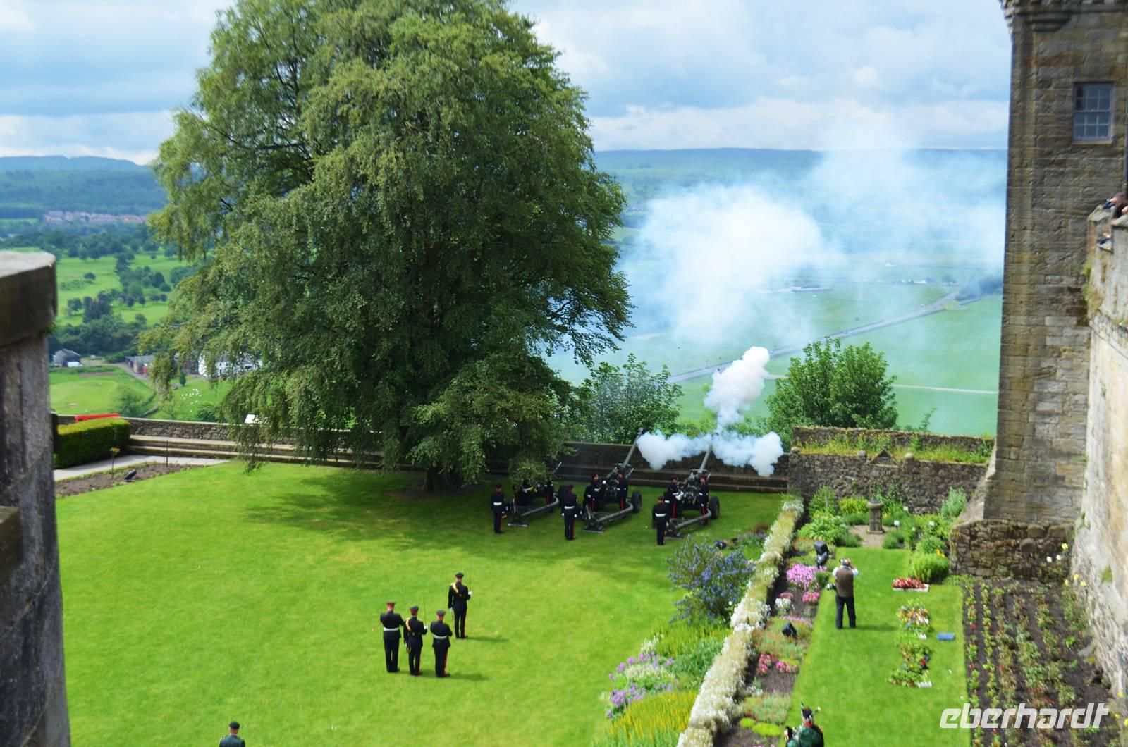 Den Abschluss unseres Besuchs auf der Burg bildet ein Ehrensalut von 21 Schuss aus drei Kanonen der Army anlässlich des Tronjubileums der Queen.