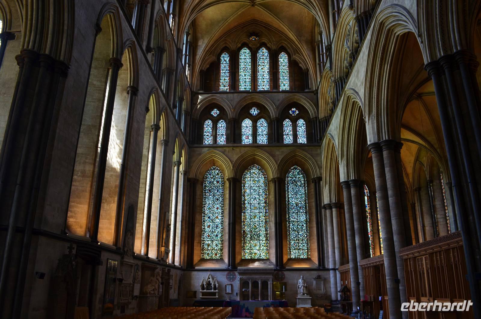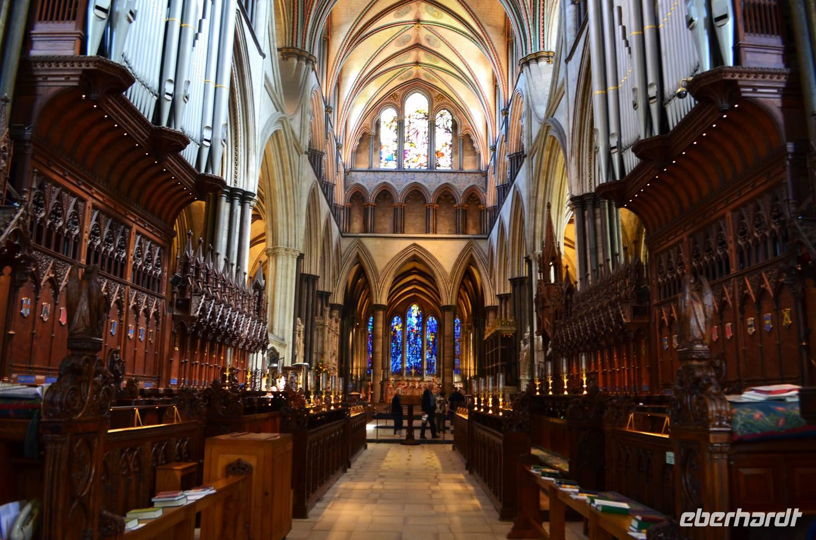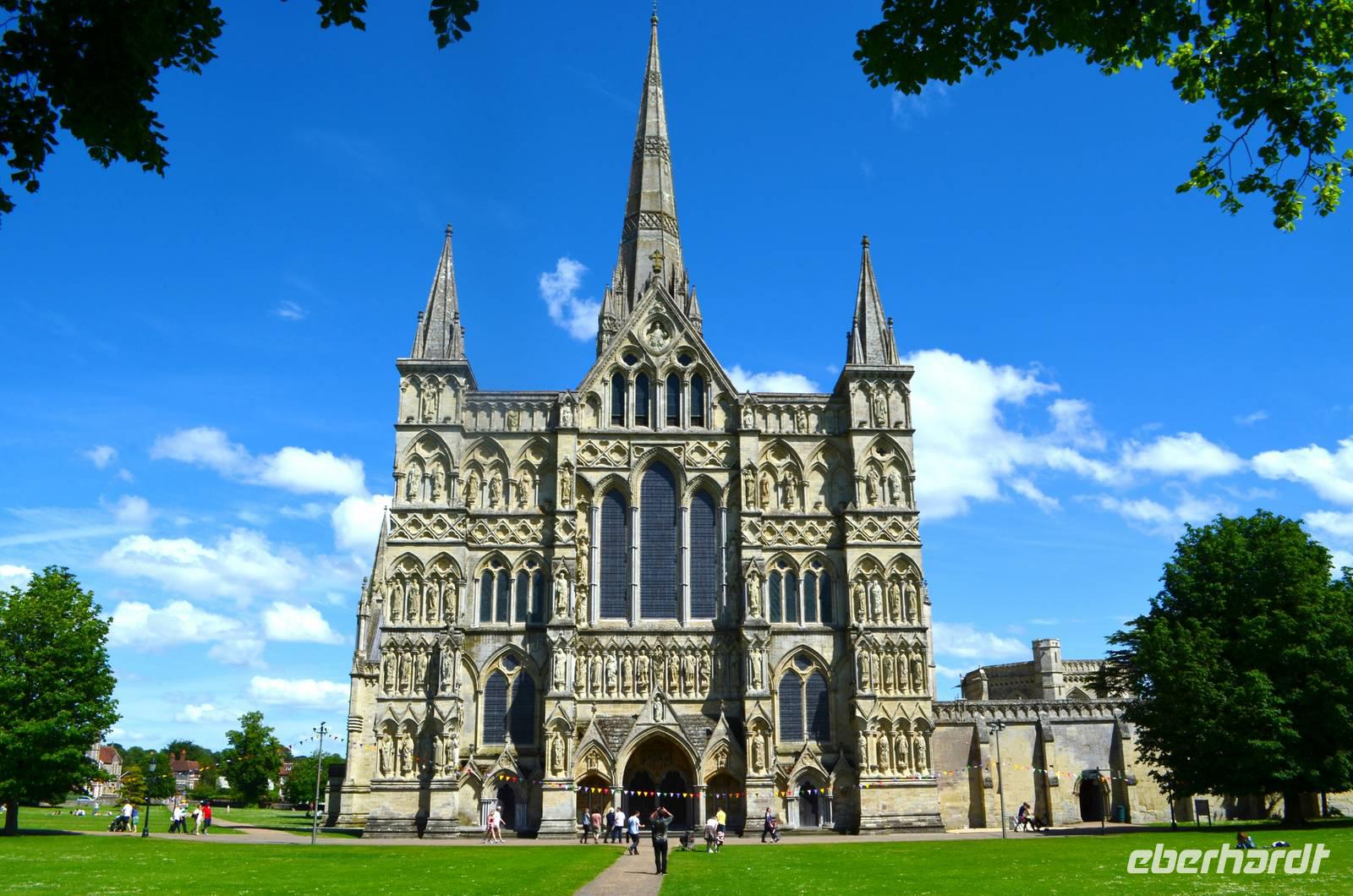 Vorbei an Old Sarum, mit den Spuren der alten Befestigungsanlage, fahren wir hinunter ans Ufer des River Avon - in die Stadt Salisbury. Schon von weitem sehen wir den hohen Kirchturm der Kathedrale aufragen, der mit seinen 123 m der höchste von England ist. Ein gemeinsamer Spaziergang führt uns ins Stadtzentrum, zum Market Cross, weiter an historischen Häusern vorbei zum St. Ann's Gate und von hier hinein in die größte Domfreiheit des Landes und hier zur Cathedral. Besonders eindrucksvoll ist die Westfassade mit ihrem Figurenschmuck. Wir besichtigen individuell das Innere des imposanten Bauwerkes der englischen Frühgotik und lassen uns von der Größe und Schönheit in den Bann ziehen. Wunderschön die Harmonie des Early English Stile. Am Nachmittag geht es durch das goldene Tor zurück zum Bus und mit ihm starten wir zu unserer Weiterfahrt zum abendlichen Ziel Exeter.