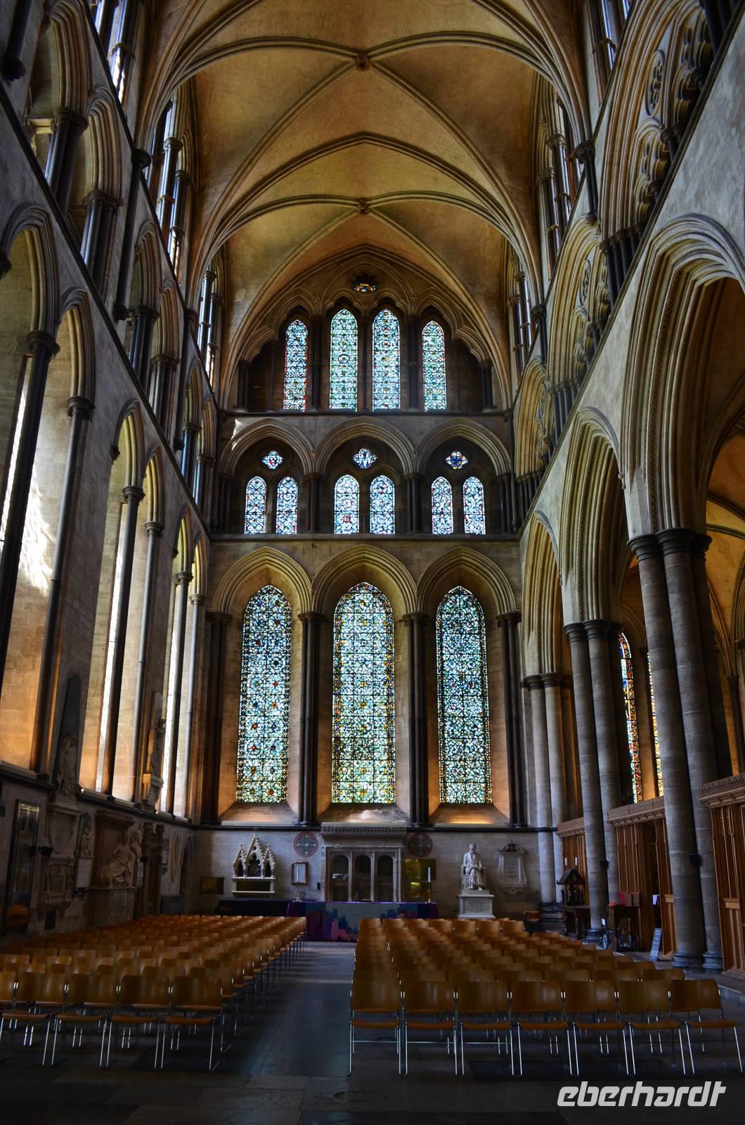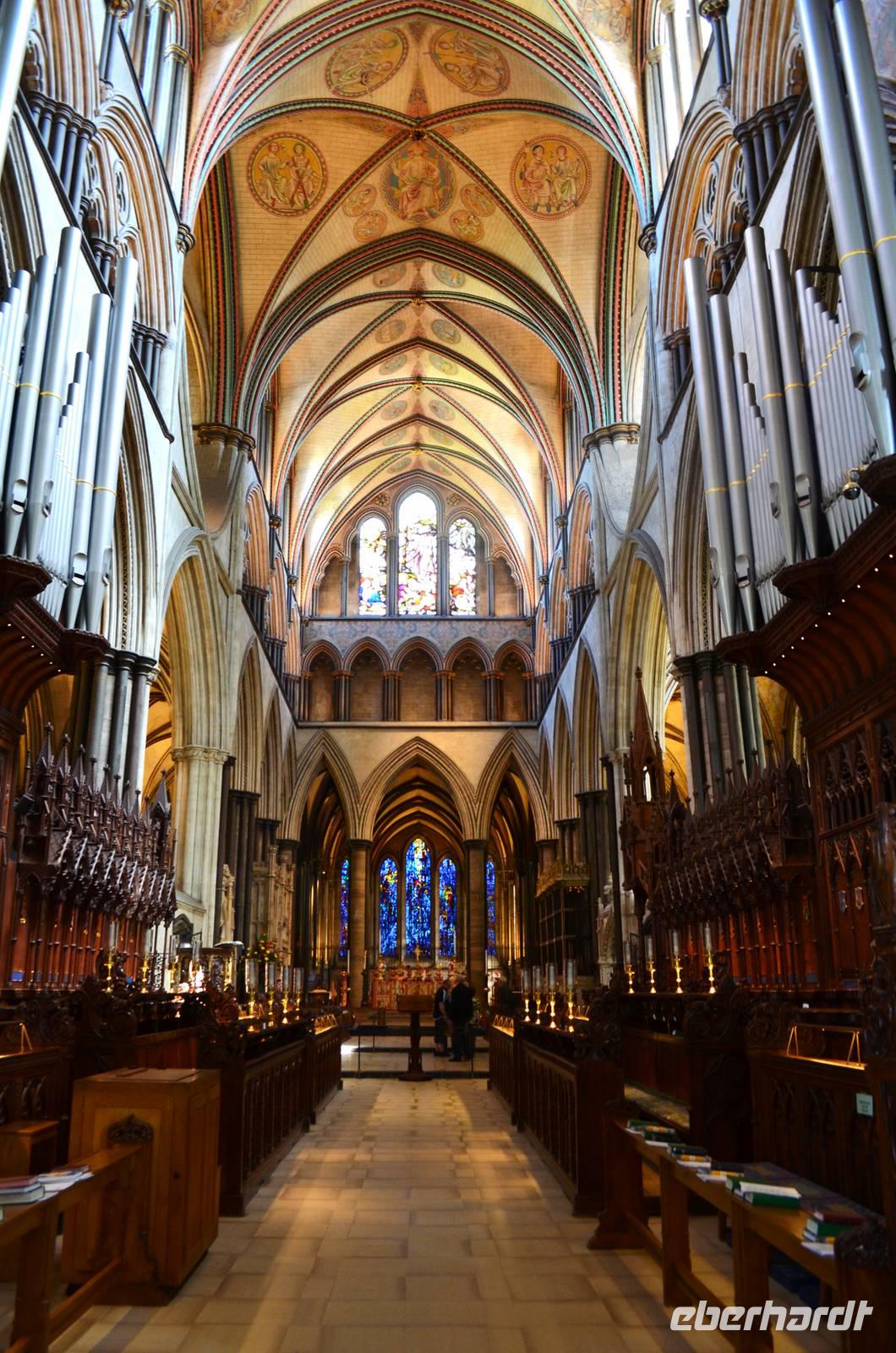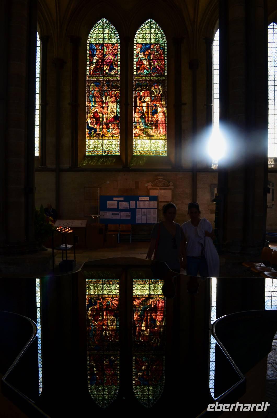Vorbei an Old Sarum, mit den Spuren der alten Befestigungsanlage, fahren wir hinunter ans Ufer des River Avon - in die Stadt Salisbury. Schon von weitem sehen wir den hohen Kirchturm der Kathedrale aufragen, der mit seinen 123 m der höchste von England ist. Ein gemeinsamer Spaziergang führt uns ins Stadtzentrum, zum Market Cross, weiter an historischen Häusern vorbei zum St. Ann's Gate und von hier hinein in die größte Domfreiheit des Landes und hier zur Cathedral. Besonders eindrucksvoll ist die Westfassade mit ihrem Figurenschmuck. Wir besichtigen individuell das Innere des imposanten Bauwerkes der englischen Frühgotik und lassen uns von der Größe und Schönheit in den Bann ziehen. Wunderschön die Harmonie des Early English Stile. Am Nachmittag geht es durch das goldene Tor zurück zum Bus und mit ihm starten wir zu unserer Weiterfahrt zum abendlichen Ziel Exeter.
