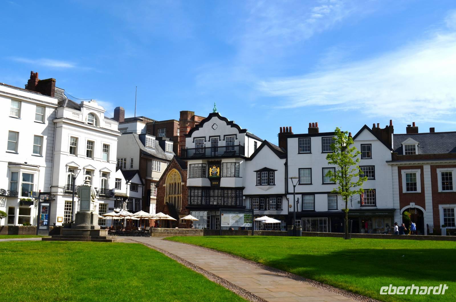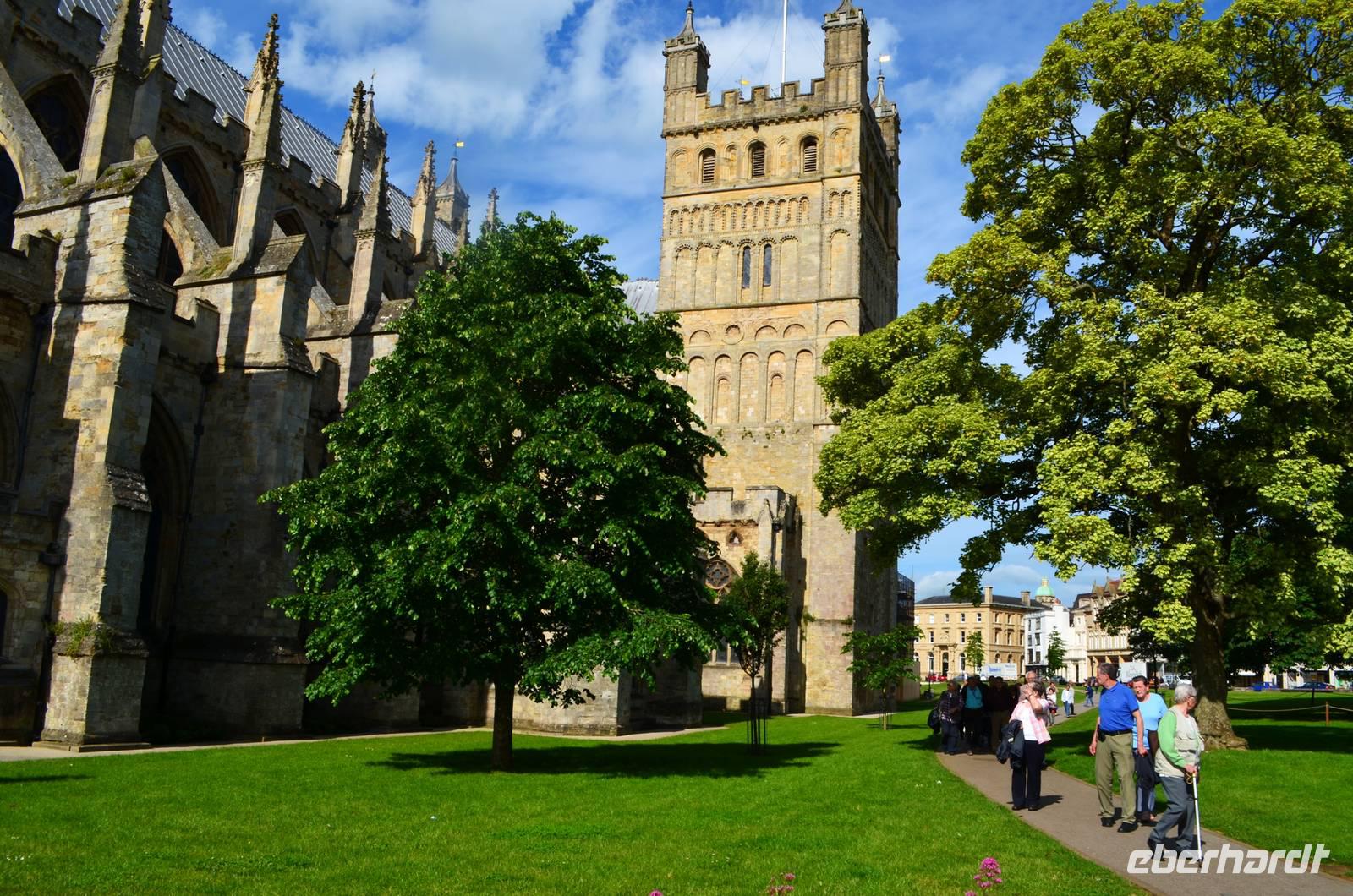 Nach deftigem englischem Frühstück laufen wir ins Stadtzentrum von Exeter. Hier unternehmen wir einen kleinen Spaziergang um ein paar Sehenswürdigkeiten dieser historischen Stadt aufzusuchen: Die alte Schifferkneipe Ship´s Inn, in der schon Sir Francis Drake verkehrte, die Klosterruine, das alte Rathaus, die Kapitelhäuser, die Kathedrale mit ihrer schönen und figurenreichen Westfassade, die Stadtmauer und der alte Hafen sind unsere Ziele beim Rundgang.