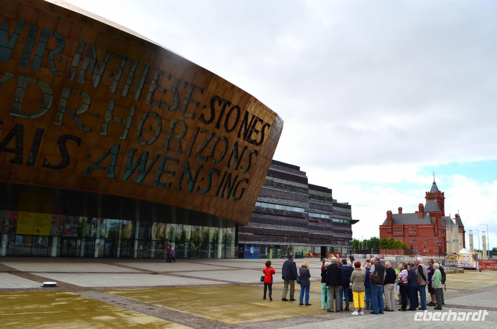 Tony erwartet uns für eine durch ihn geführte Stadtrundfahrt mit anschließendem Stadtrundgang in der walisischen Hauptstadt Cardiff. Er zeigt uns die Neue Hafencity mit dem Konzerthaus, die verschiedenen Wohnviertel, Parks und bei einem kleinen Rundgang sehen wir dann auch noch die Burg, das Museum, das frühere Rathaus und die hübschen Gassen und Ladenpassagen der Fußgängermagistralen. Danach lernen wir den südlichen Teil von Wales kennen und fahren zuerst zum National Botanic Garden of Wales. Der Garten, der 2002 auf dem weitreichenden Gelände eines alten Herrensitzes angelegt wurde, ist wunderschön gestaltet und gibt auch Auskunft zu den in Wales vorkommenden Gesteinsarten, auch zu den berühmten Blausteinen. Attraktion ist natürlich das vom Architekten Norman Forster erbaute Gewächshaus, das sich imposant in einem Hügel verbirgt und diesen mit seinem Glasdach überwölbt.