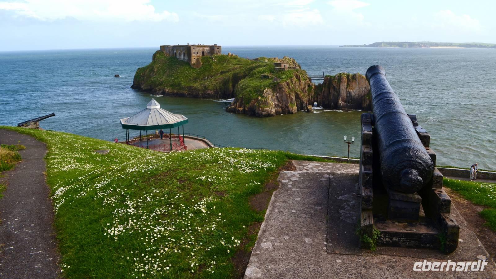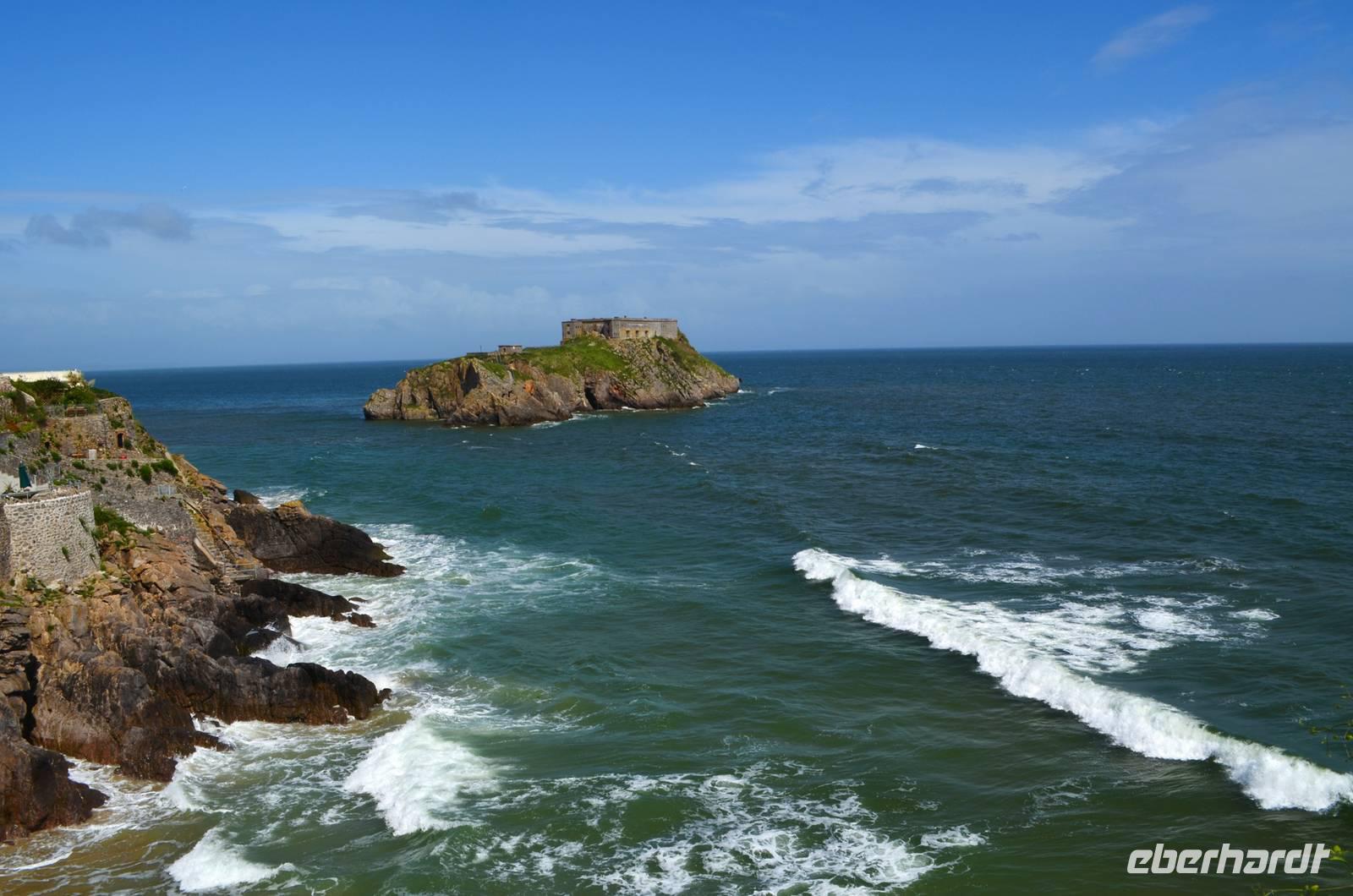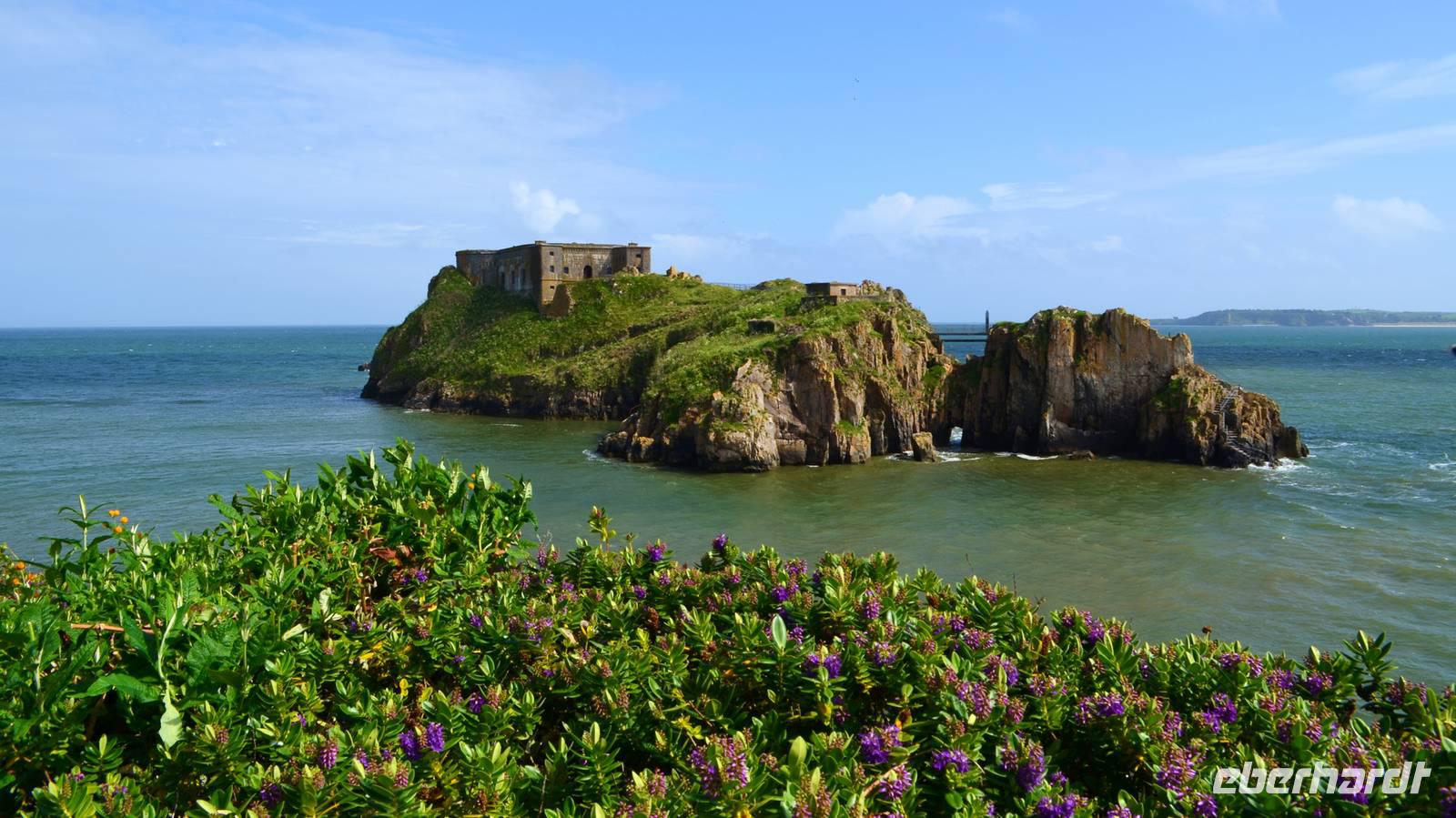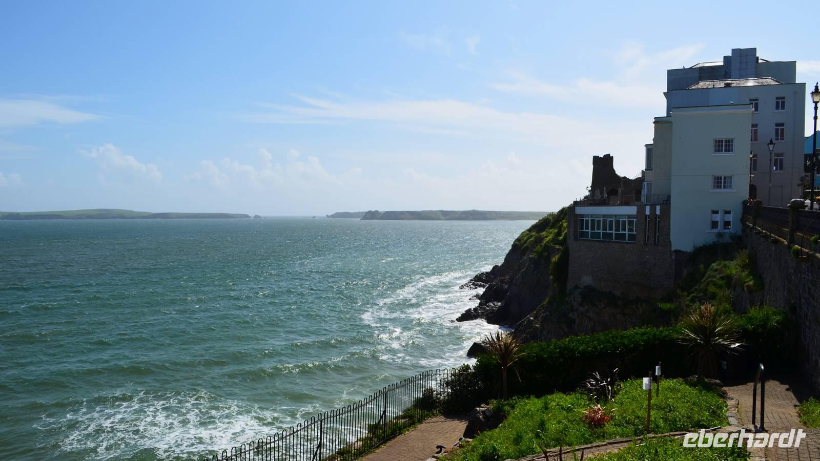Nun lockt es uns aber auch noch an die romantische Küste und so fahren wir nach Tenby, an die walisische Riviera weiter. Tenby, ein hübscher Badeort mit alter Stadtmauer, hübschen belebten Gassen, einer alten Festung auf einem Felsvorsprung, herrlichen Stränden und felsiger Steilküste gefällt uns mit seinen bunten Häusern und lebendigen Gassen sofort. Die Flut lässt kaum Platz für einen Strandspaziergang.