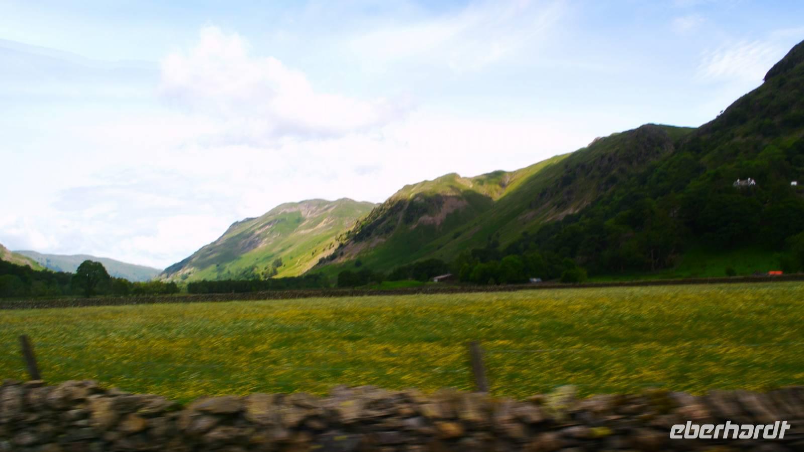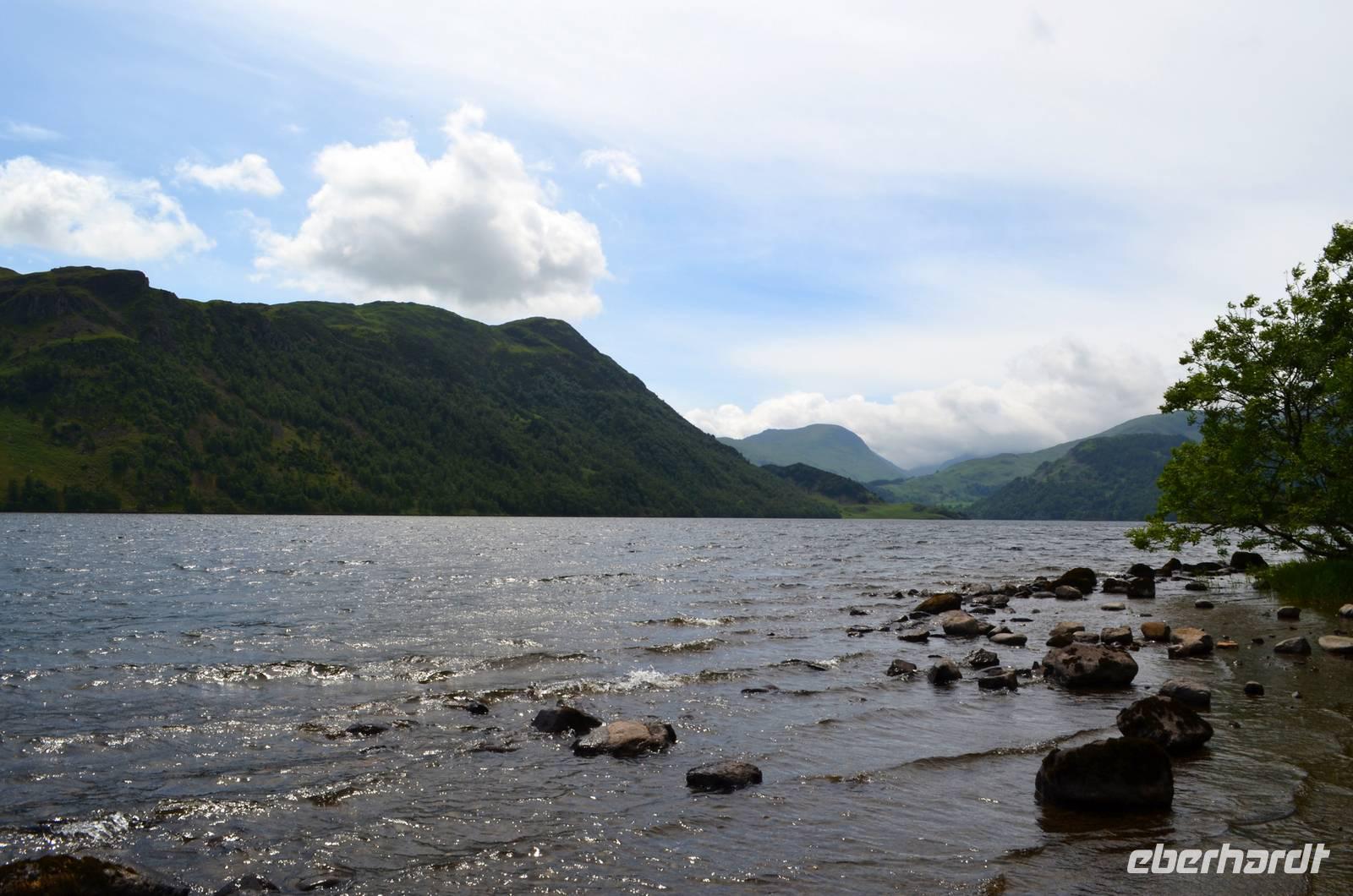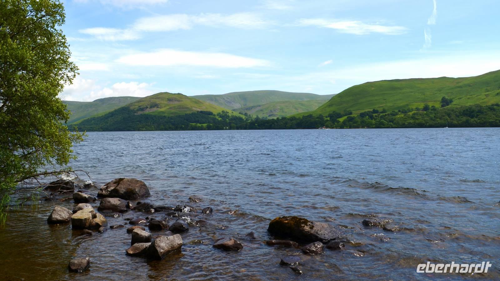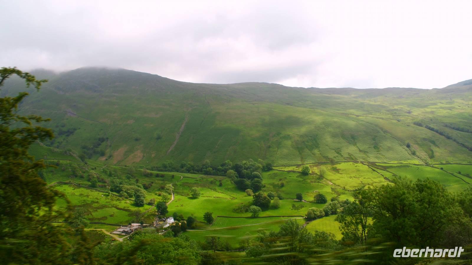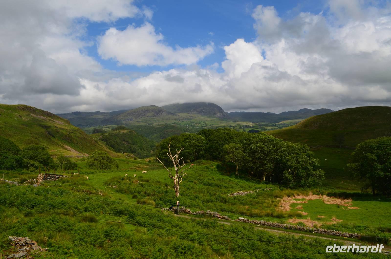 Weiter nach Norden, zum Lake District setzen wir unsere Rundreise fort. In Bowness on Windermere halten wir am Schiffsanleger der Lake Cruises und steigen auf unser Ausflugsschiff, mit dem wir gemächlich über den Lake Windermere schippern - von Bowness bis Ambleside. Hier scheint dann auch wieder die Sonne und auch der höchste Berg Englands, der Scafell Pike (978 m) lugt etwas aus den Wolken.