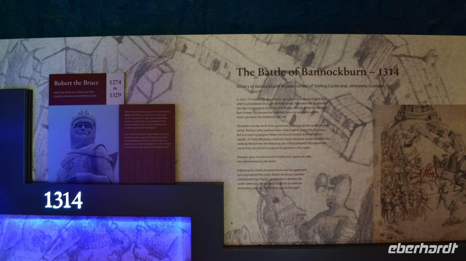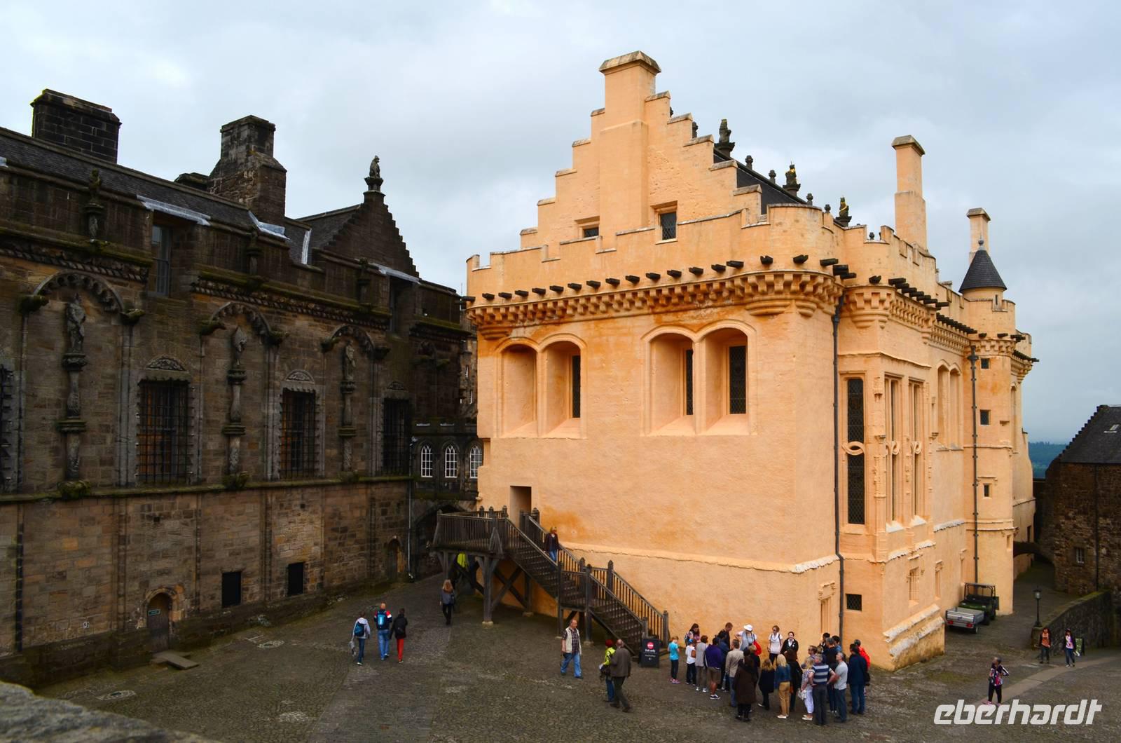 Ein Fotostopp unterhalb des Castle leitet unseren Besuch in der alten Residenzstadt der schottischen Könige ein. Durch die Innenstadt geht es auf den Burgberg hinauf, wo wir durch das Festungstor die Anlage von Stirling Castle betreten. Ausgestattet mit Orientierungsplänen beginnen wir die Besichtigung dieser sehenswerten Festungsanlage mit den darin befindlichen Schlossbauten. Besonders beeindruckend sind die Audienzräume mit ihren Wandteppichen und der neu restaurierten „Galerie der Könige" an der Decke.