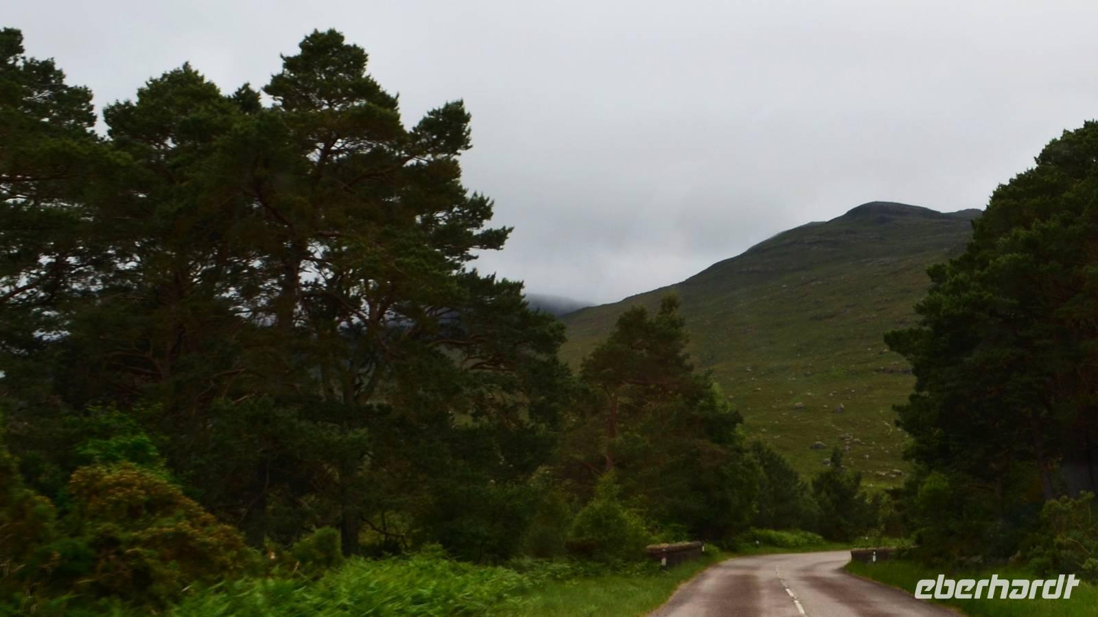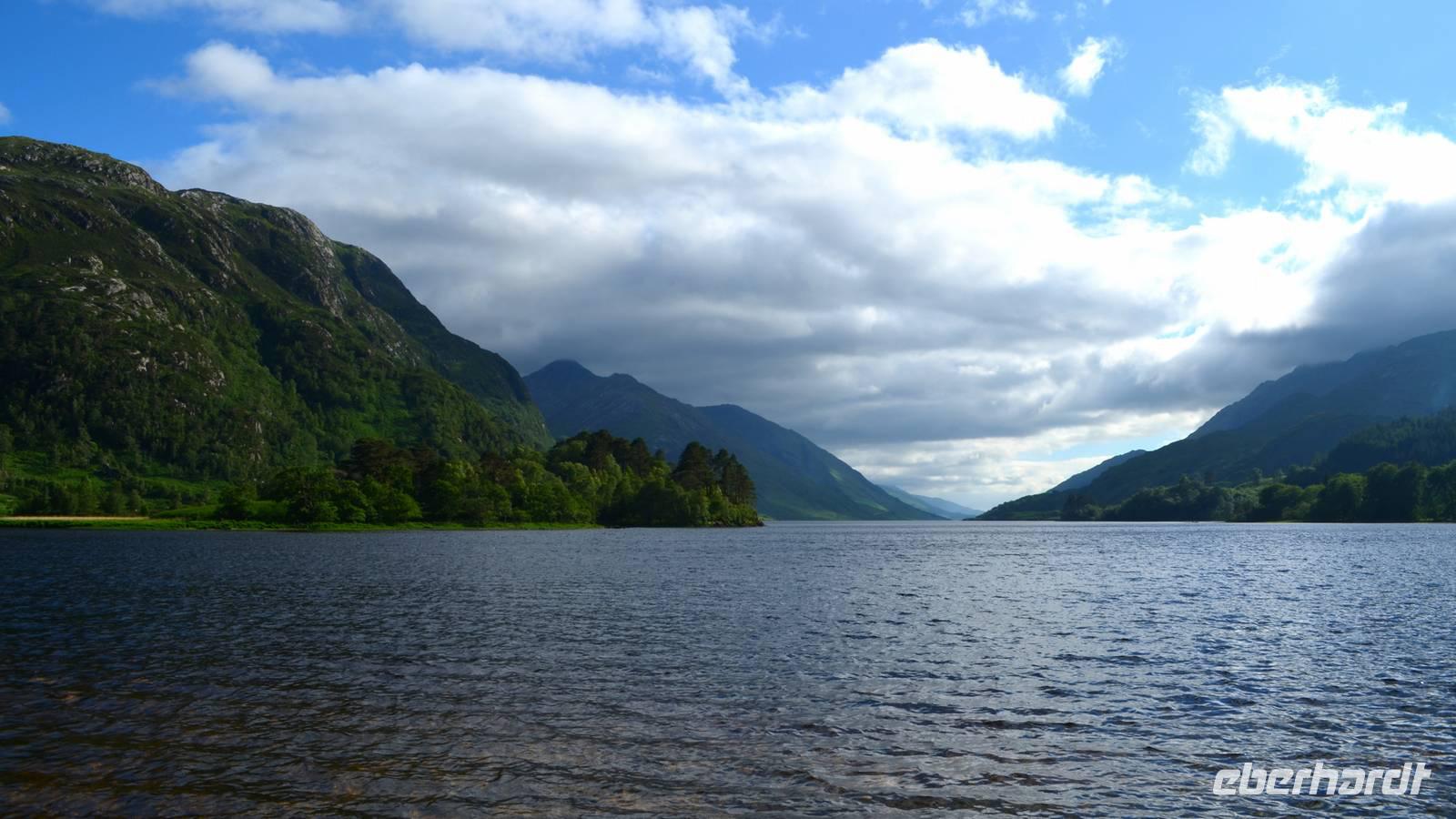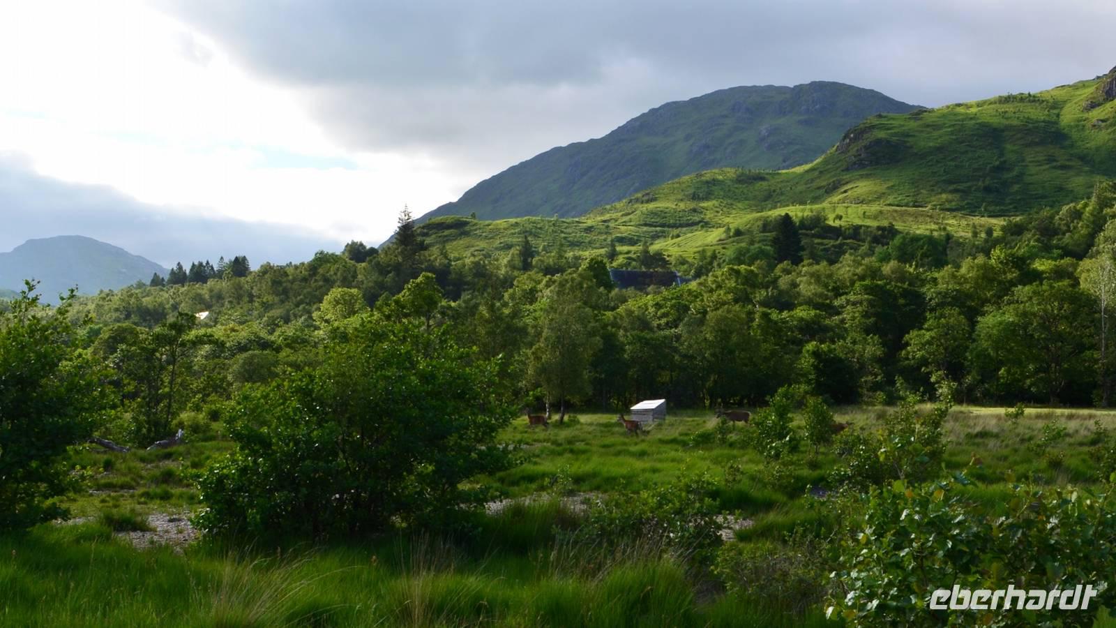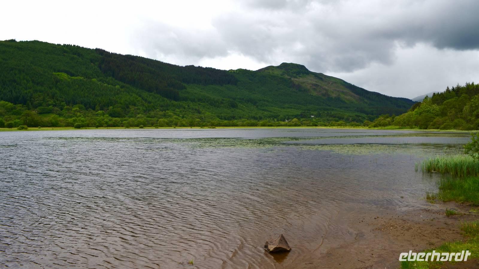 Unten am See dann das Nationalparkcenter „Beinn Eight". Herrliche Seeblicke bieten sich, nur der Berg Slioch (980 m) versteckt sich in den Wolken.