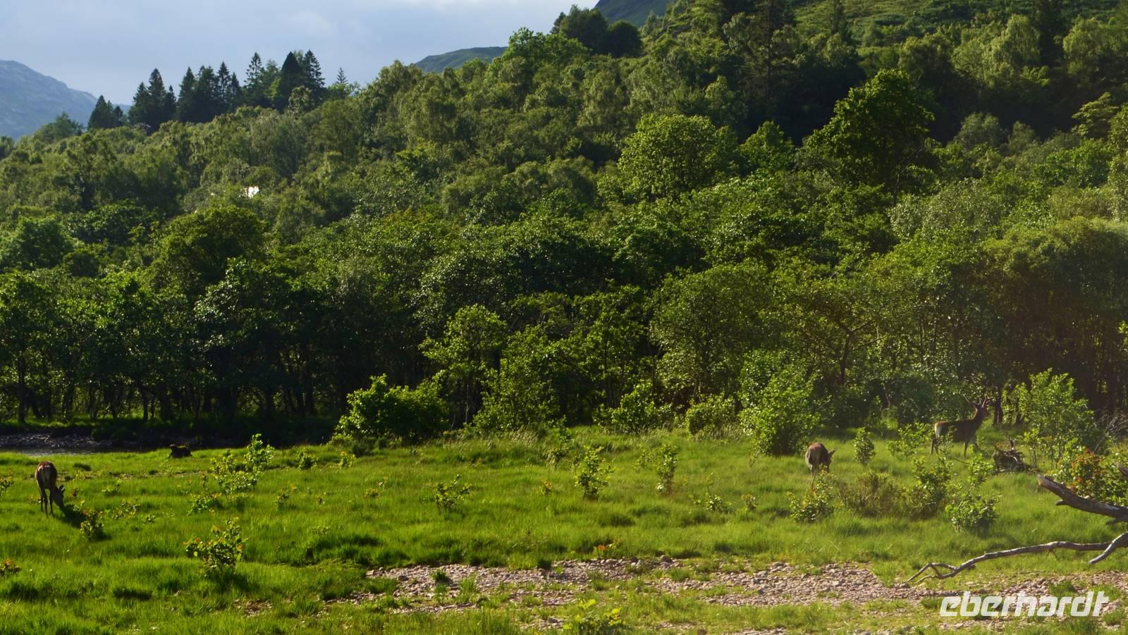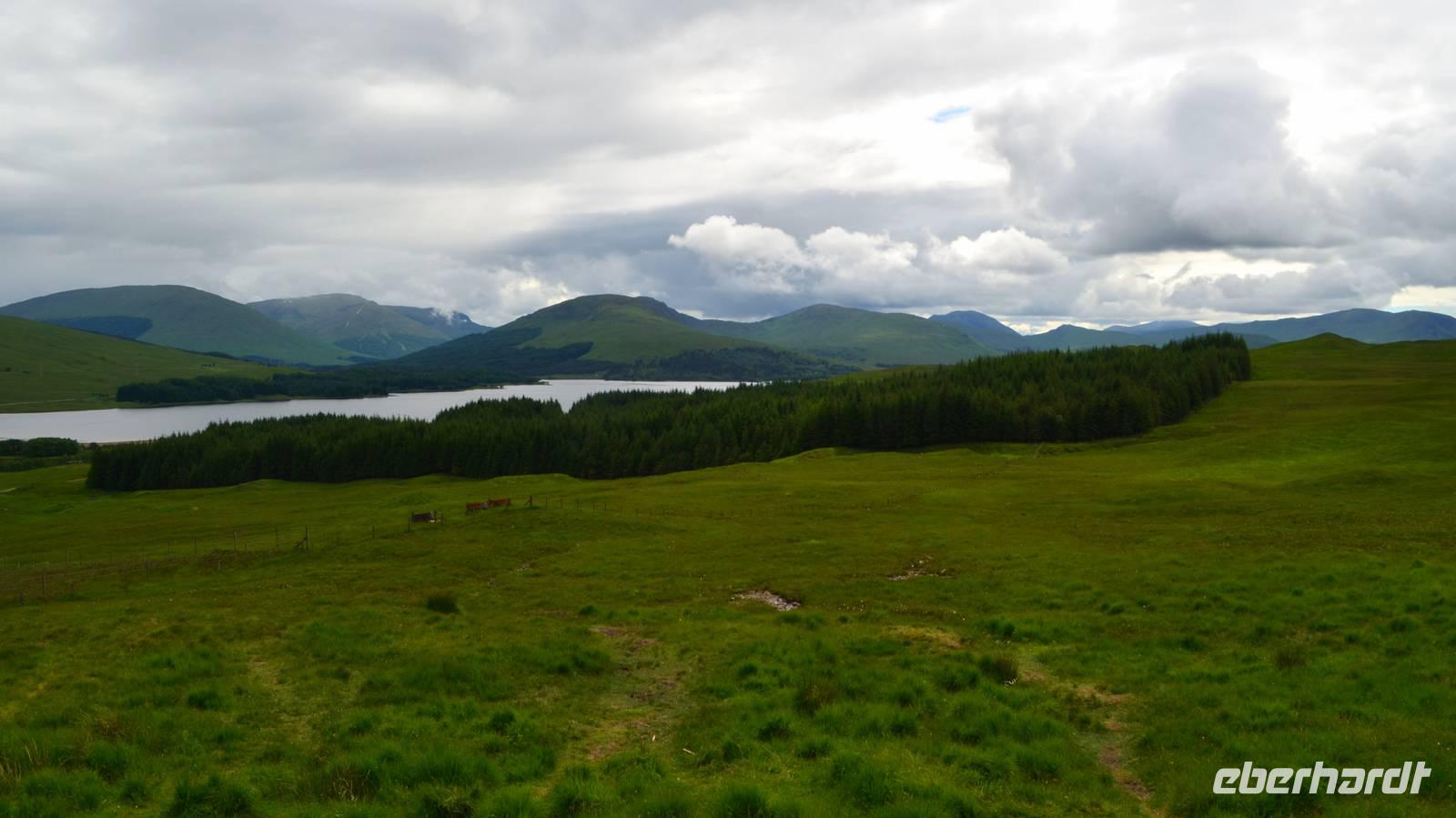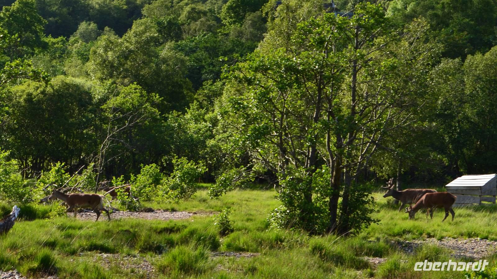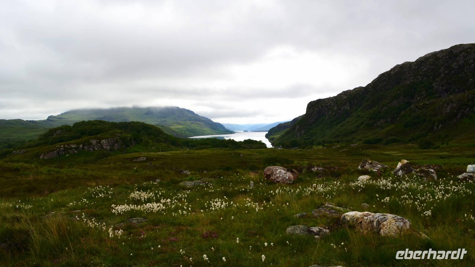 Unten am See dann das Nationalparkcenter „Beinn Eight". Herrliche Seeblicke bieten sich, nur der Berg Slioch (980 m) versteckt sich in den Wolken.