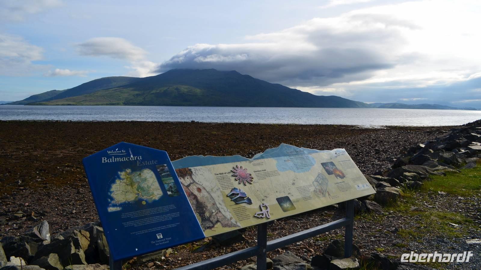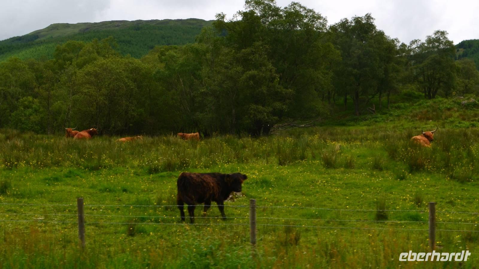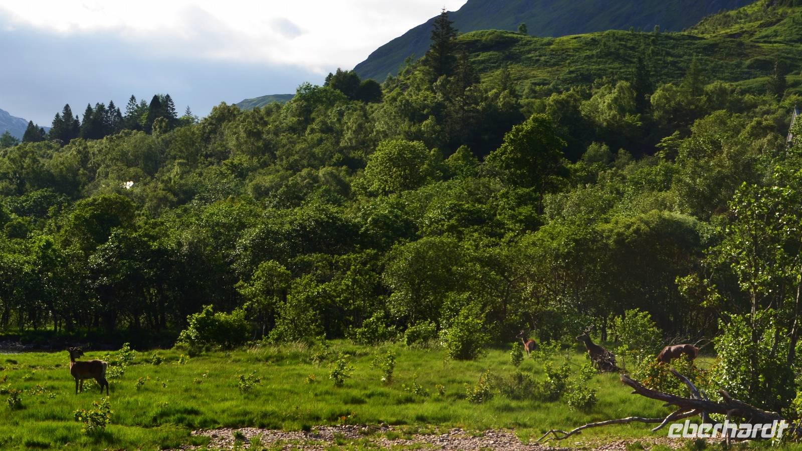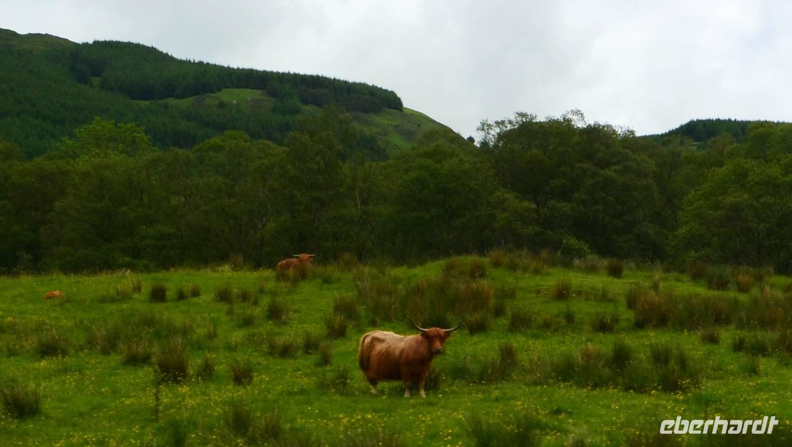 Unten am See dann das Nationalparkcenter „Beinn Eight". Herrliche Seeblicke bieten sich, nur der Berg Slioch (980 m) versteckt sich in den Wolken.